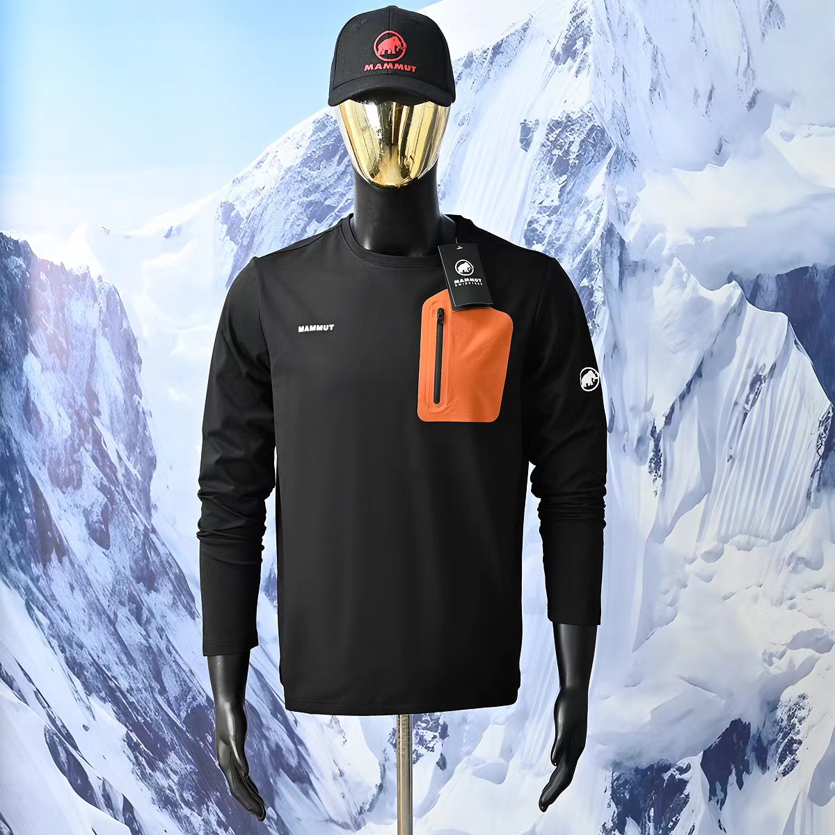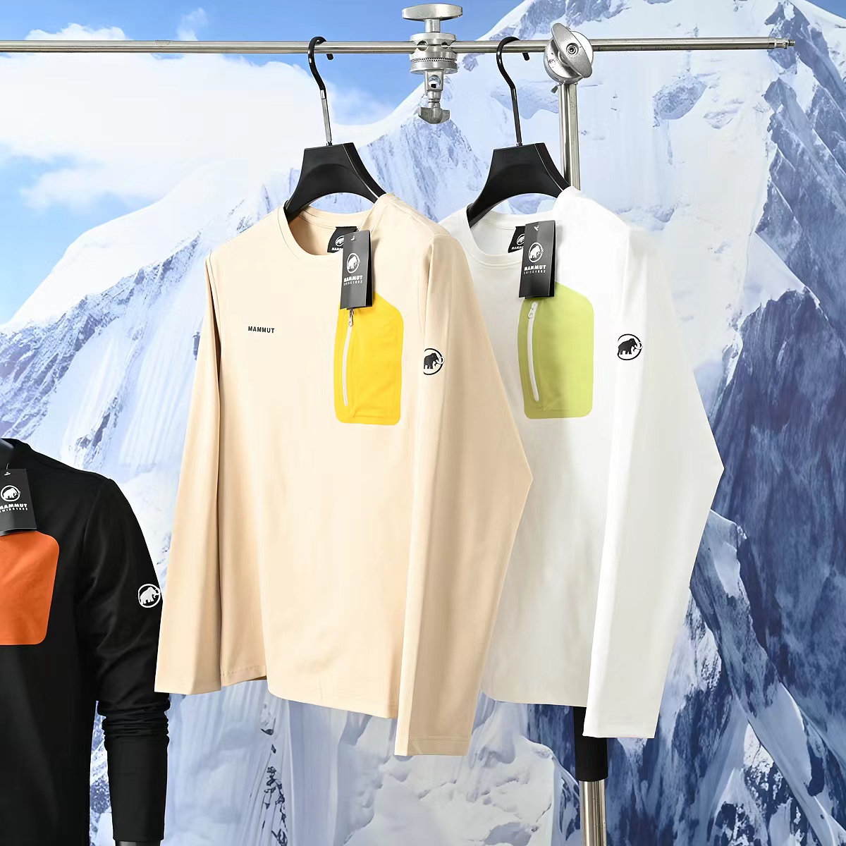 春季户外速干长袖T恤 ,轻量随行,自在山野,速干黑科技面料:告别汗湿黏腻,运动后快速导湿排汗,保持身体干爽舒适。轻量化剪裁:修身不紧绷,活动无束缚,徒步、跑步、日常通勤都能轻松驾驭。撞色机能口袋:荧光绿拉链口袋,兼具颜值与实用性,小物件随手收纳。告别闷热,拥抱山野。这件 Mammut 速干长袖,用科技面料打破运动束缚。导湿排汗一步到位,让你在徒步、越野时始终保持干爽轻盈,专业与颜值并存,是你奔赴自然的可靠搭档,
