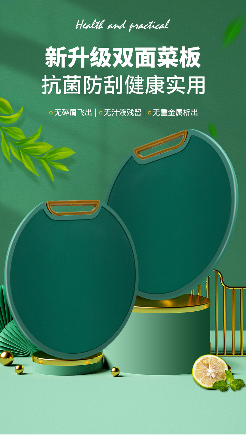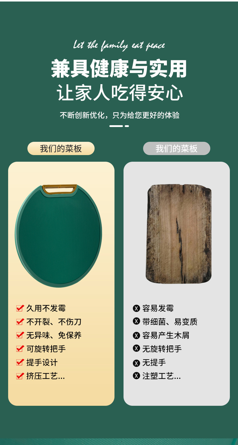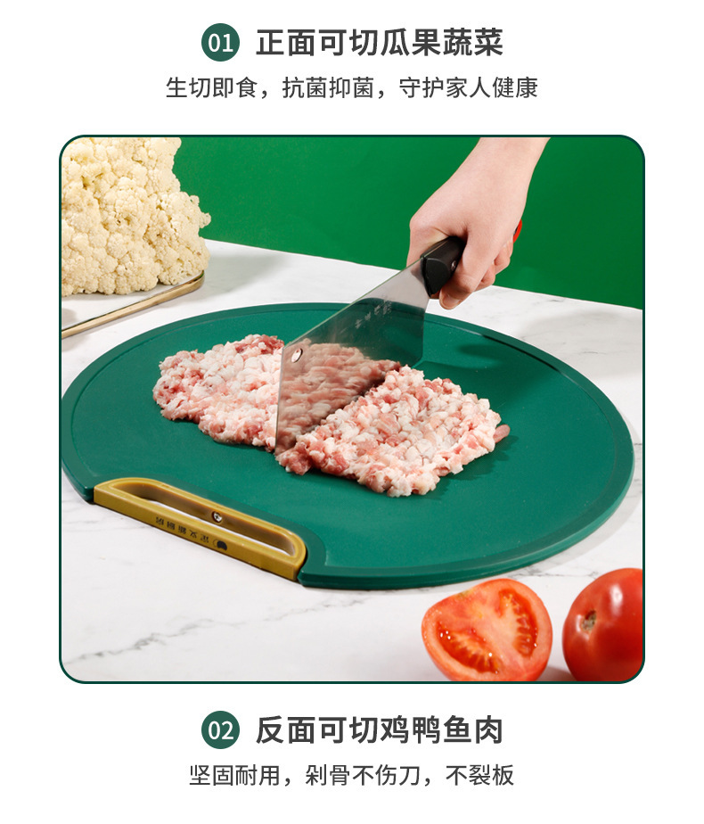【兼具健康与实用❗️圆形可立菜板】新升级双面菜板,告别,碎屑飞出/汁液残留/重金属析出,照顾你的方方面面,PE防霉圆形菜板双面,可立厨房砧板剁骨板L: