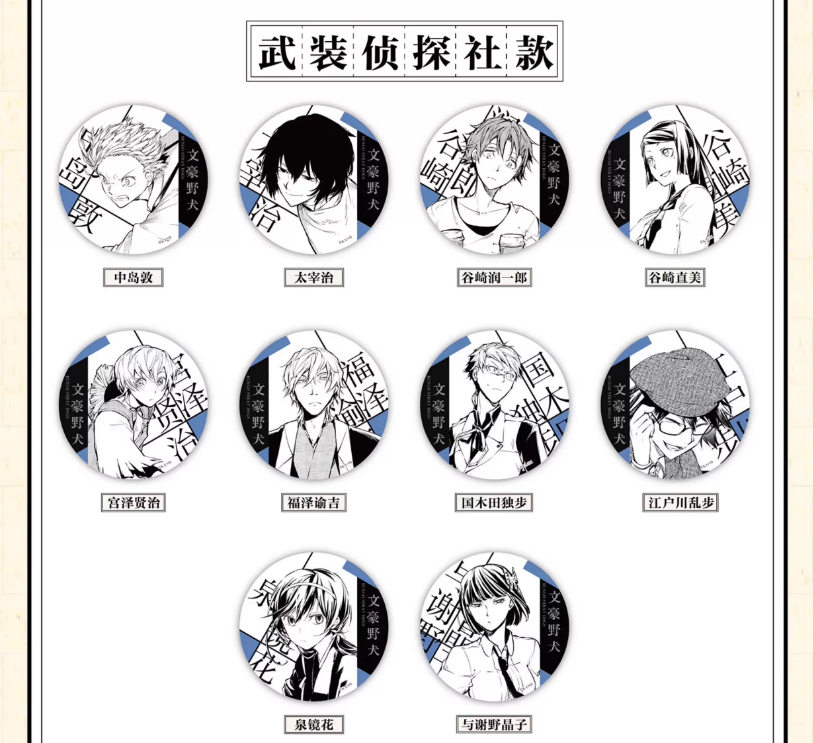 文豪野犬 武装侦探社 徽章 吧唧 10包/盒 国谷