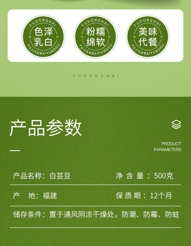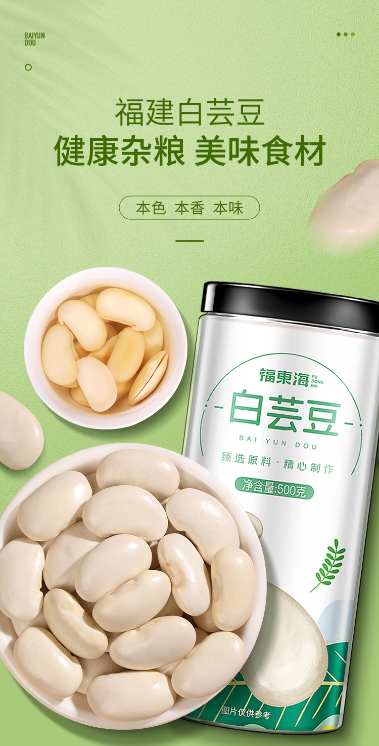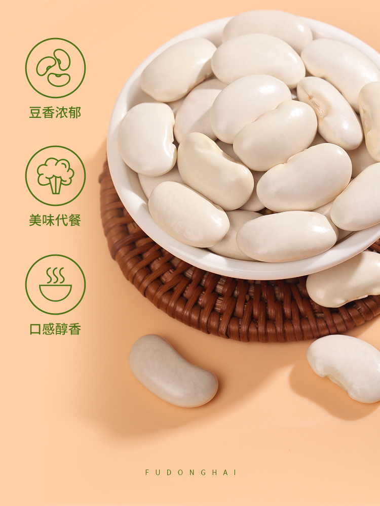 福东海 白芸豆500克 五谷杂粮大白豆 白腰豆 菜豆 饭豆 煮粥煲汤