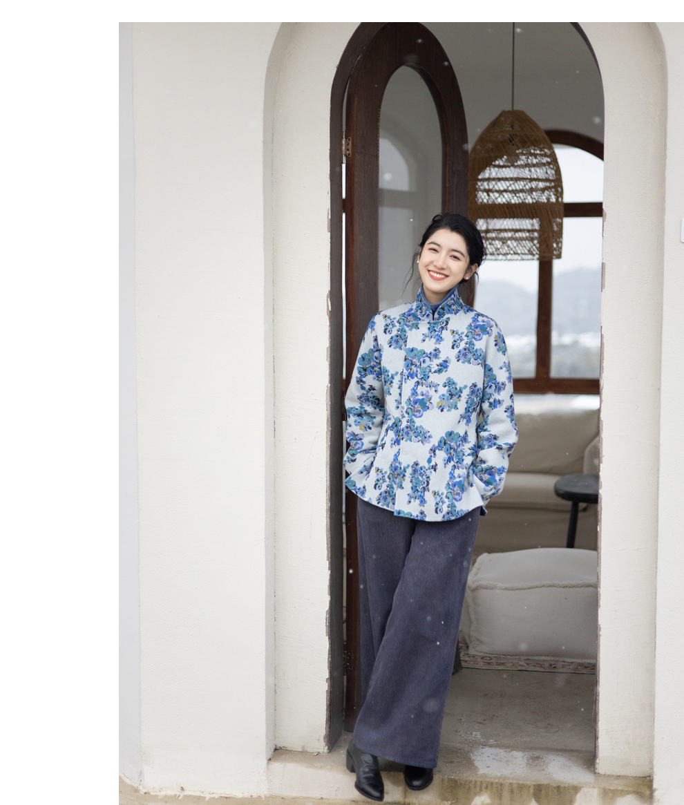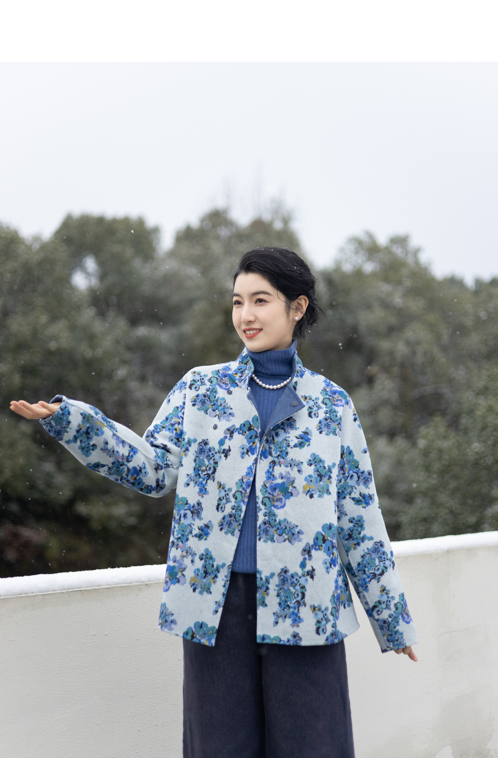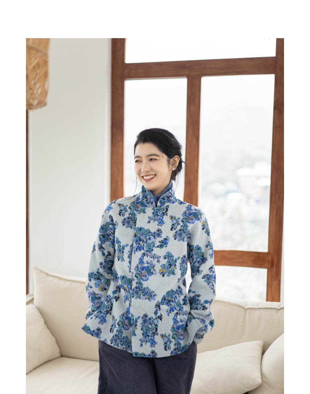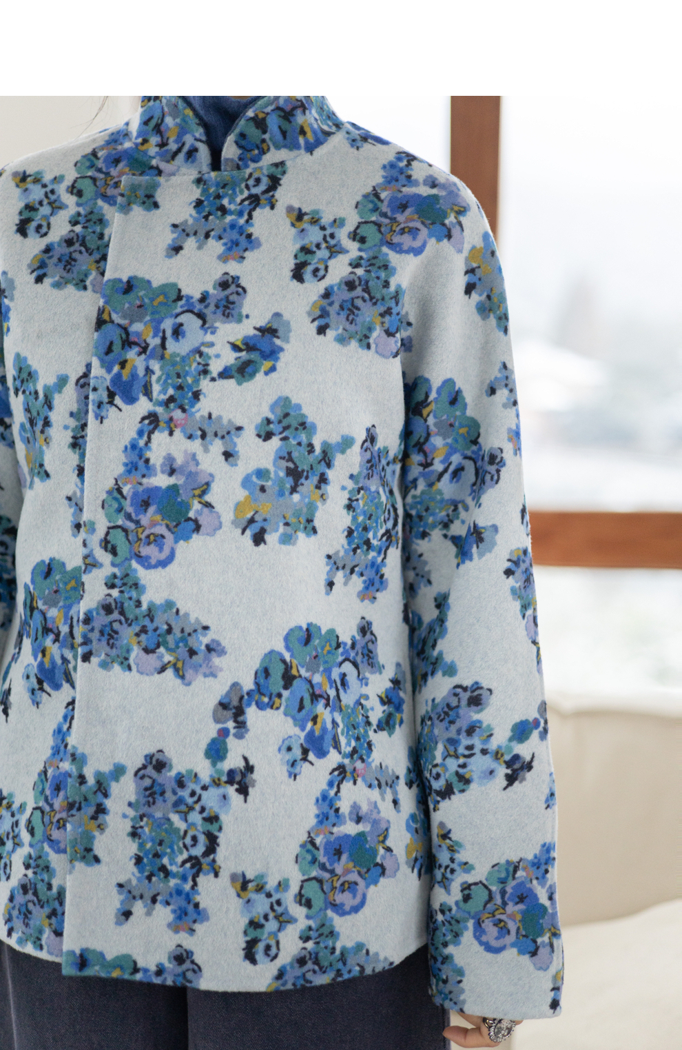 绽放037朵/双面可穿立领新中式复古文艺显瘦连身长袖外套