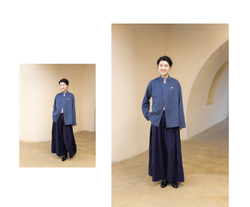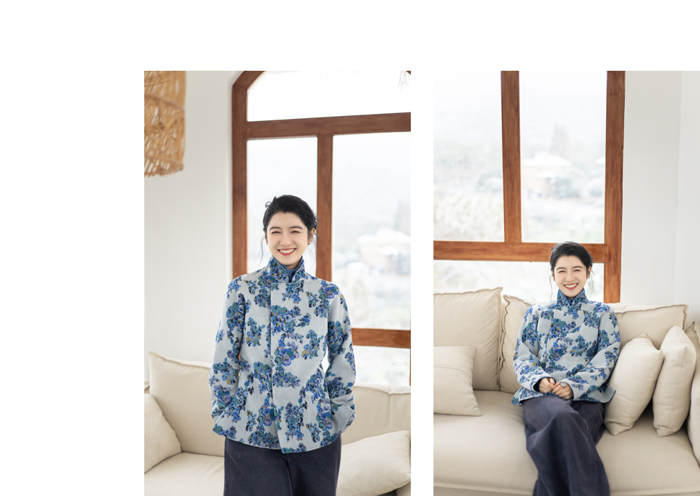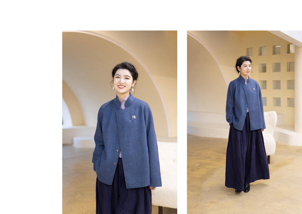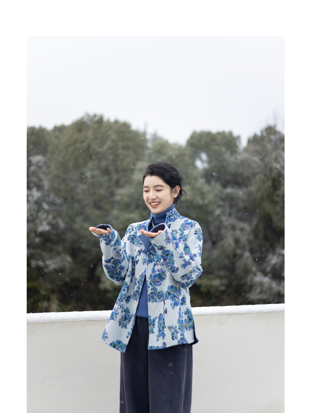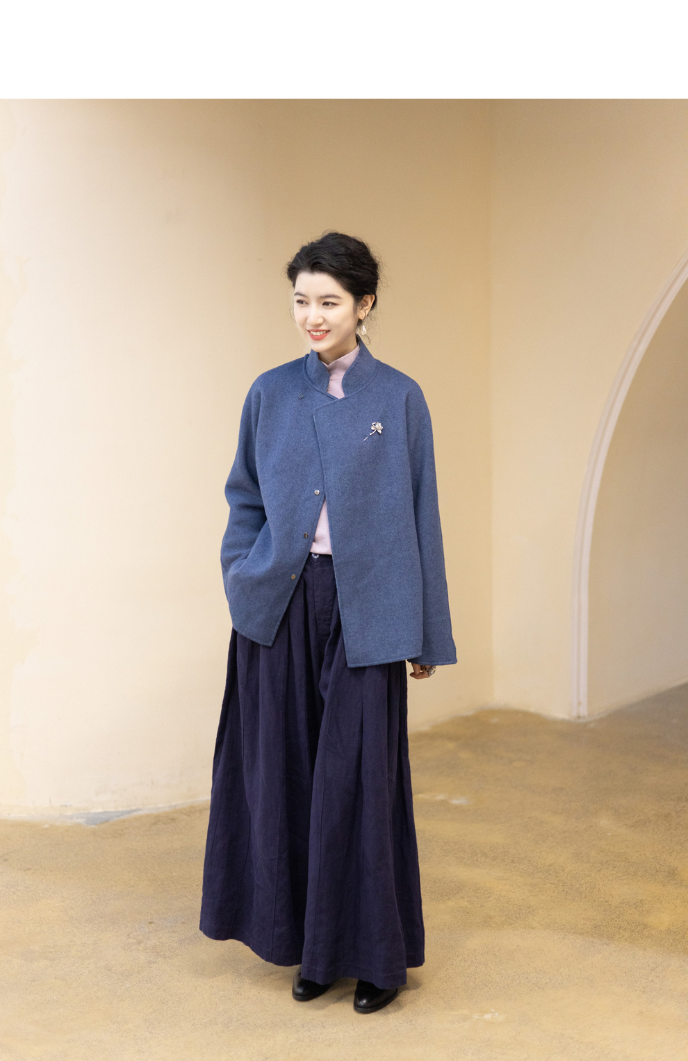 绽放037朵/双面可穿立领新中式复古文艺显瘦连身长袖外套