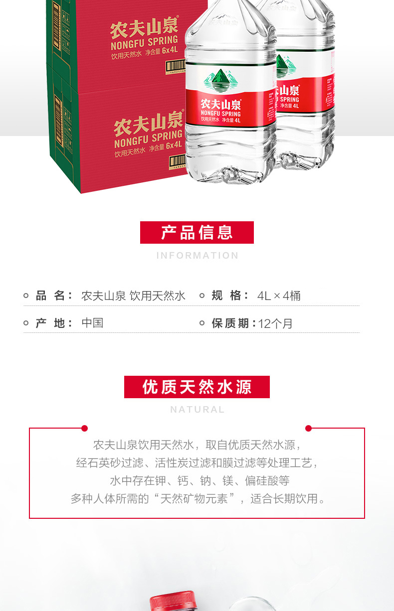【爆款热卖】农夫山泉天然矿泉水饮用水4L/桶 会议办公用水 泡茶用水家用