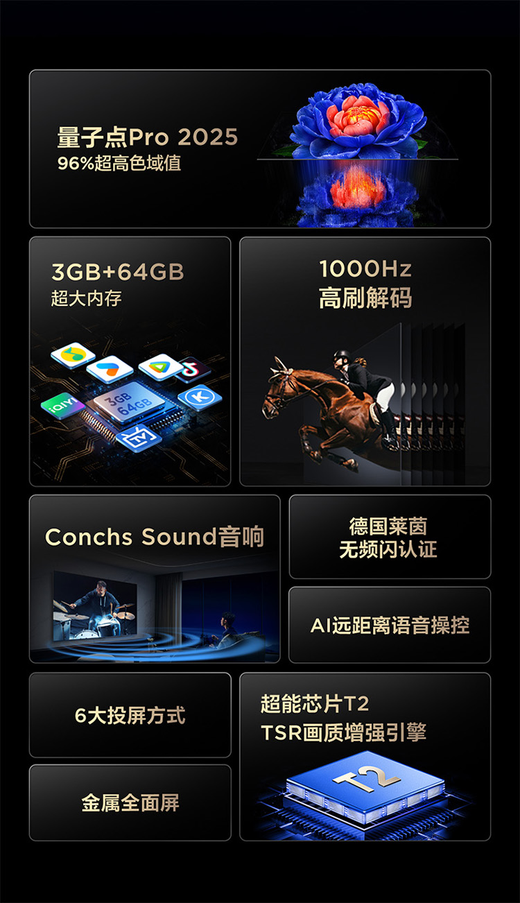TCL电视 55V8L Pro 55英寸 1000Hz高刷解码 QLED量子点 3GB+64GB大内存电视