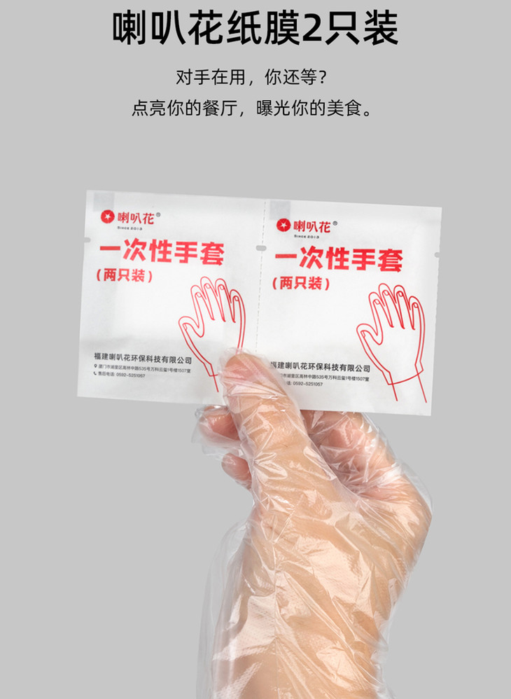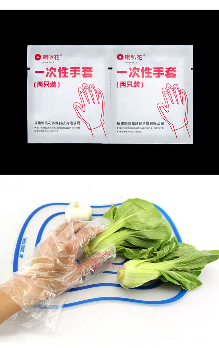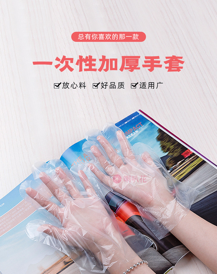 喇叭花 一次性手套加厚pe塑料薄膜餐饮食品手套家务美容手套