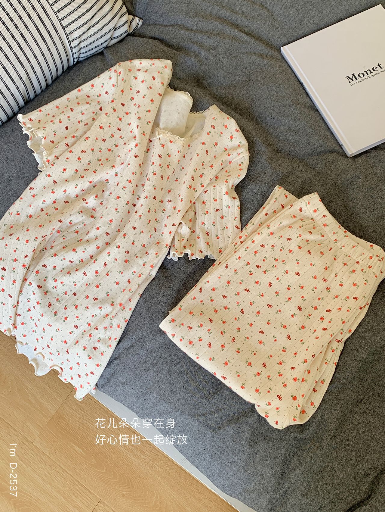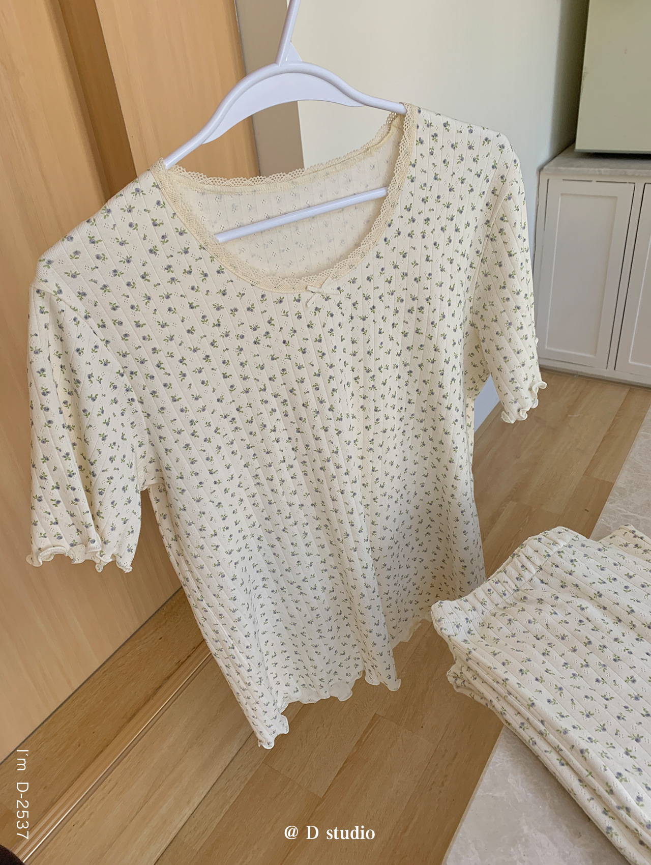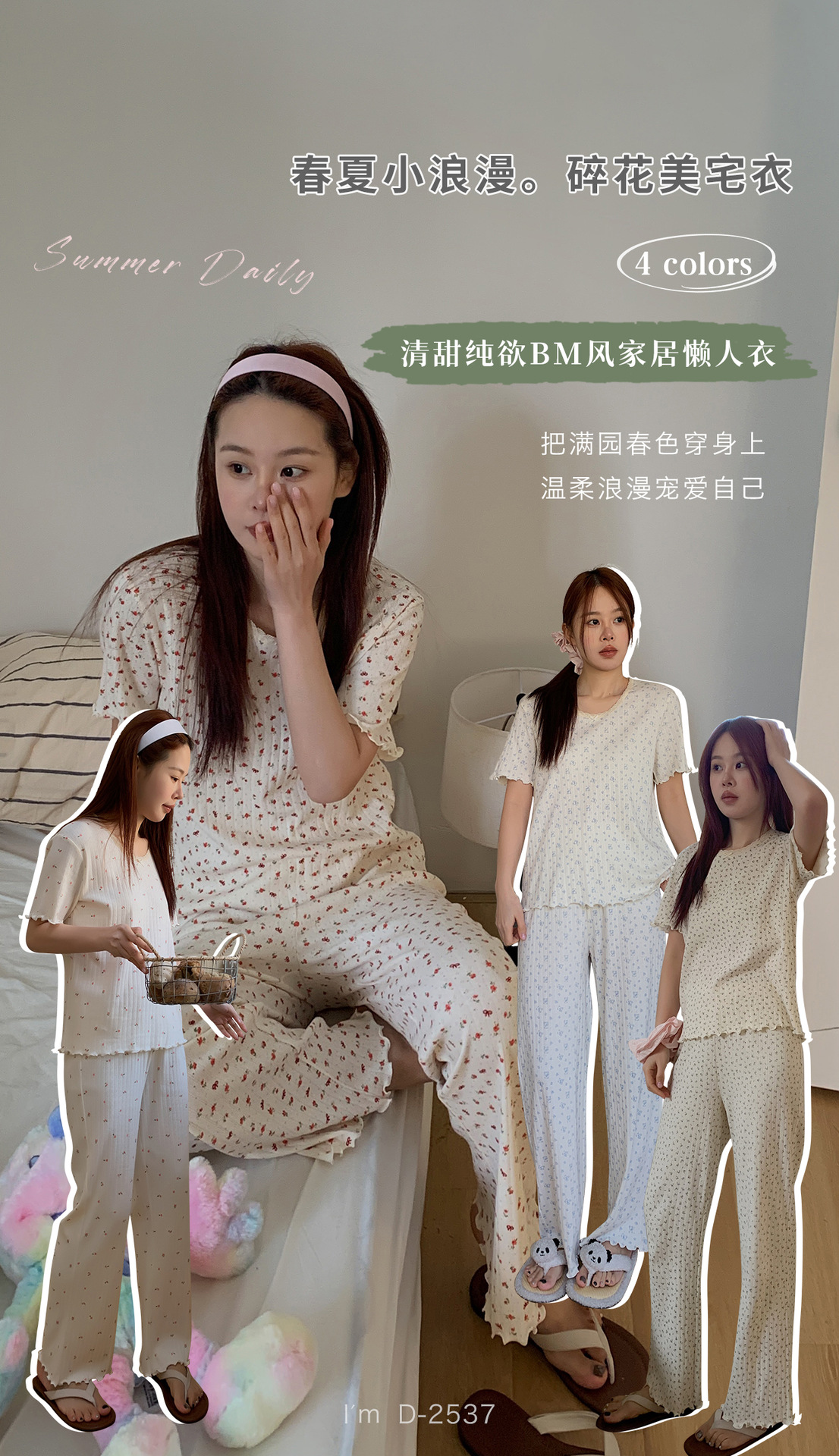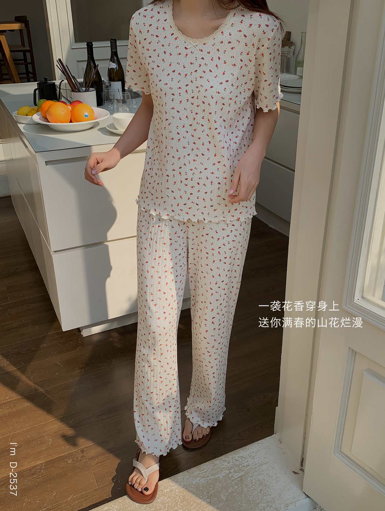 浪漫碎花~BM风春夏新款碎花美宅衣 全棉针织螺纹民短袖长裤休闲两件套睡衣女
