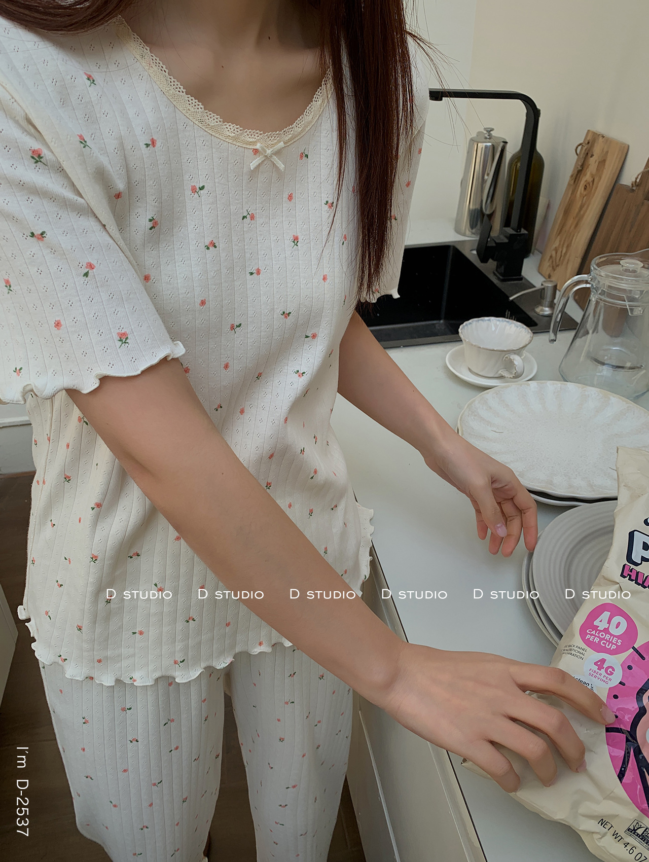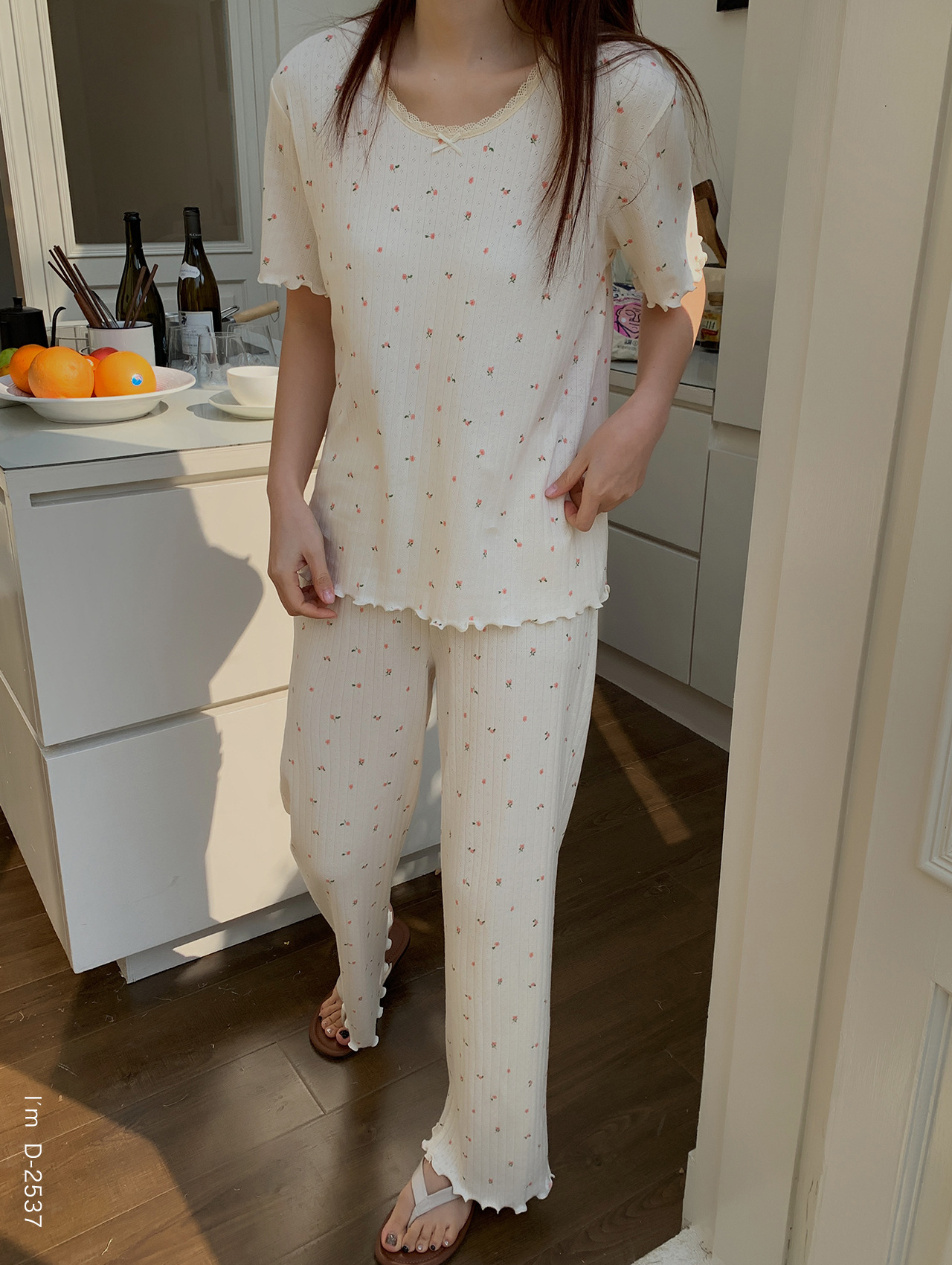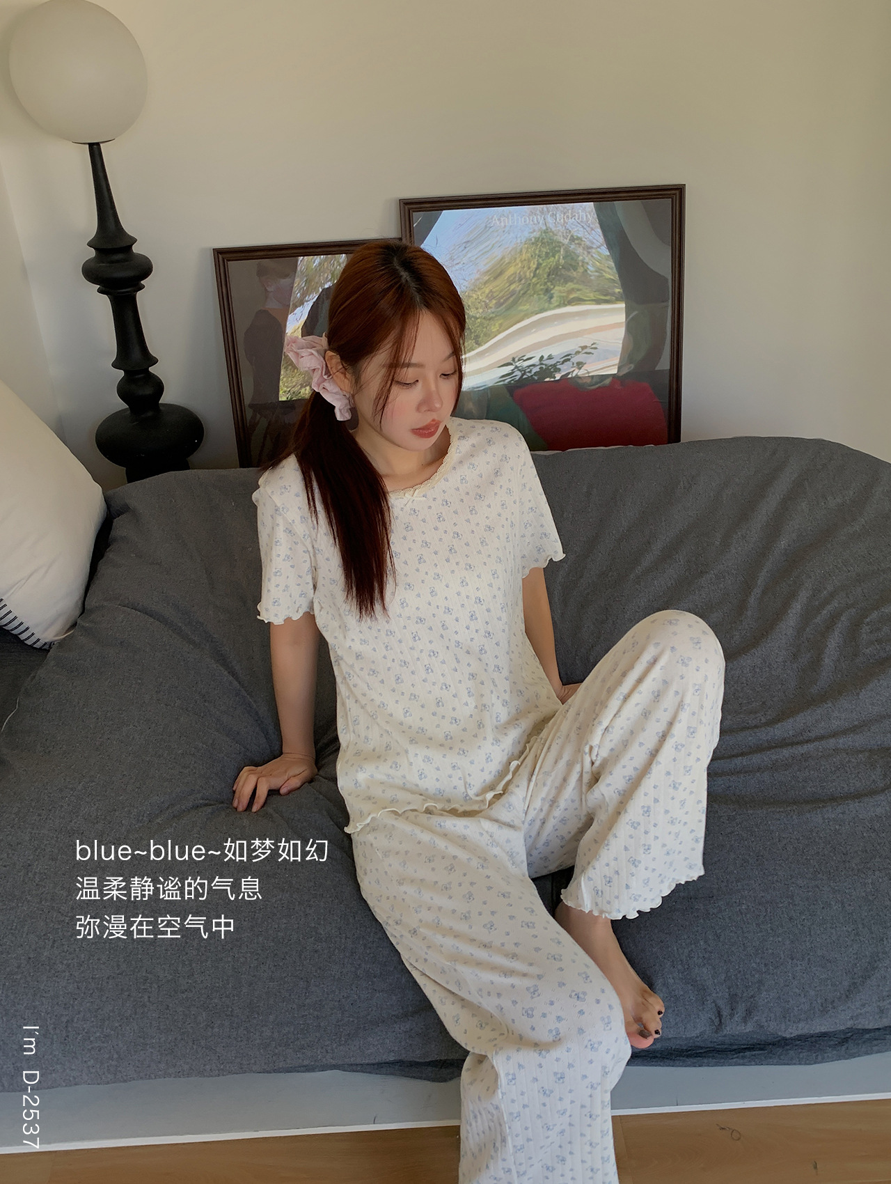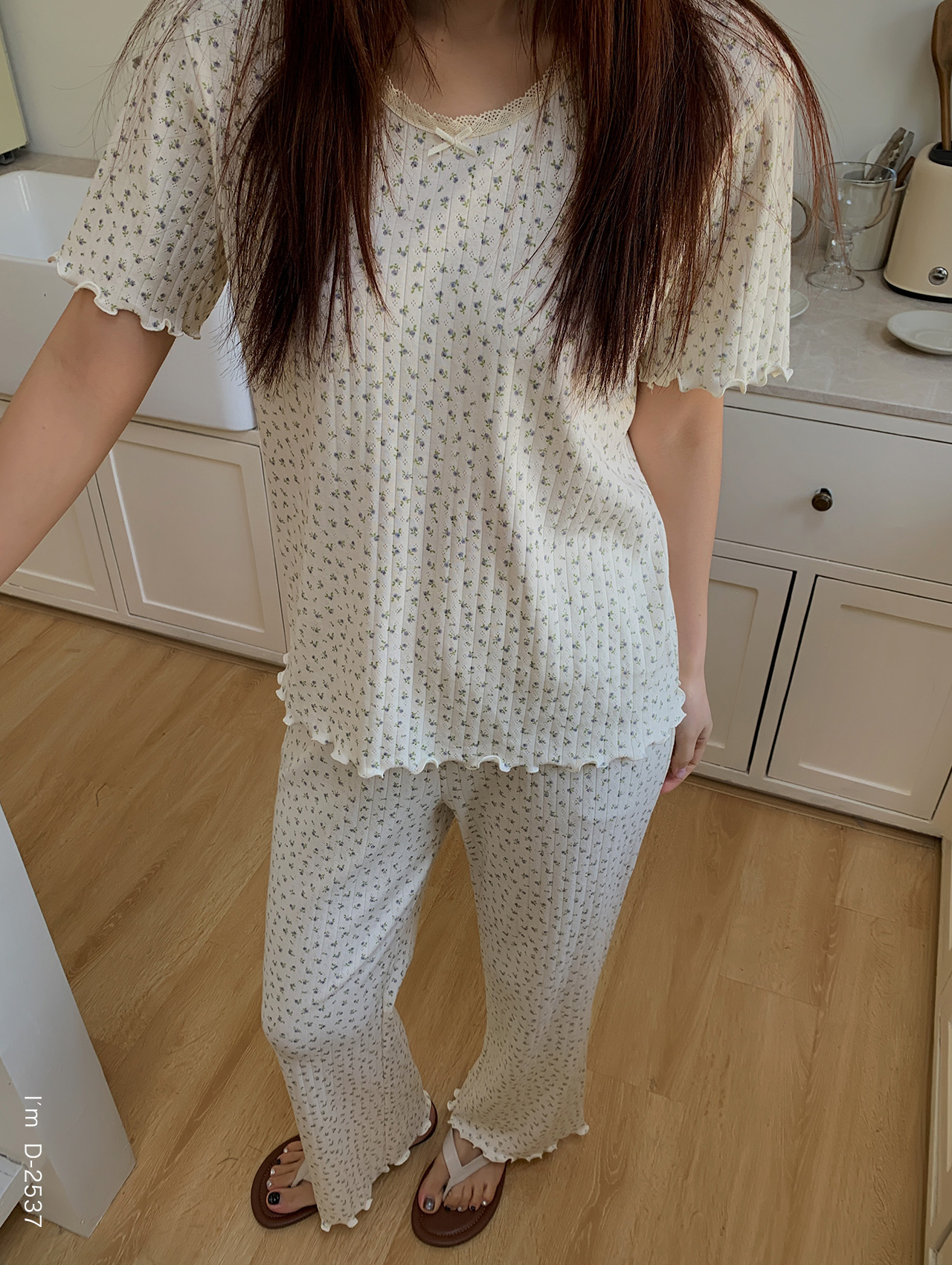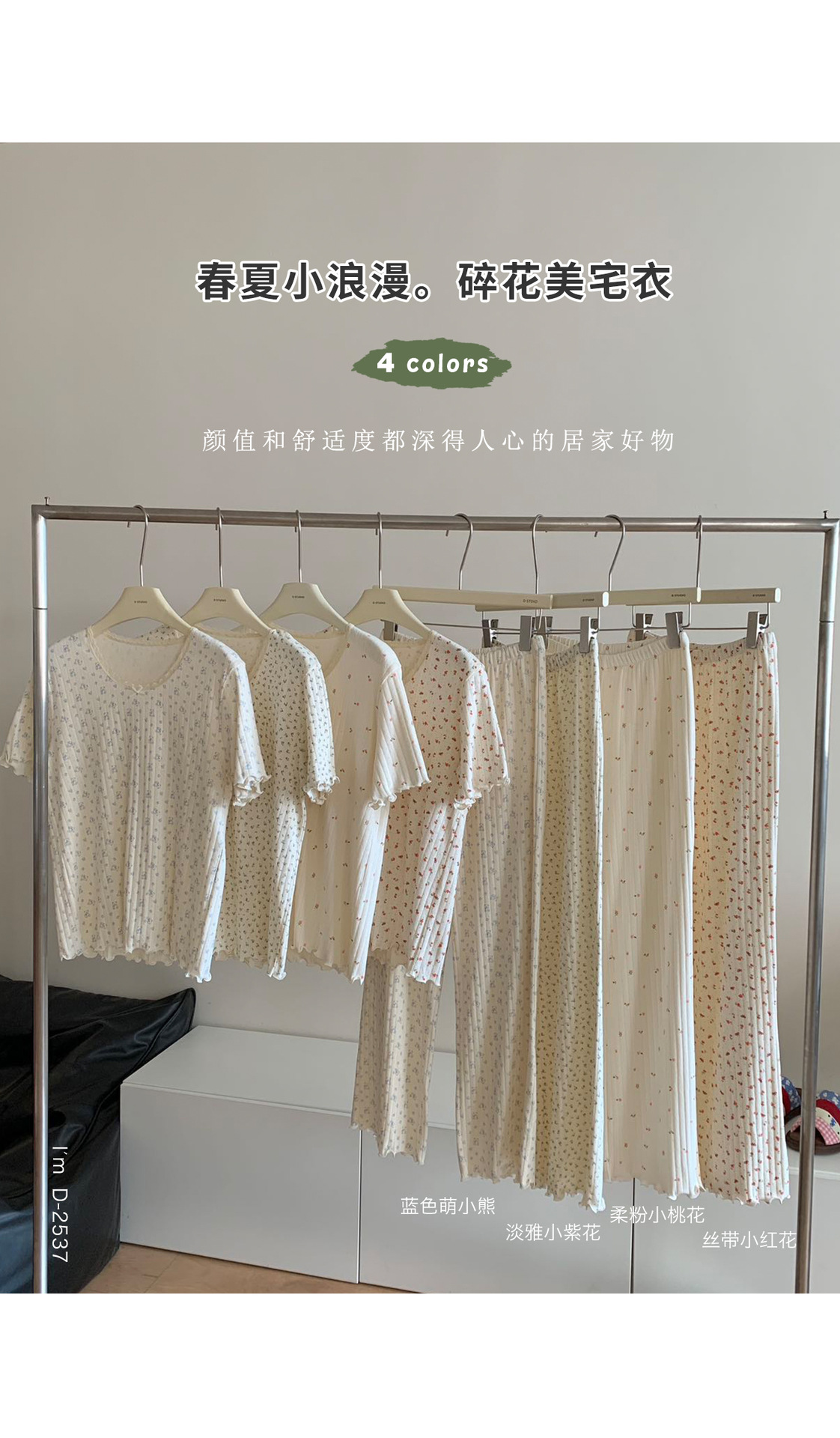 浪漫碎花~BM风春夏新款碎花美宅衣 全棉针织螺纹民短袖长裤休闲两件套睡衣女