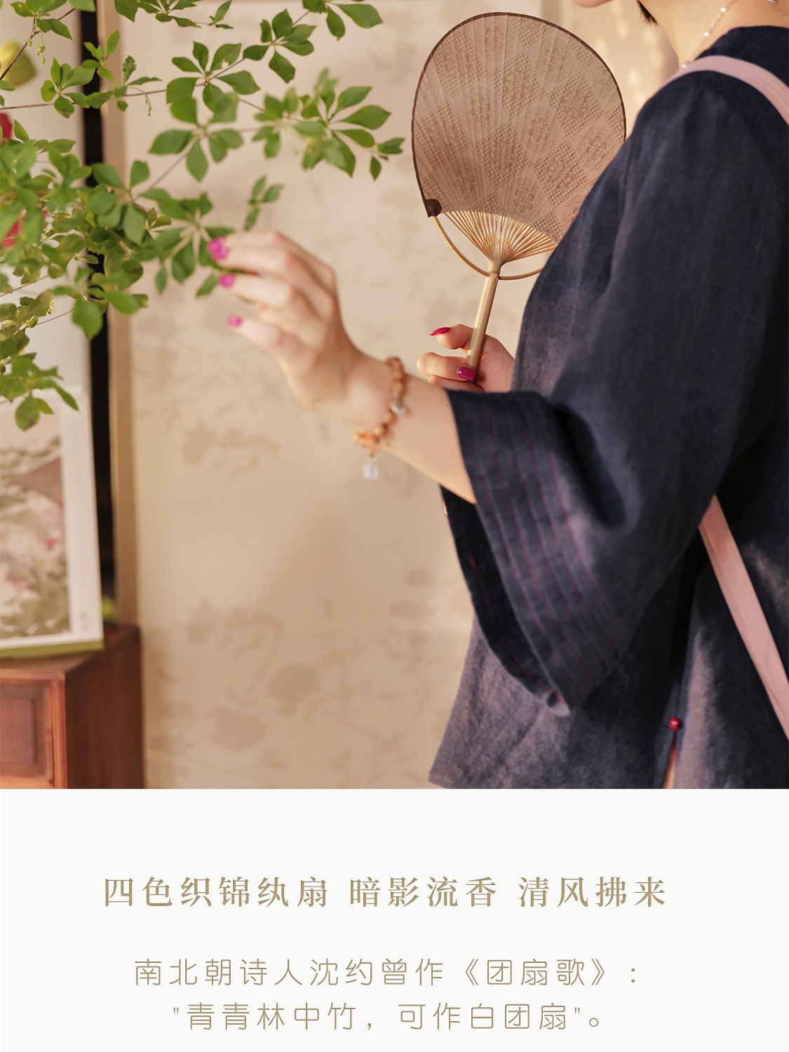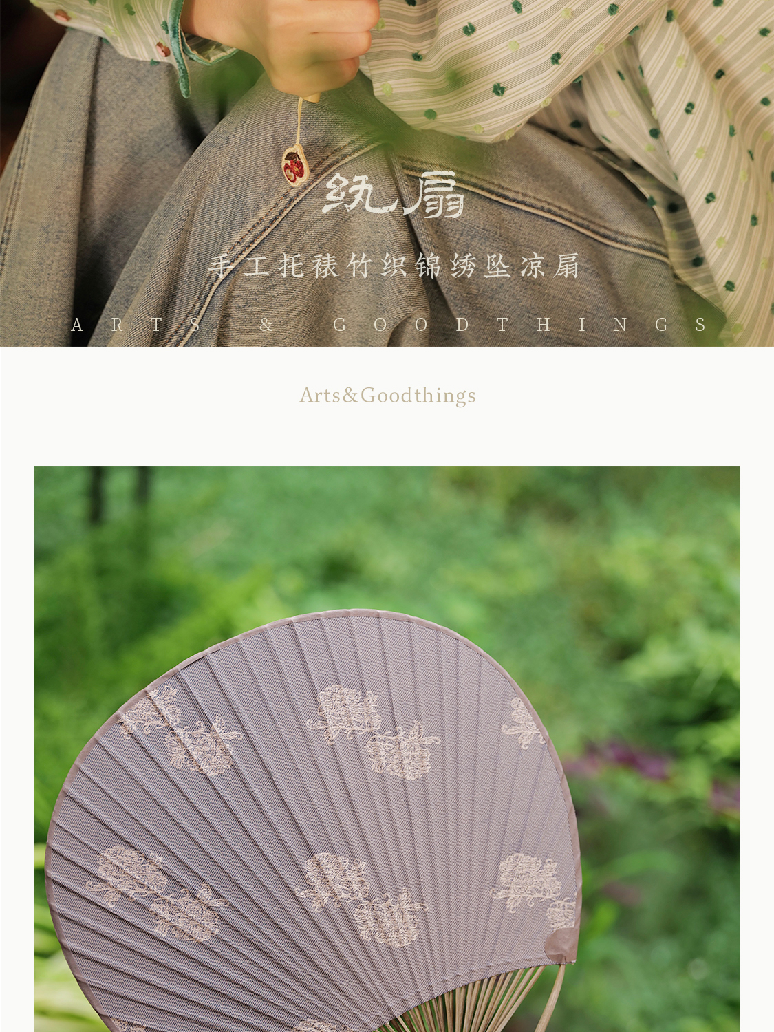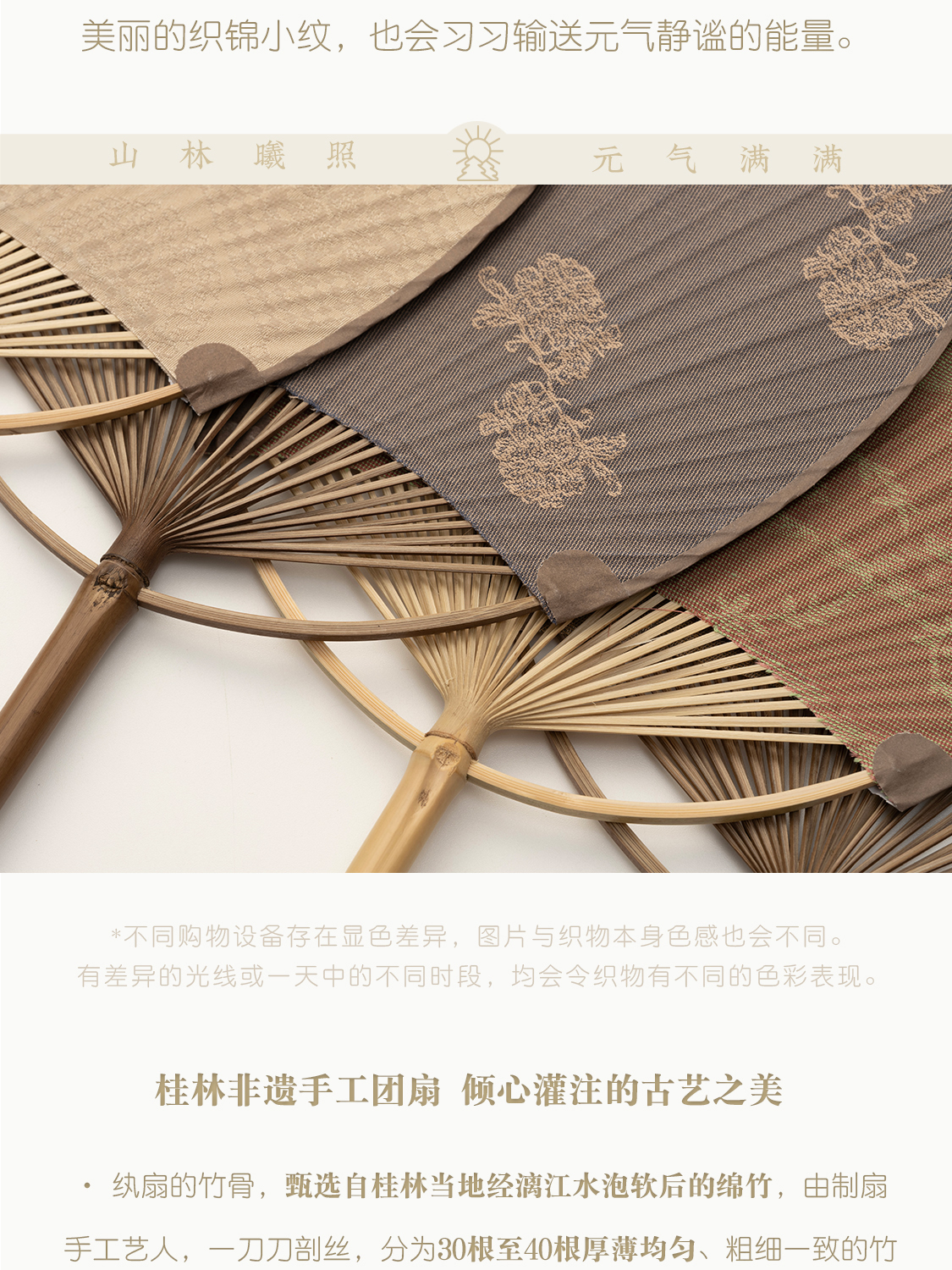 纨扇 手工托裱竹织锦绣坠凉扇 山林曦照