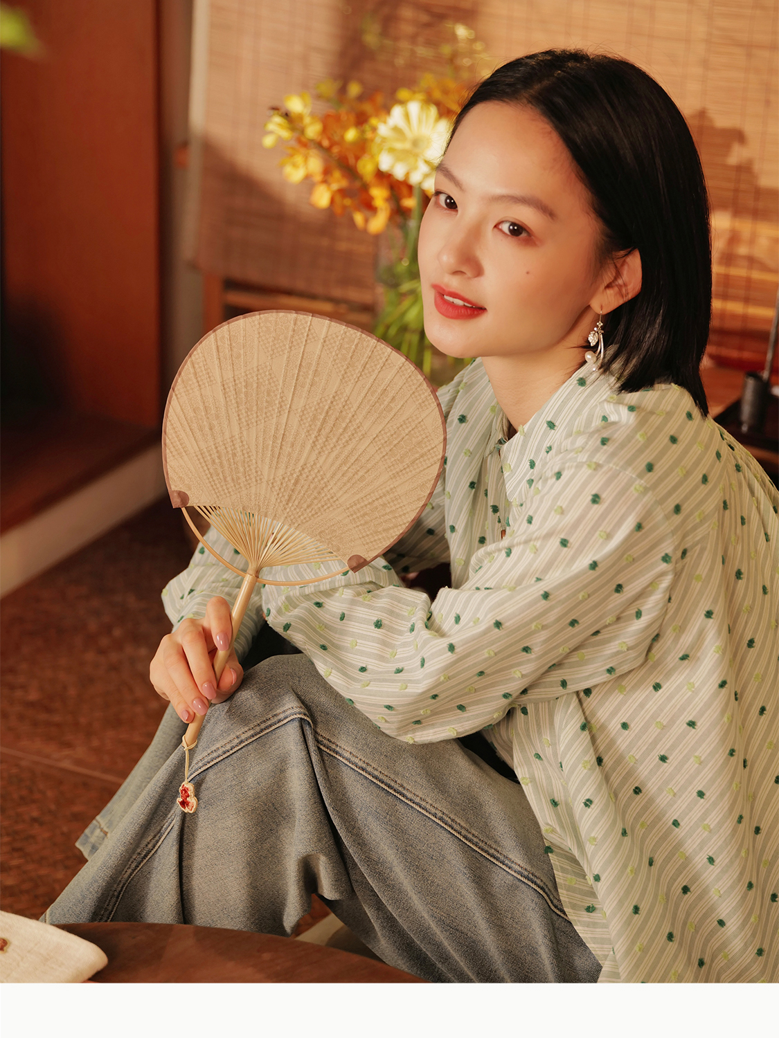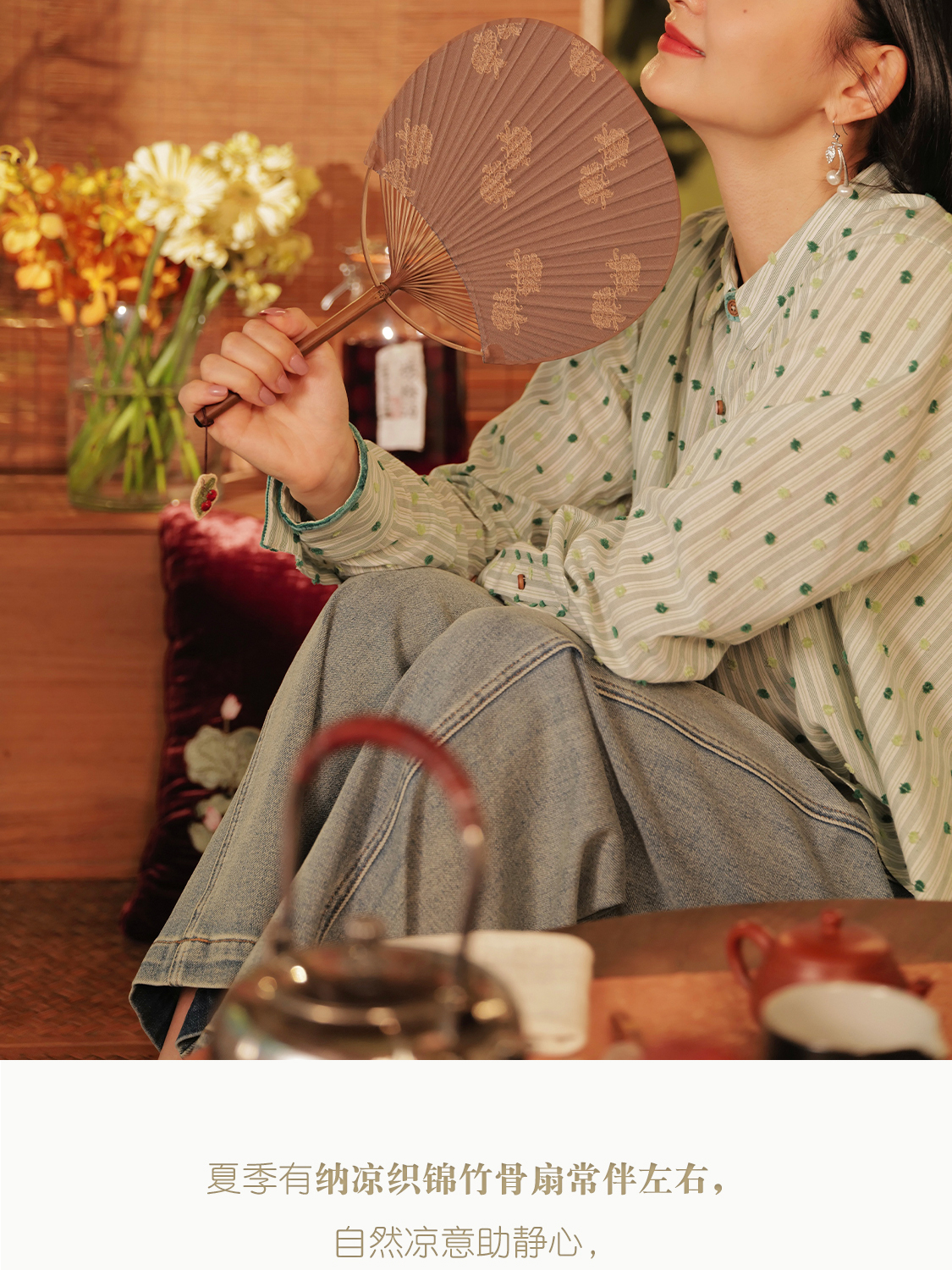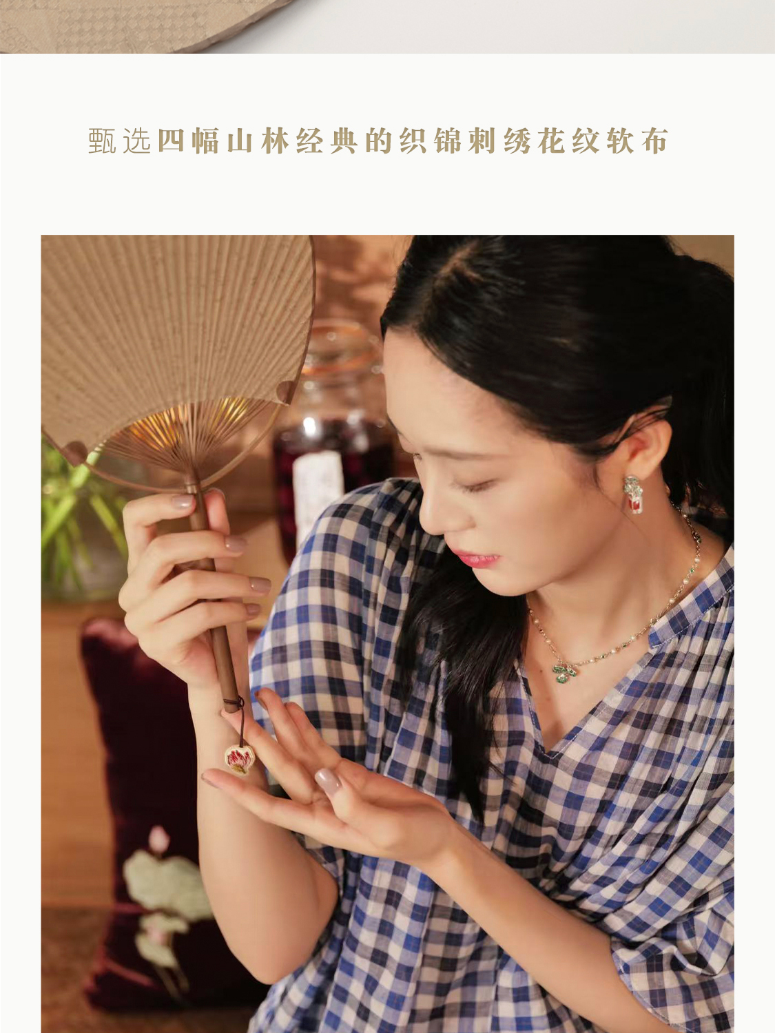 纨扇 手工托裱竹织锦绣坠凉扇 山林曦照
