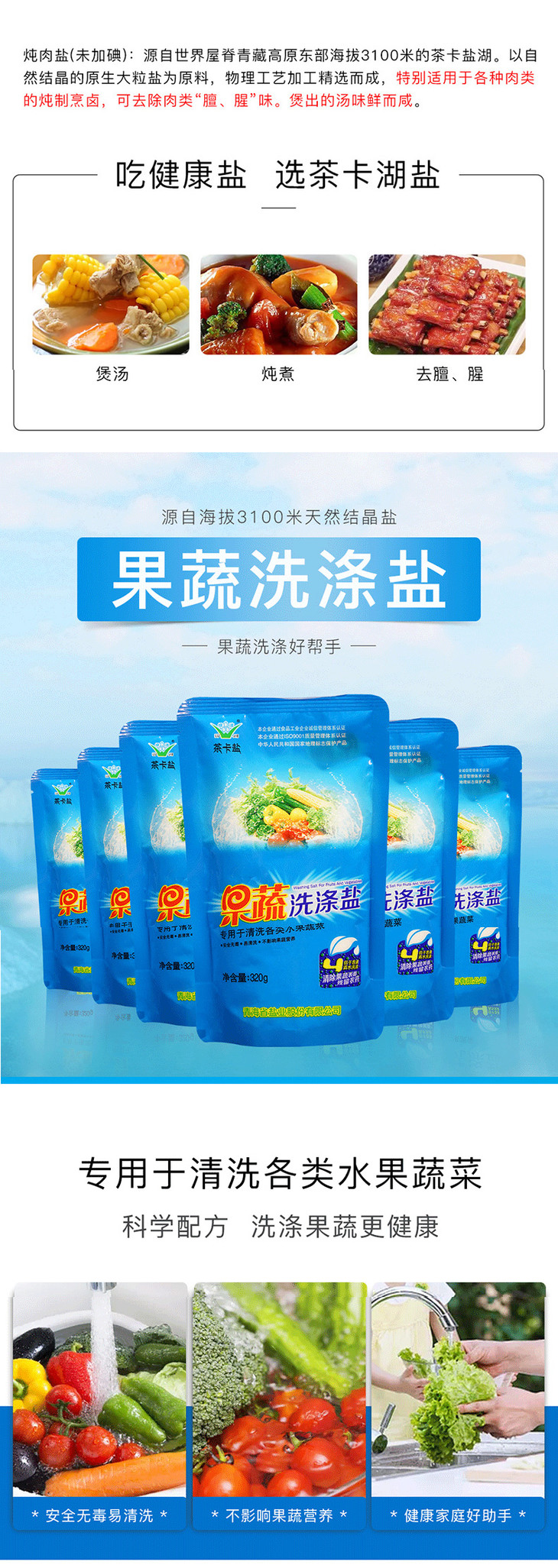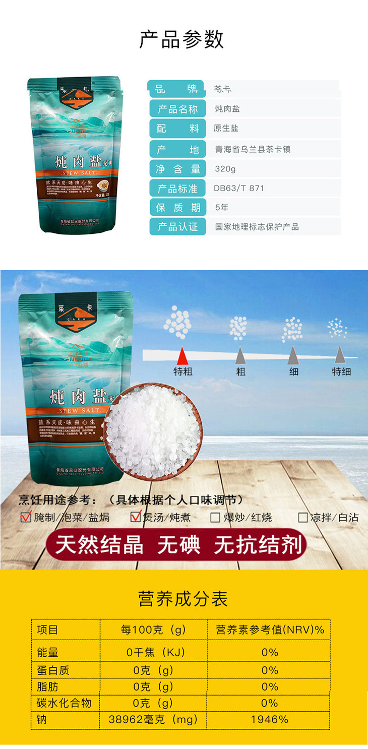 茶卡湖盐 天空之镜 藏青盐 低钠盐 炖肉盐 果蔬洗涤盐 320g/袋