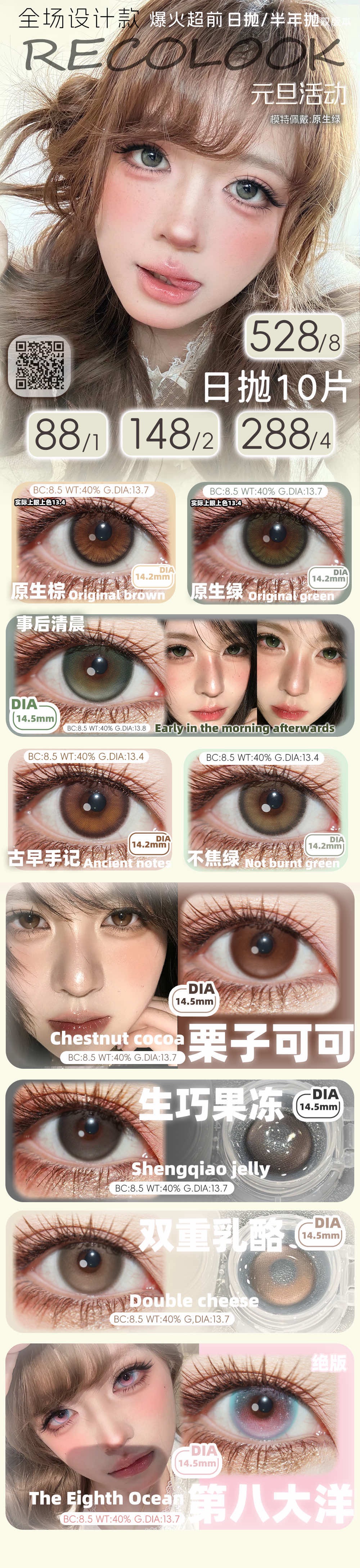 RECOLOOK 日抛活动 88单盒 148两盒 288四盒 528八盒