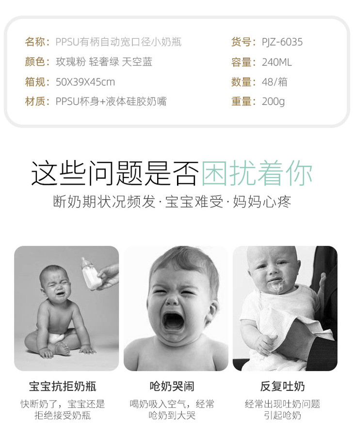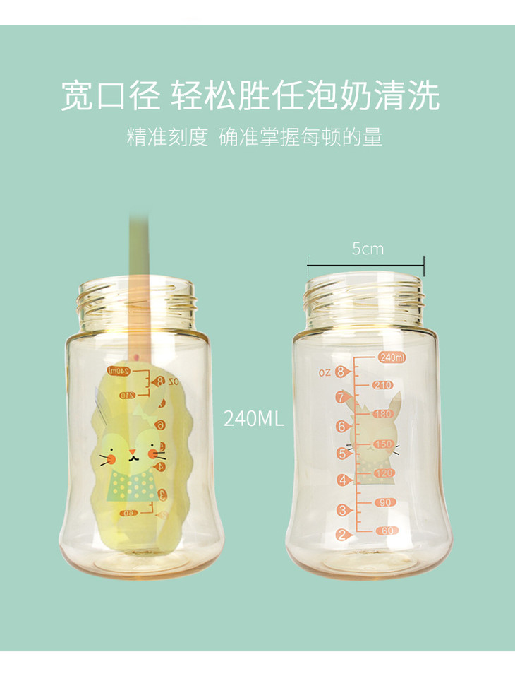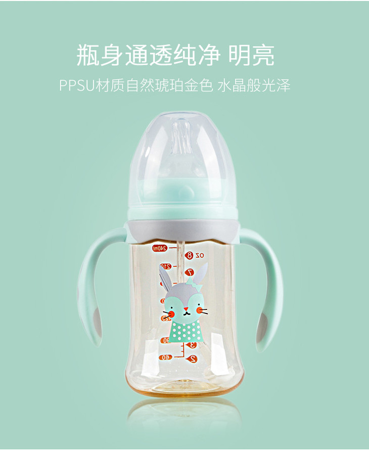 【奶瓶】*创意宽口PPSU奶瓶 240ml带手柄奶嘴瓶母婴用品