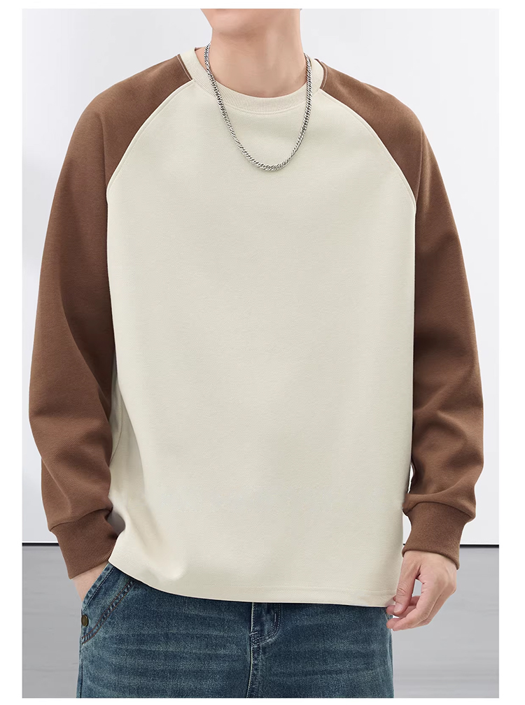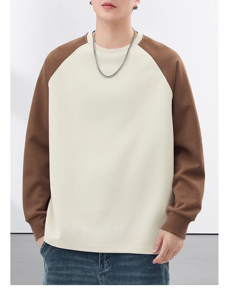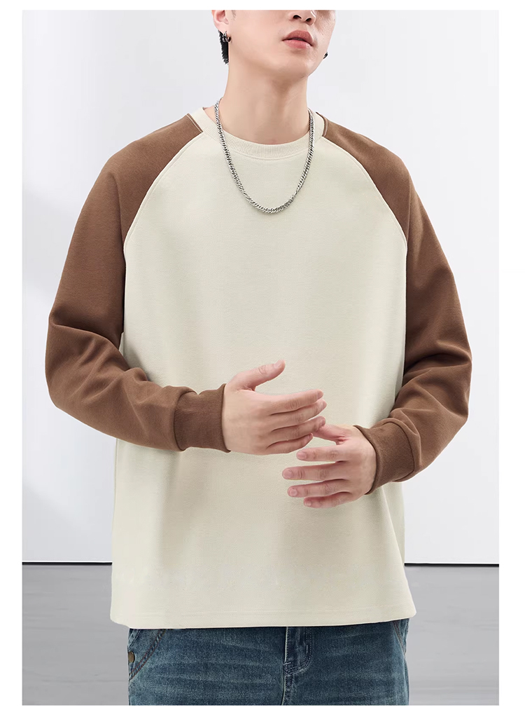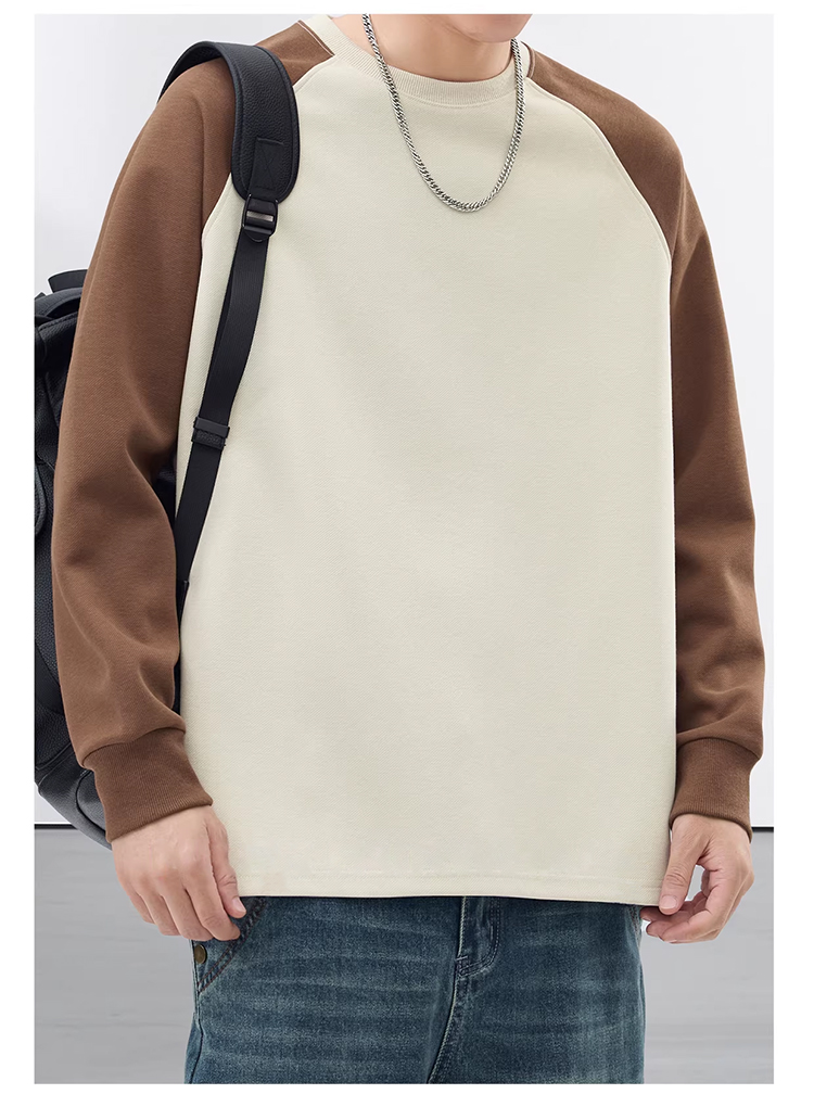 裁缝学苑MH08美式拼色插肩袖卫衣纸样男装新款加绒打底长袖T恤样板
