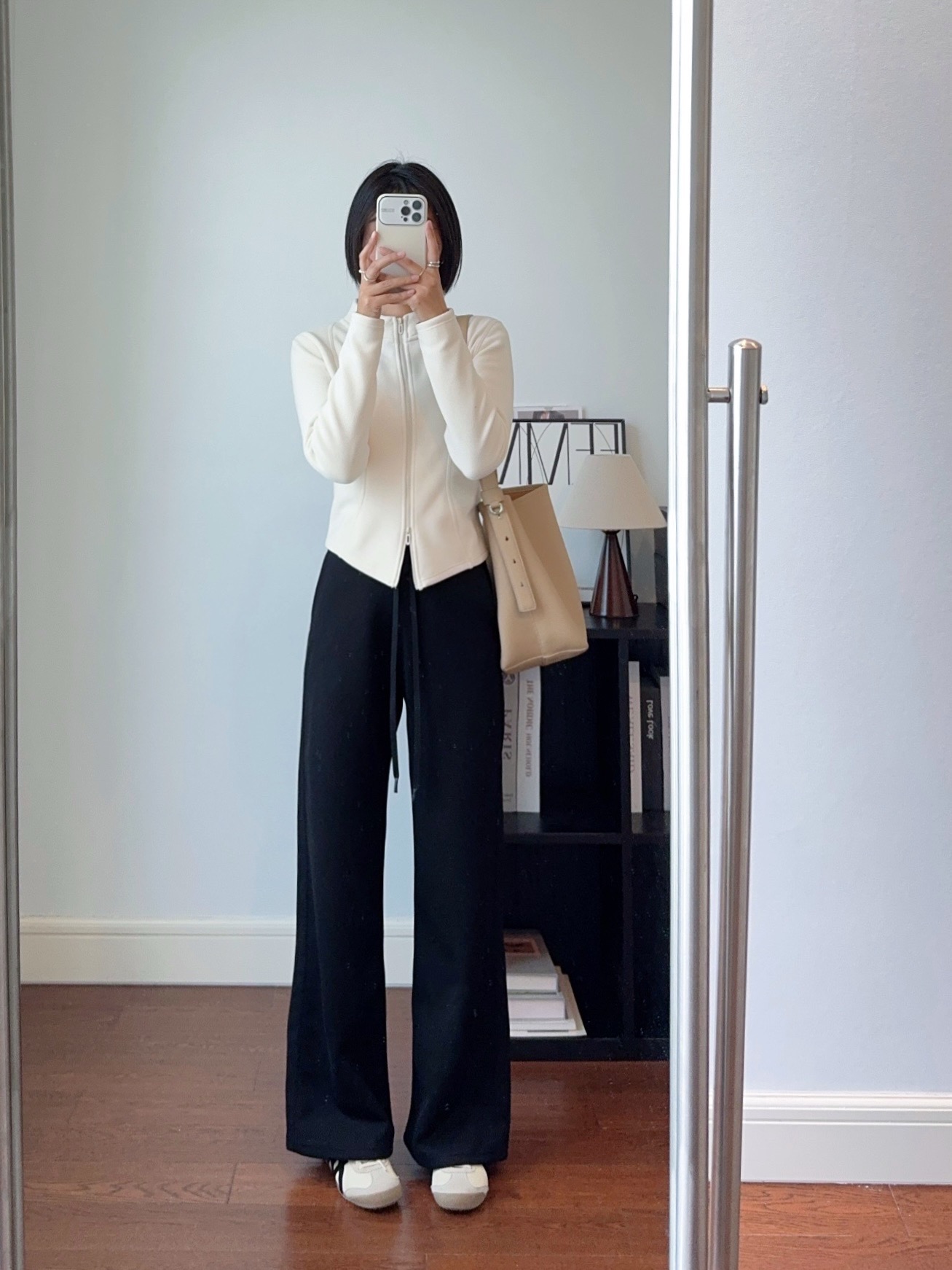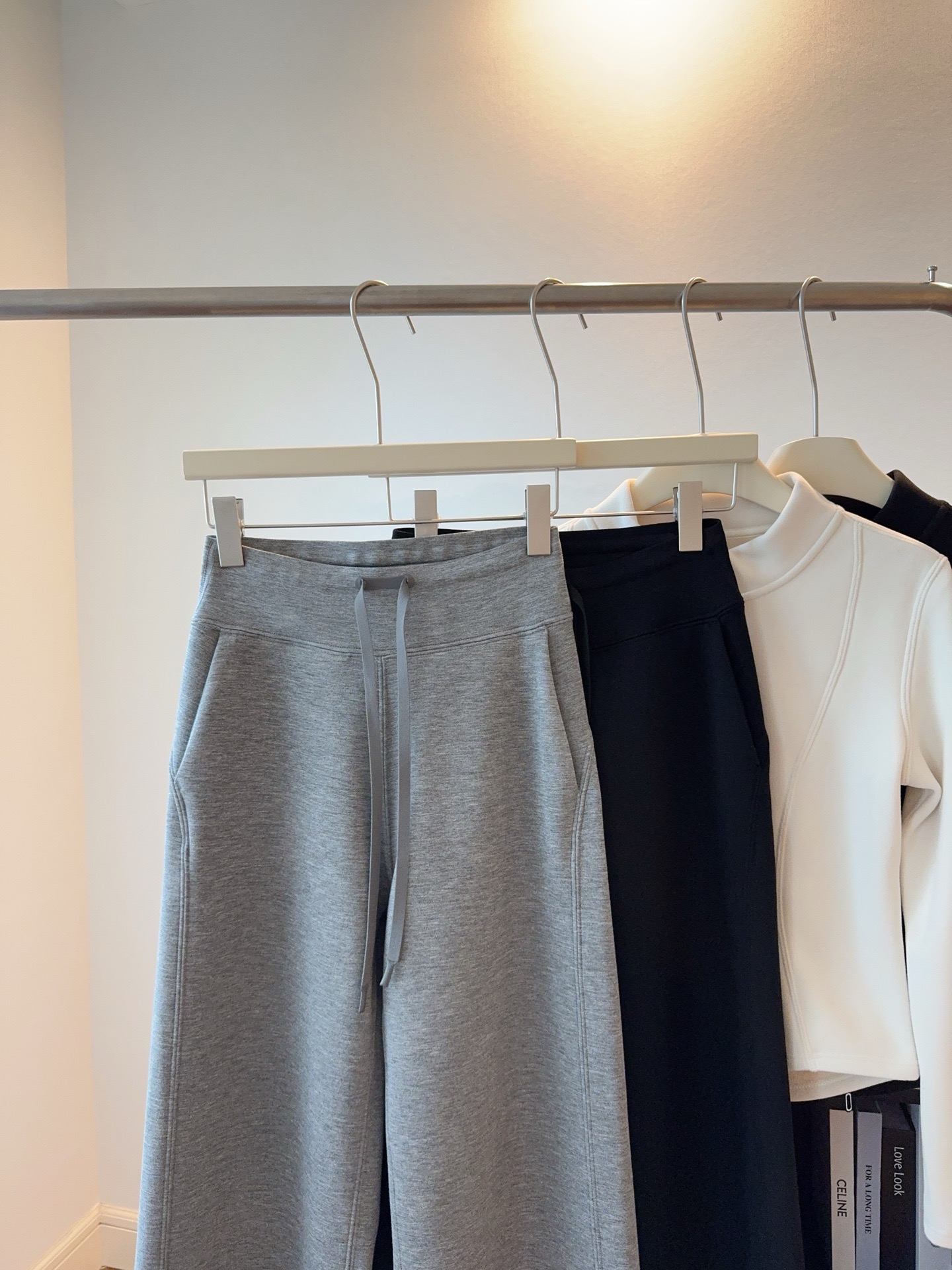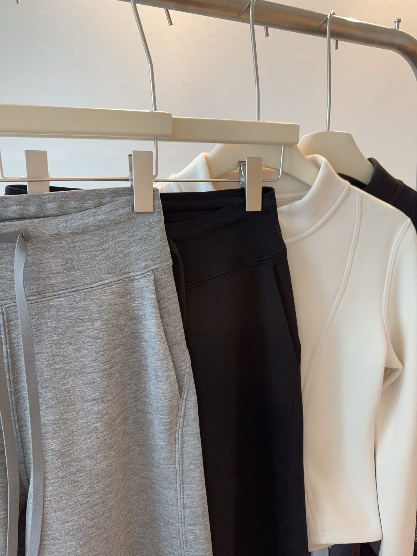 裤子采用空气层面料,追求一种恰到好处的宽松度和流畅的垂坠感