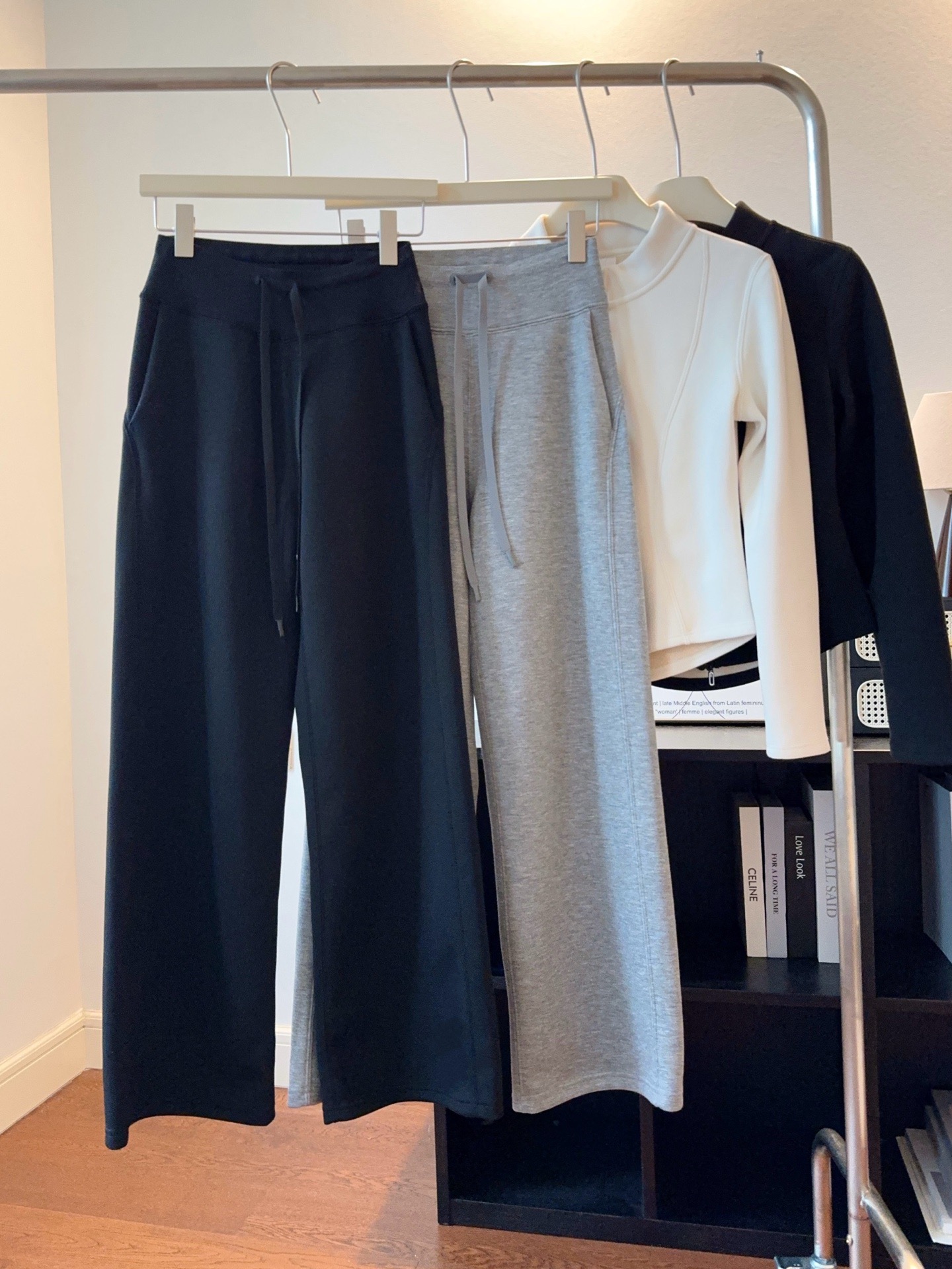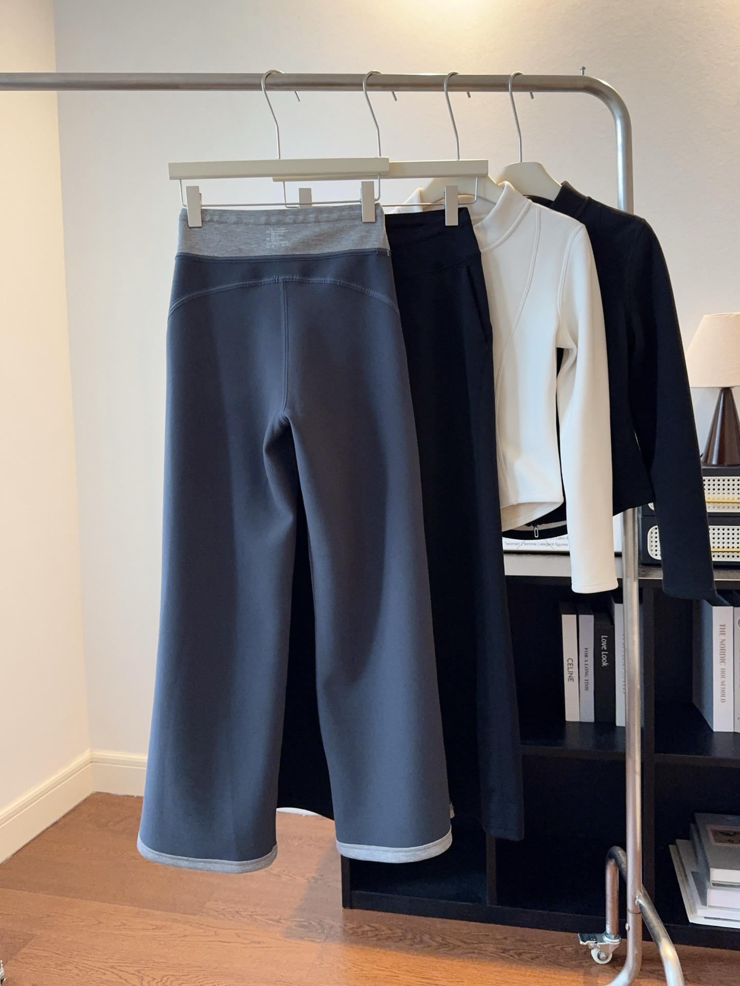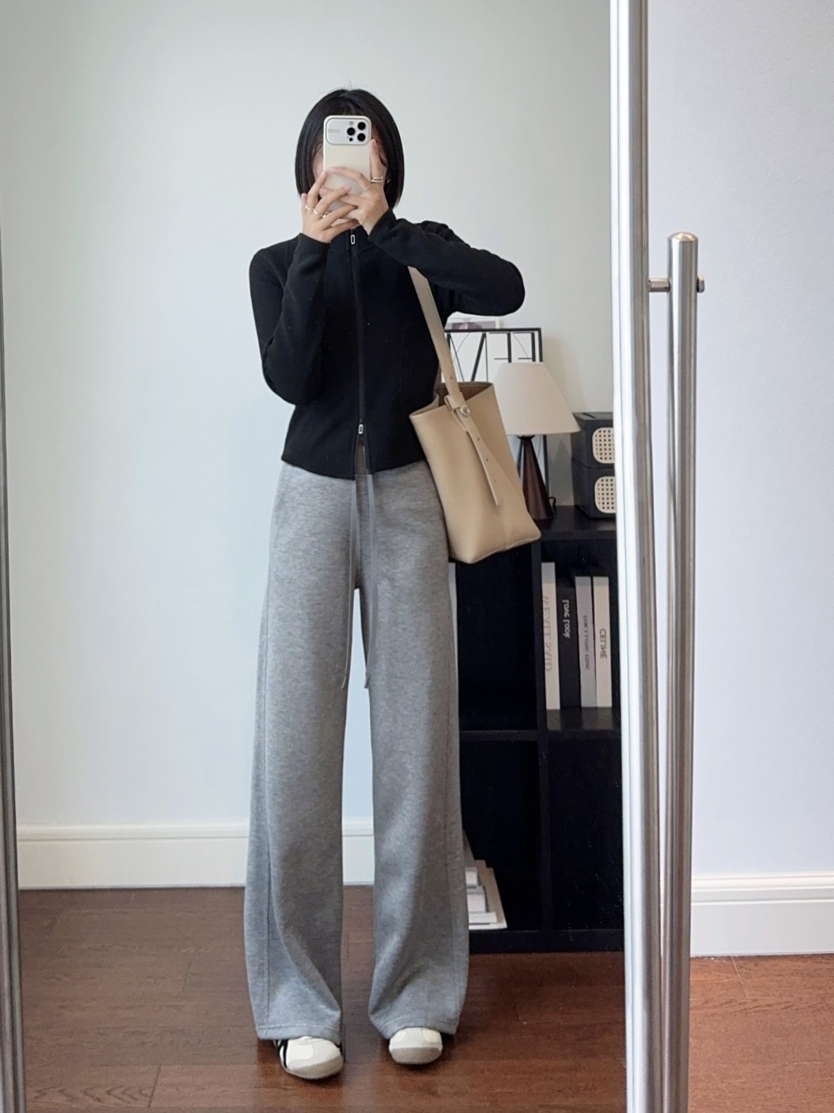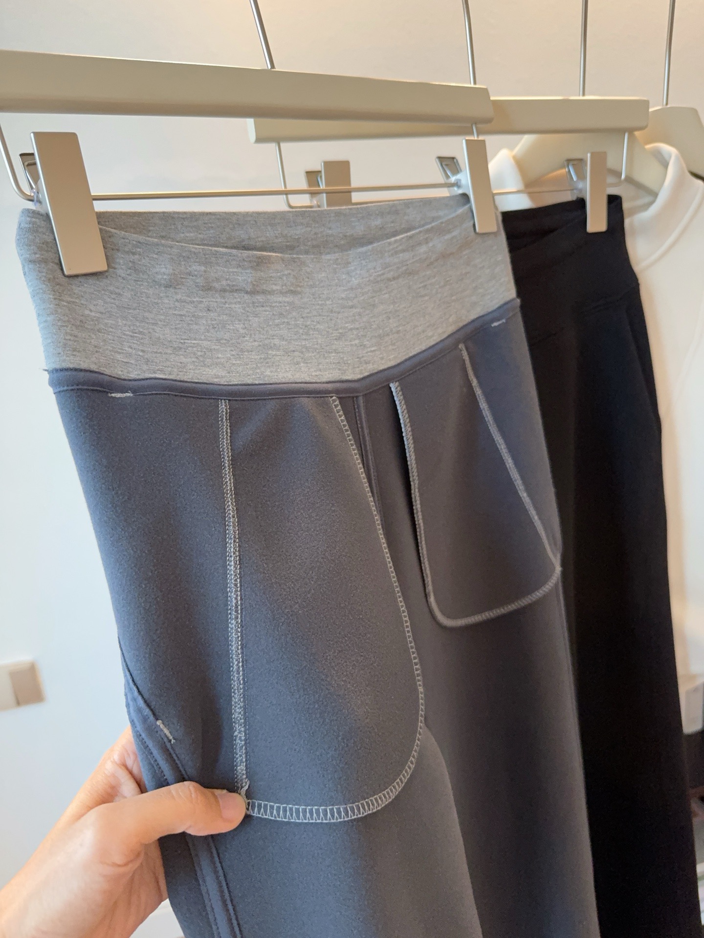裤子采用仿砂洗工艺,软糯亲肤,里面做了加绒处理,显瘦又保暖