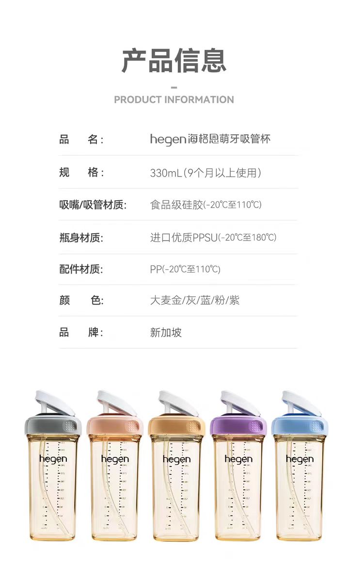 4楼Eubelle欧蓓 Hegen海格恩吸管杯 儿童学饮杯 婴儿9个月以上PPSU 吊牌价:487元 活动价:288元