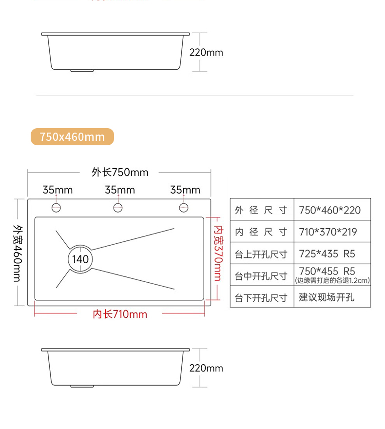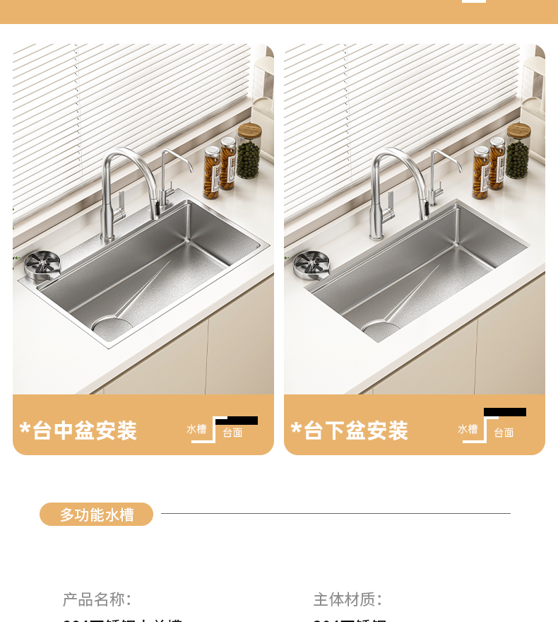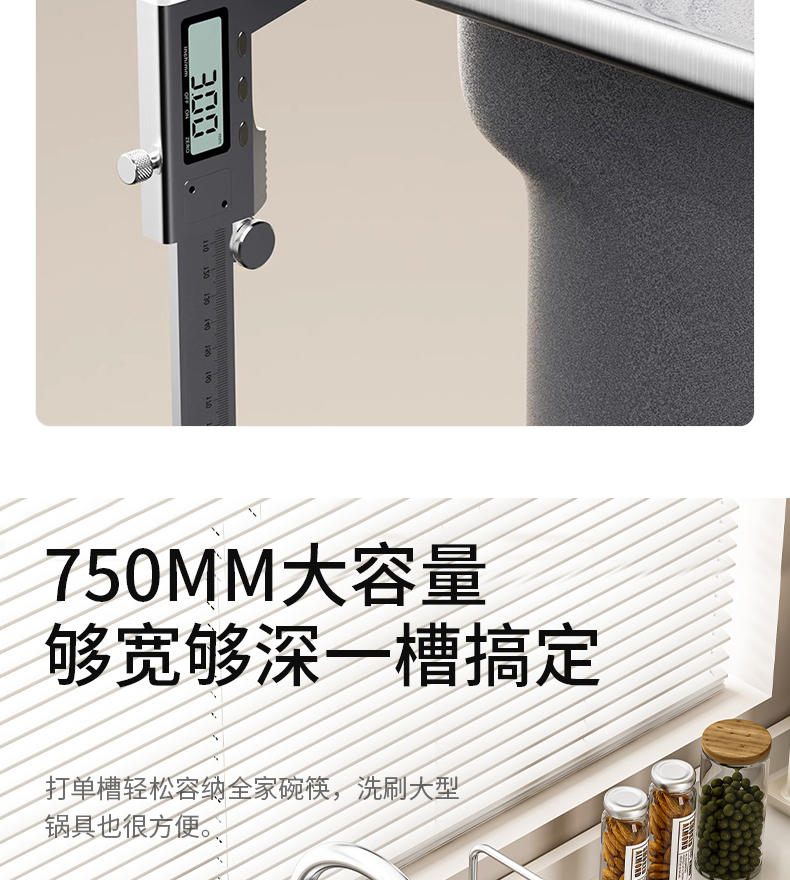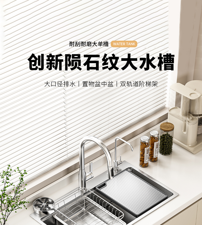帝王洁具304不锈钢陨石纹理大单槽OH67017水槽