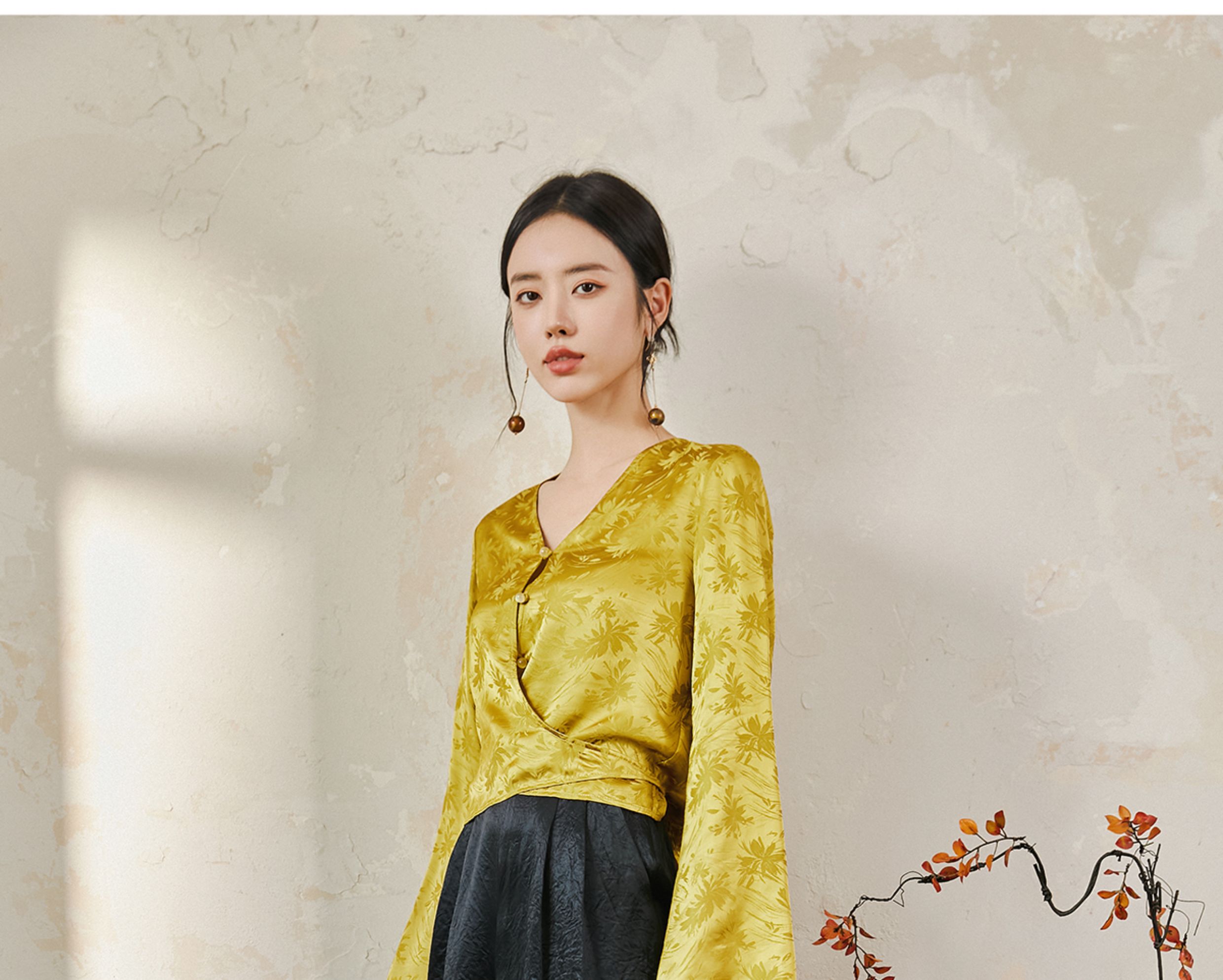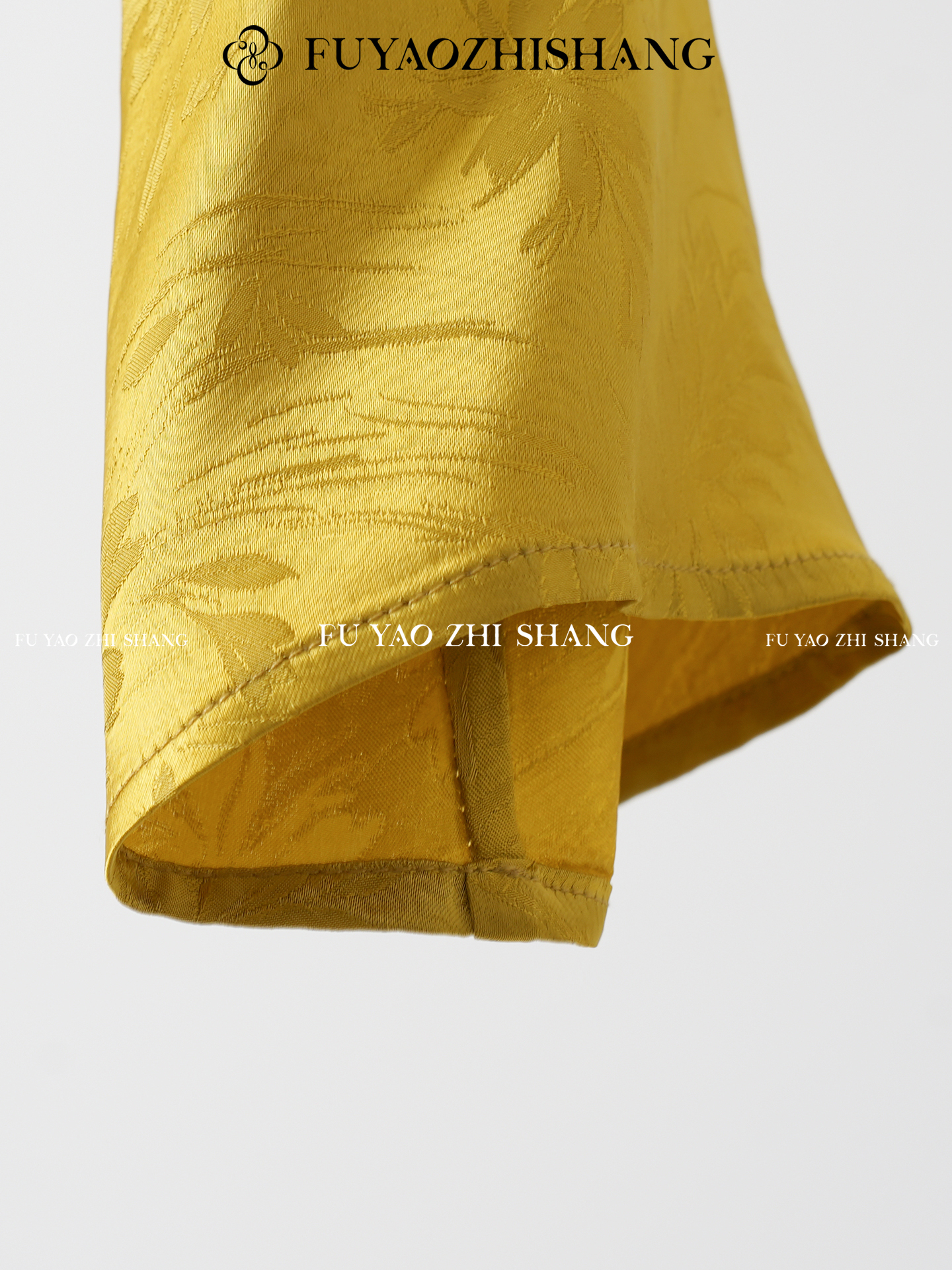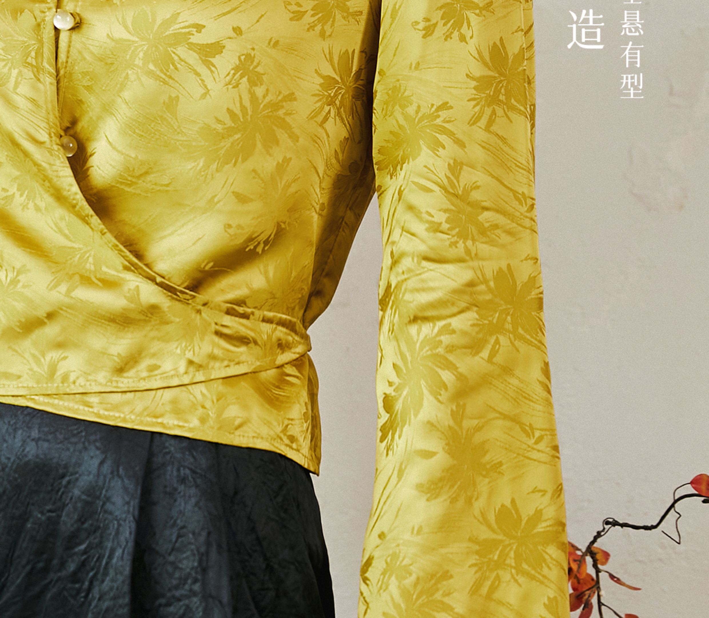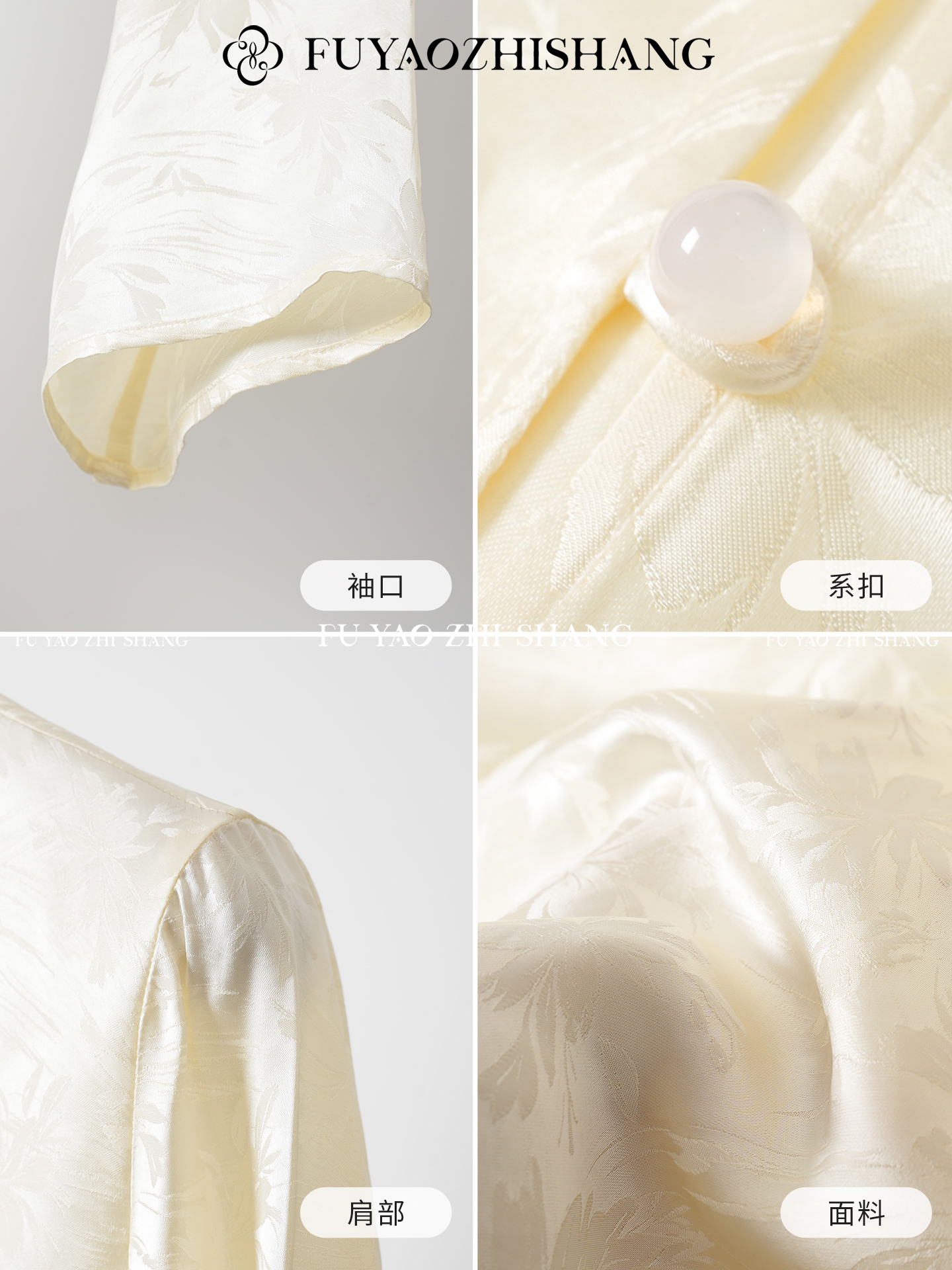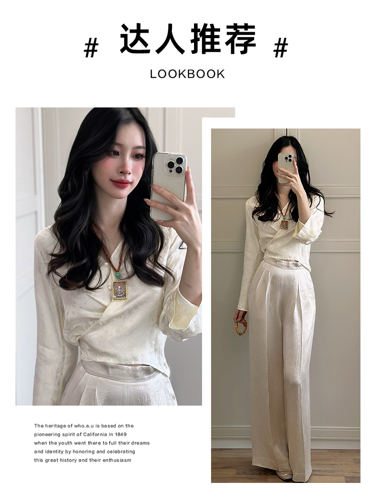 FUYAO扶摇 提花衬衫女秋季新款喇叭袖光泽感缎面上衣国风珠扣衬衣