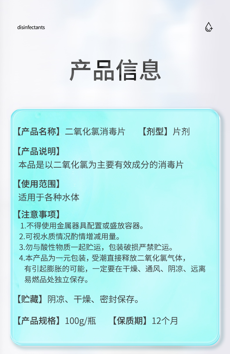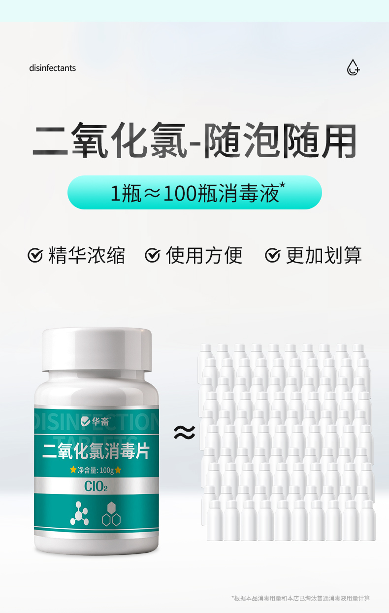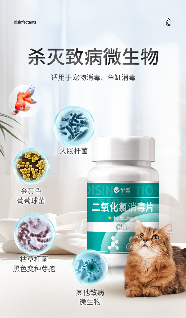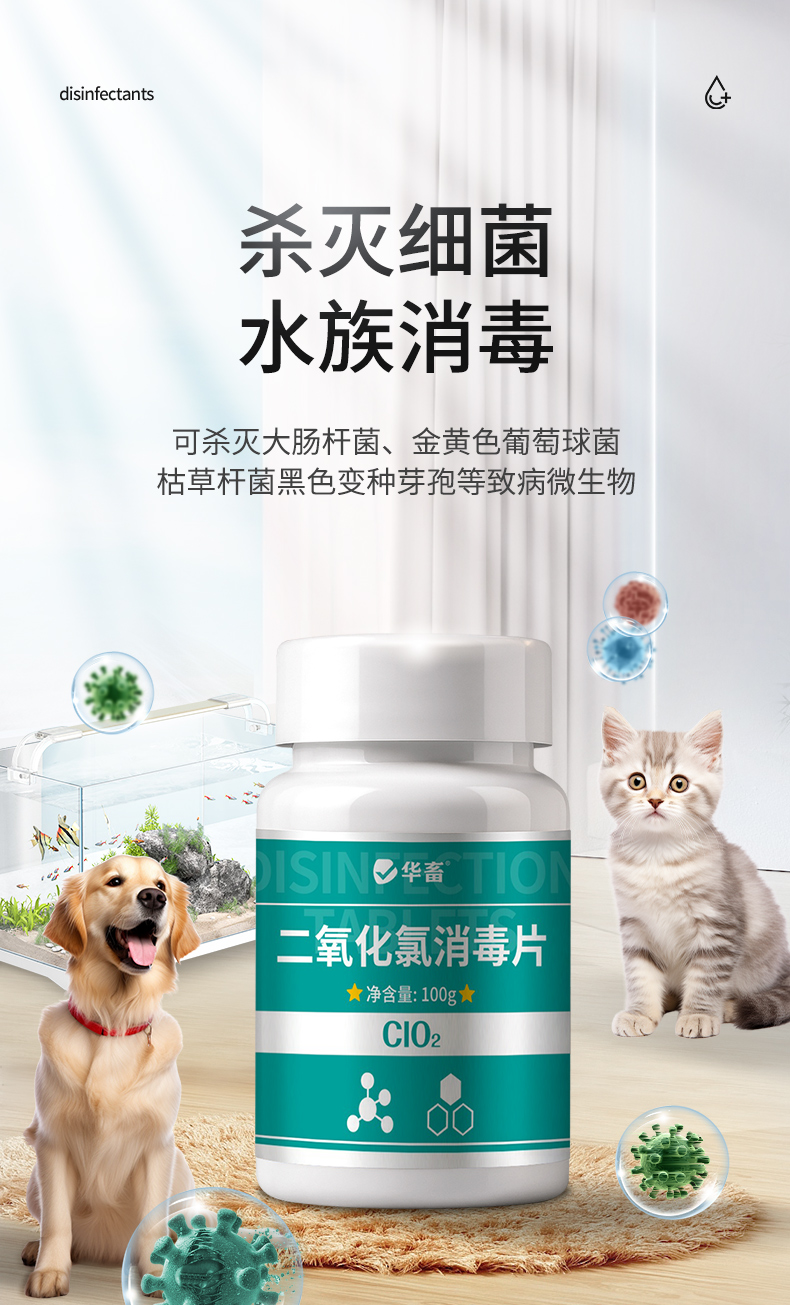 华畜二氧化氯泡腾片消毒片鱼缸专用水产养殖鲜花液杀菌净水观赏鱼
