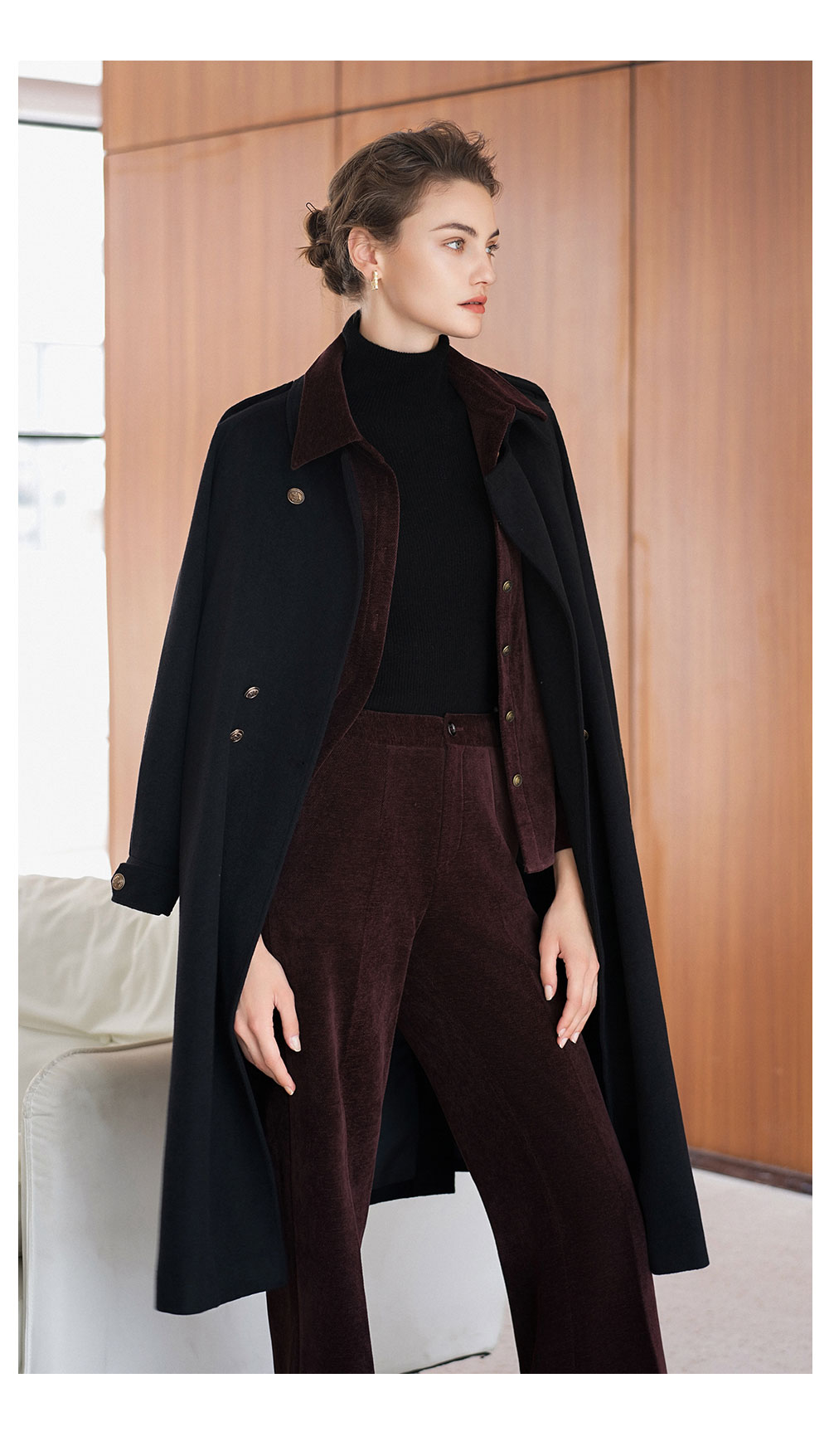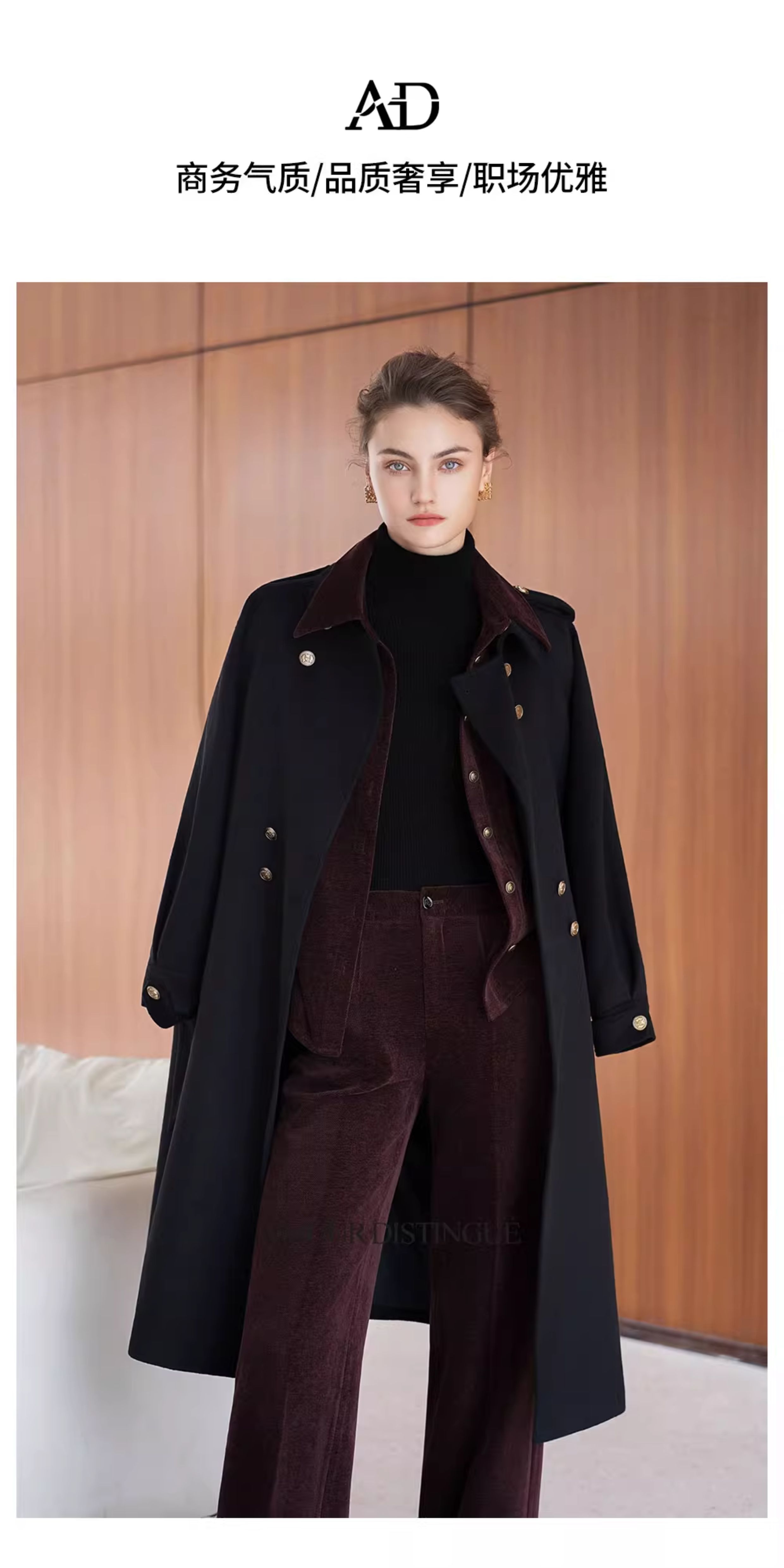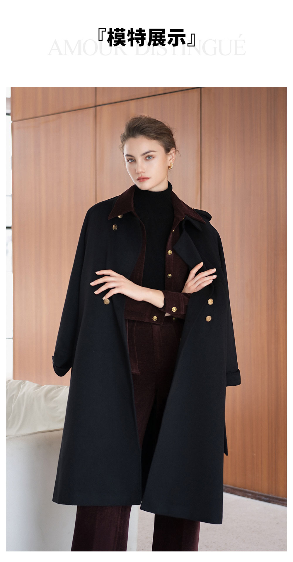 AD双面尼大衣女秋冬宽松气质毛呢外套高级感长款羊毛毛呢大衣风衣