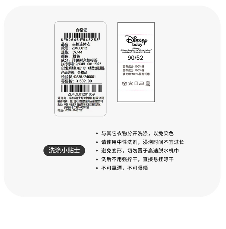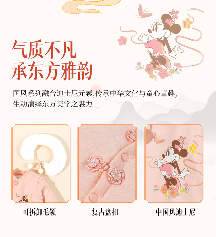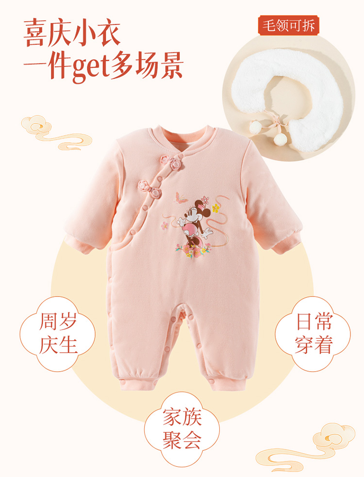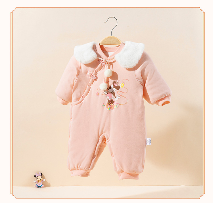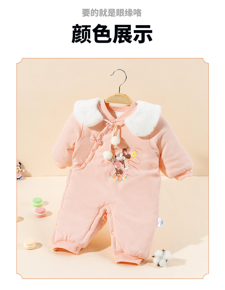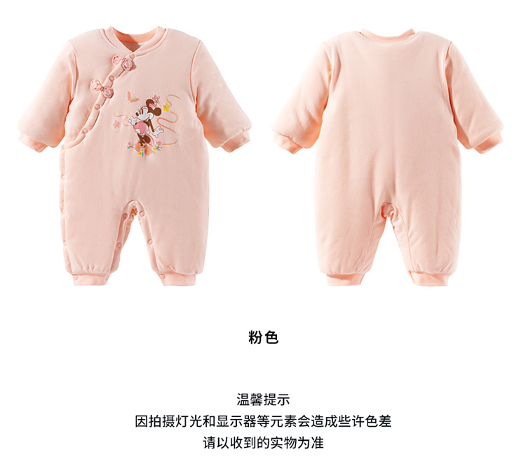 Disney/迪士尼【娃娃领】婴儿夹棉连体衣服春秋冬季保暖加厚女童宝宝哈衣爬爬服 ZD4DL012