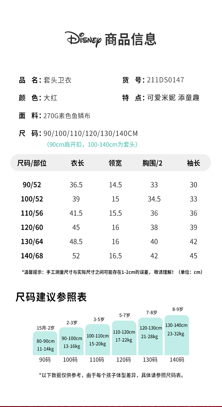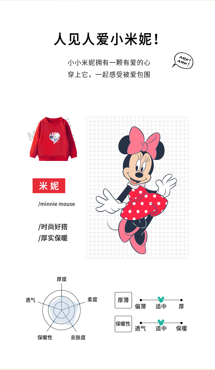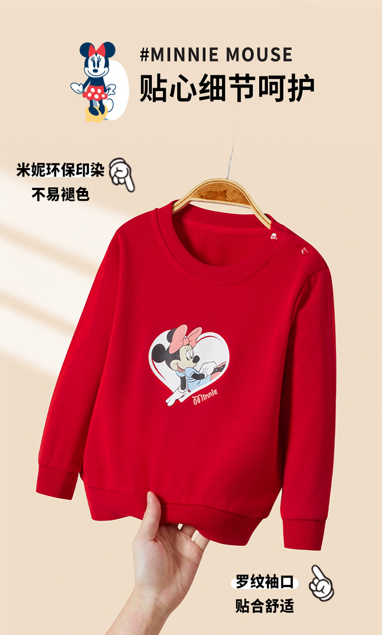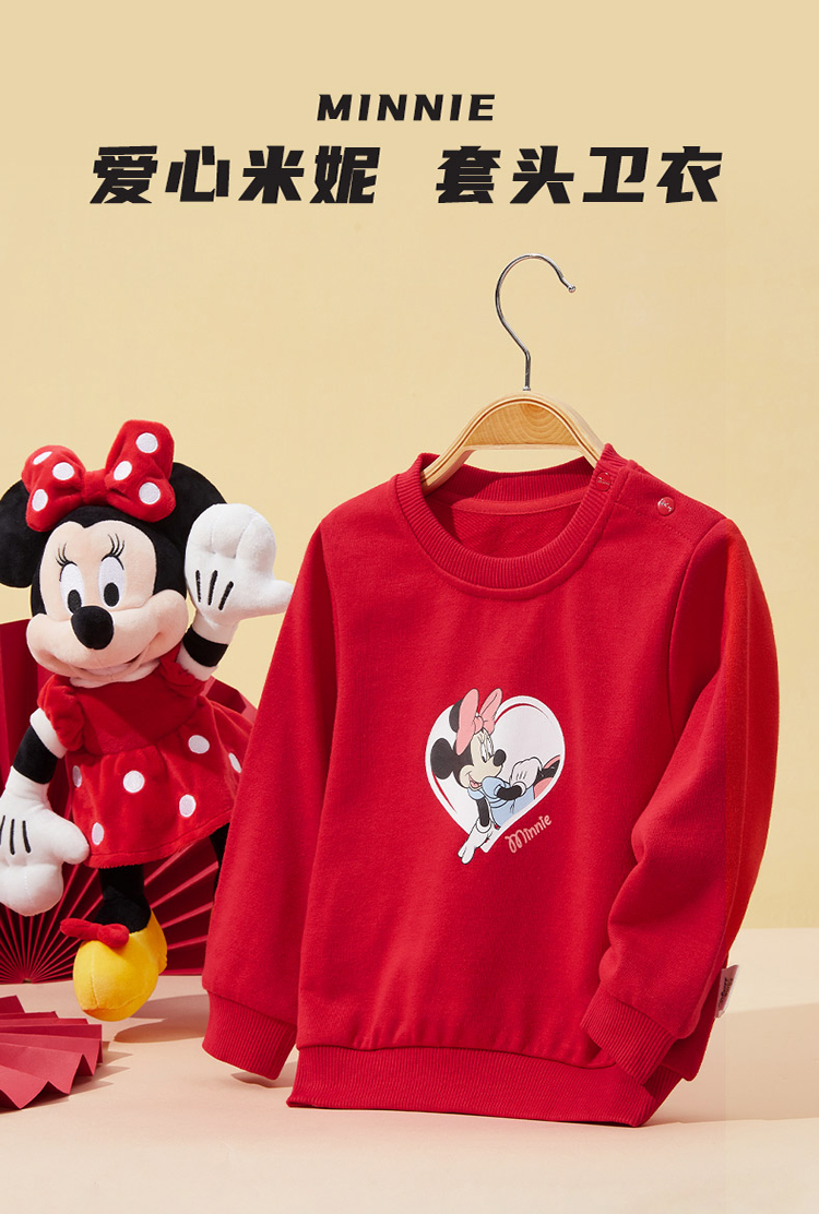 迪士尼童装女童套头卫衣春秋冬外穿打底上衣中小童米妮可爱上衣211DS0147