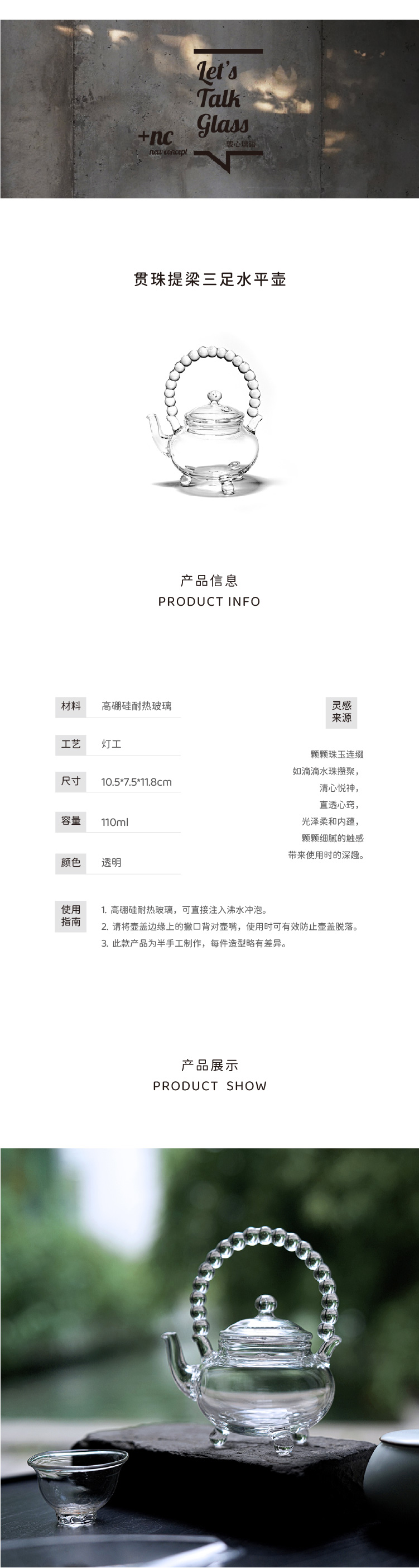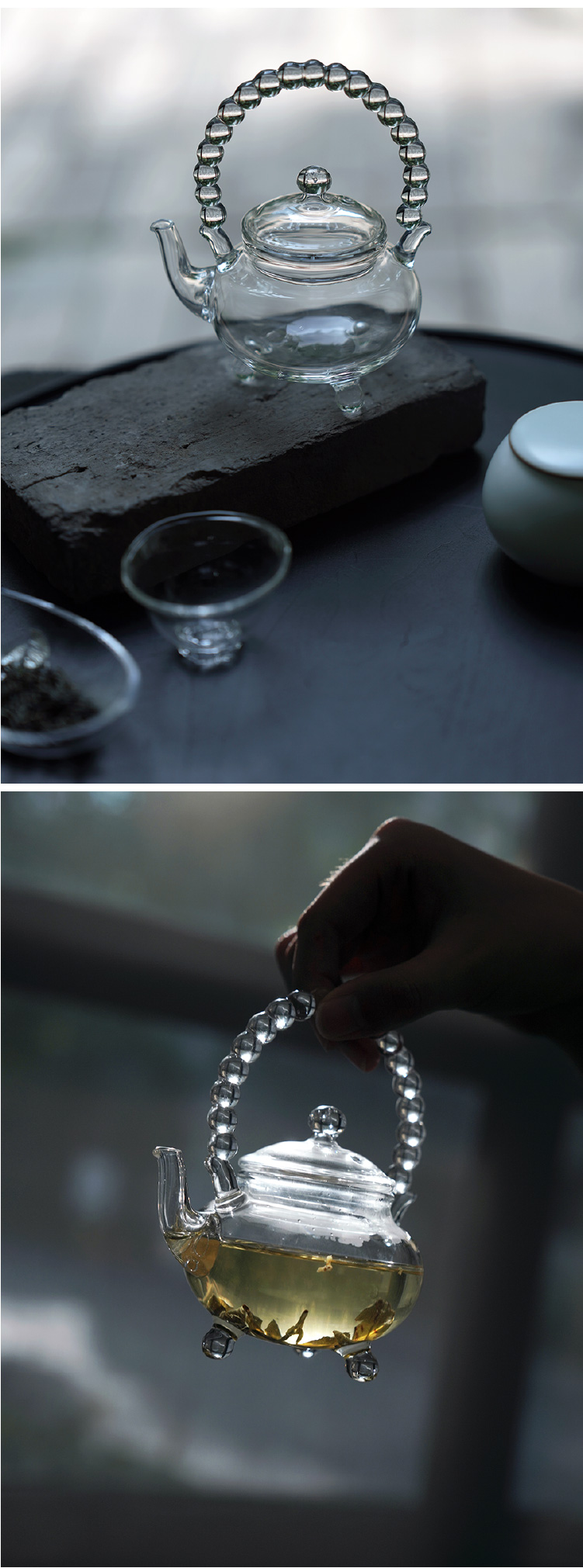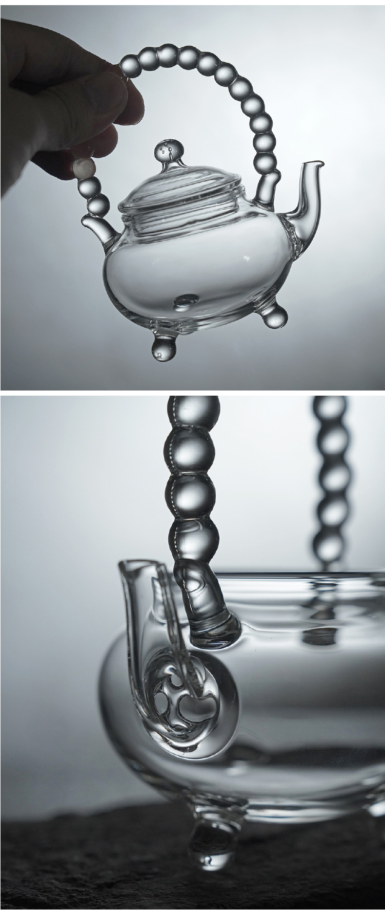 贯珠提梁三足壶○玻心璃语