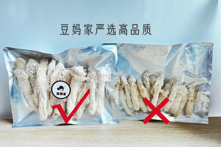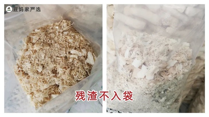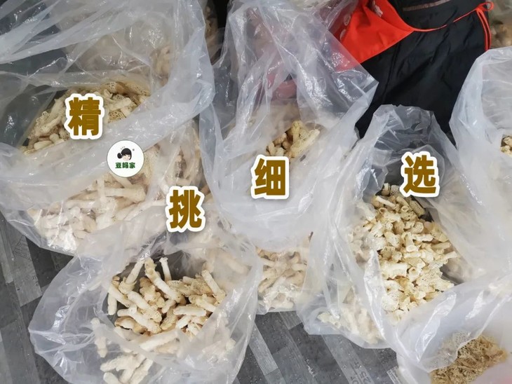 待烤干之后,豆妈家对收购到手的竹荪还需再次精挑细选,好竹荪里挑尖货,对竹荪的粗细、长度都有严格的筛选,选取个头大、品相好的才能出售,1斤里能够选出来符合豆妈家竹荪品相的不到4两。保证原有的傲娇品质,遵循“一季一食”的原则,唯有好的品质,才拿得出手给铁粉们。
