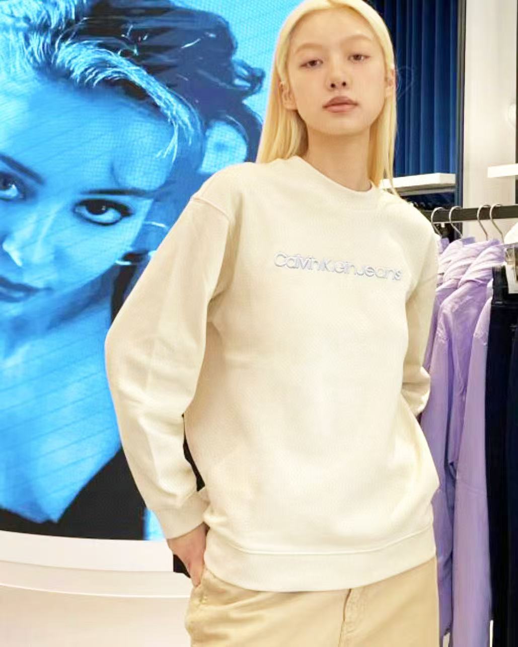 秋冬款,超厚复合绒!男女同款 CK 卫衣 jeans 纯色套头休闲卫衣 凹凸卫衣