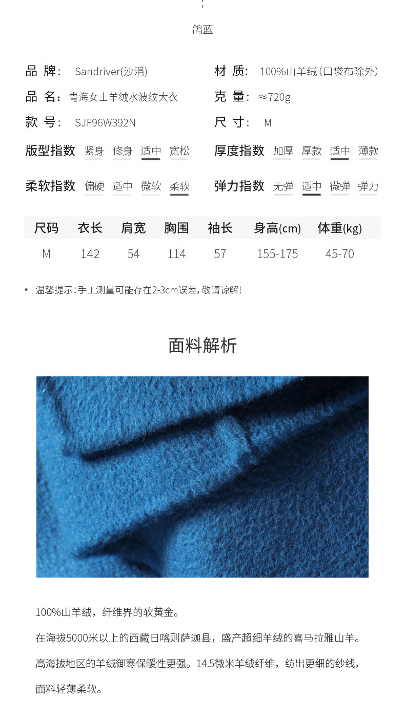 历年在巴黎时装周亮相,享誉世界的艺术羊绒品牌[Sandriver 沙涓]由羊绒布道者郭秀玲女士创立。阿拉善自有牧场纯种羔羊绒,日本国宝设计师小筱顺子,上海自有基地精工细作。承载羊绒情怀,坚持匠人品质。