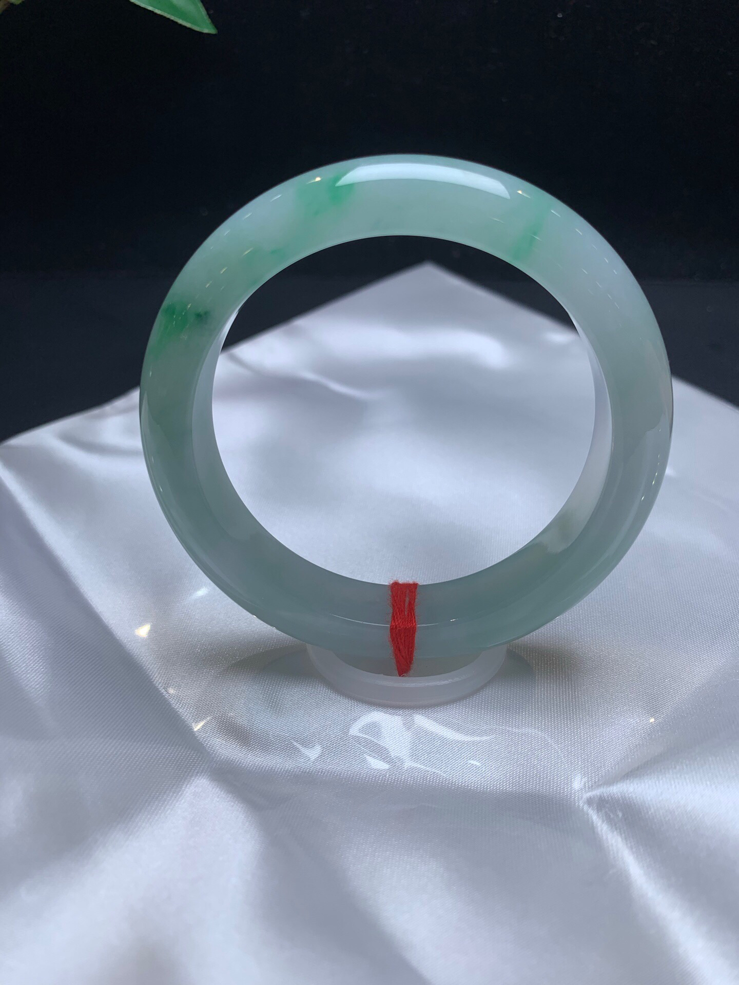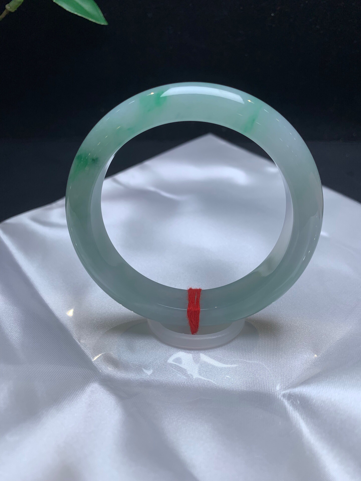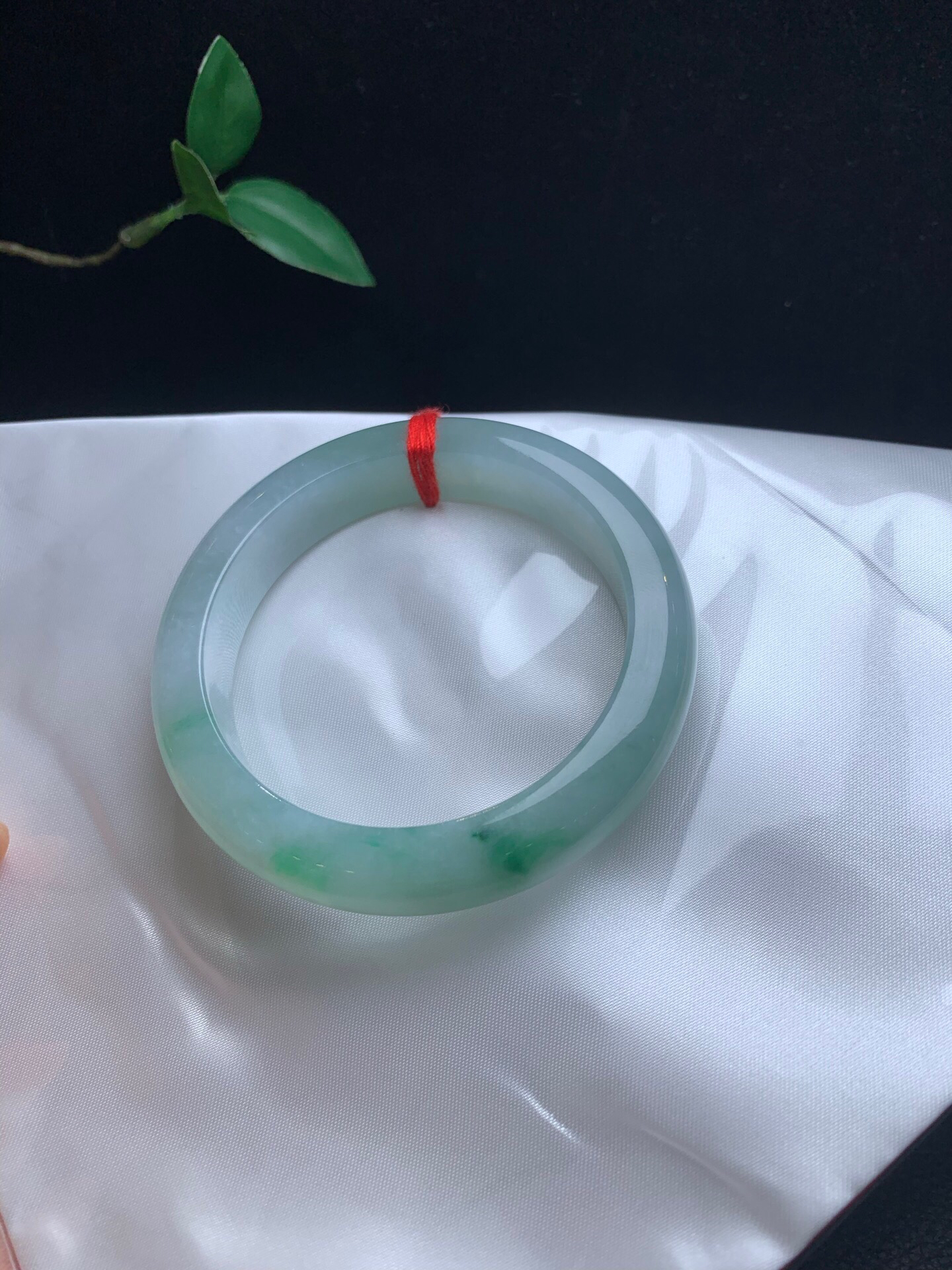 612693,55飘绿手镯,12.5-8.5mm,底妆均匀 一截飘绿花,干净完美 。超值价💰19700 #优石客珠宝#香玉荟萃
