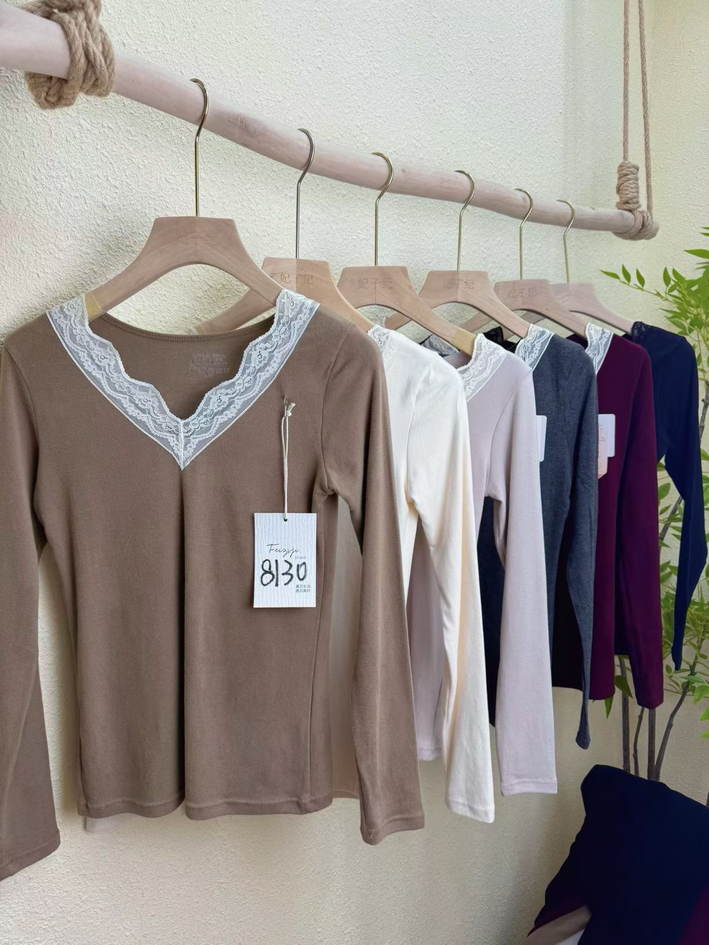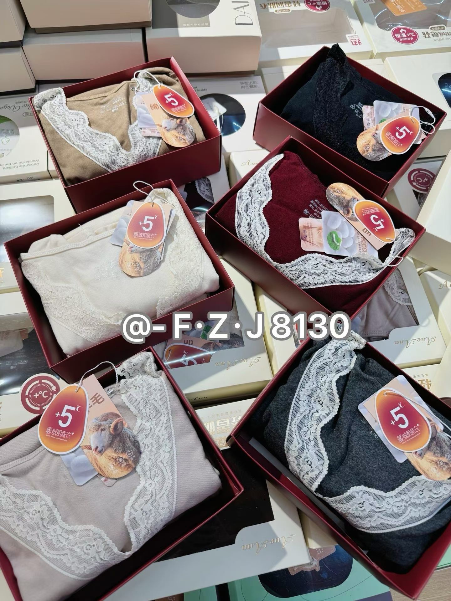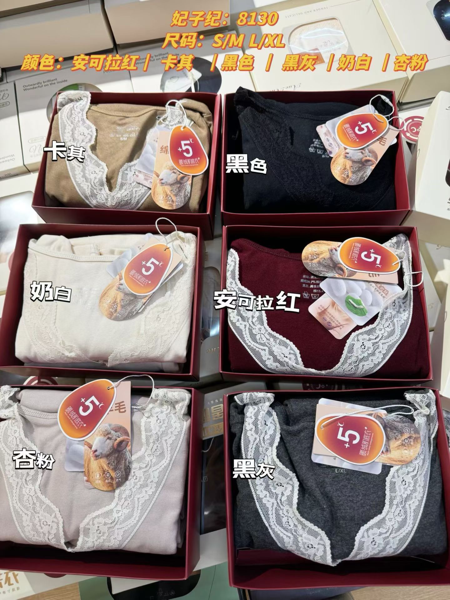 D112725羊毛蚕丝洋气V领蕾丝花边领口保暖内衣套装