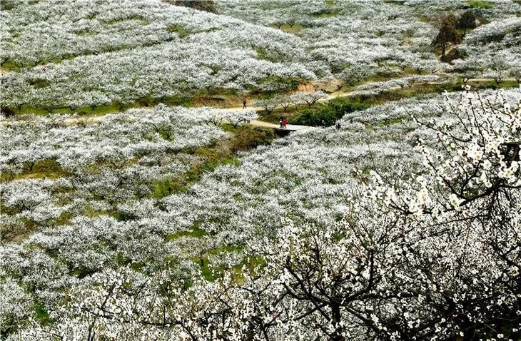 成片栽植上万株梅花,疏枝缀玉缤纷怒放