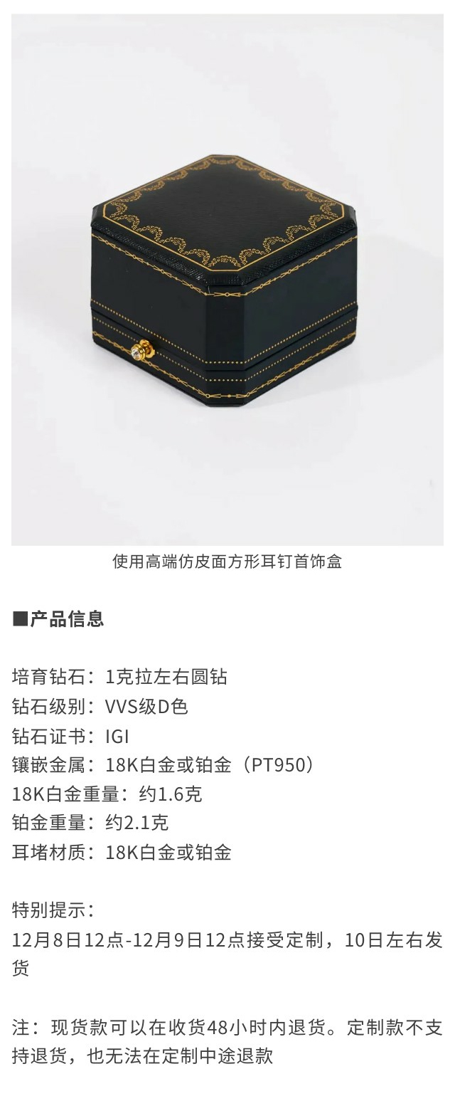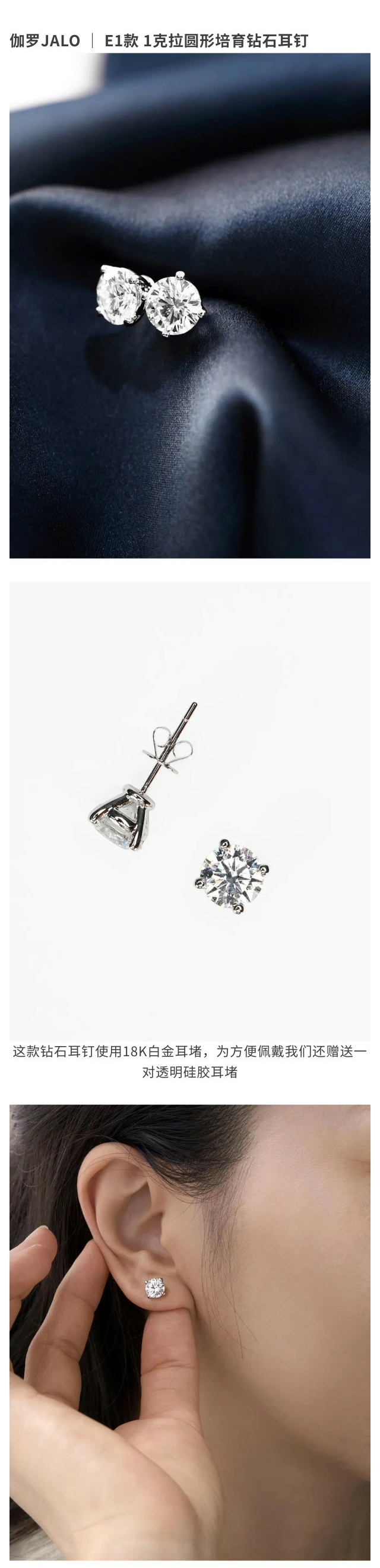 伽罗JALO E1款 VVS级 D色18K圆形培育钻石耳钉