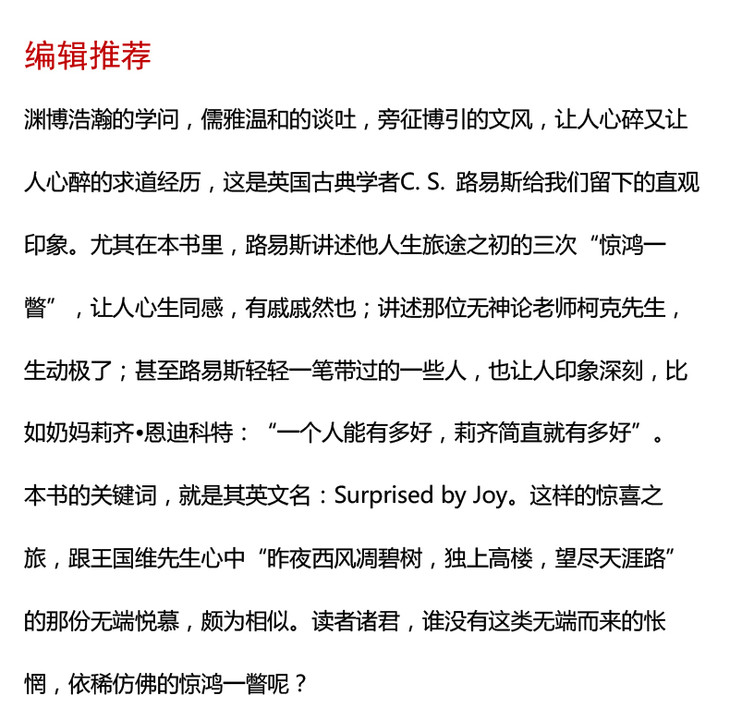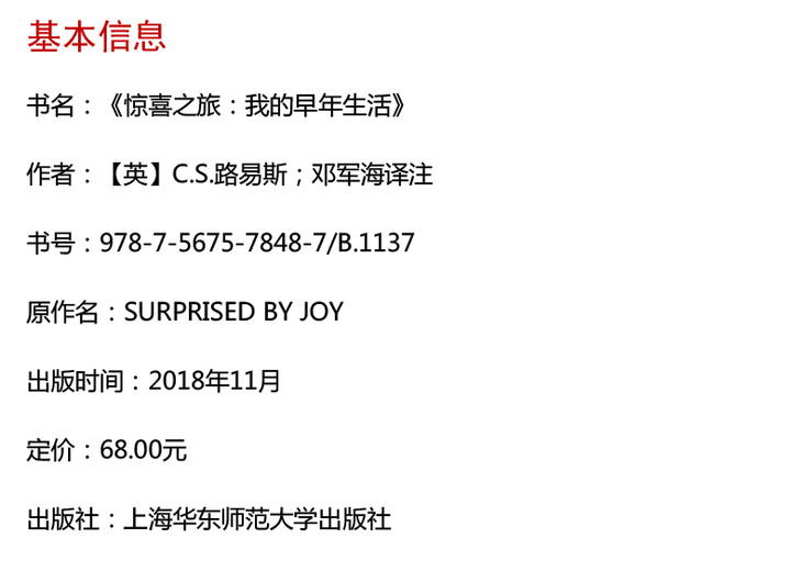 惊喜之旅:我的早年生活 C.S.路易斯著作系列 精装 路易斯精神自传