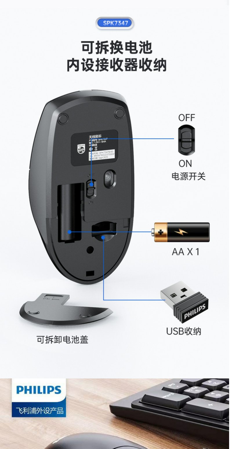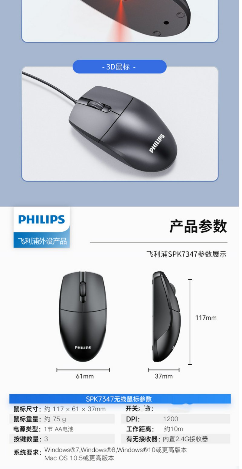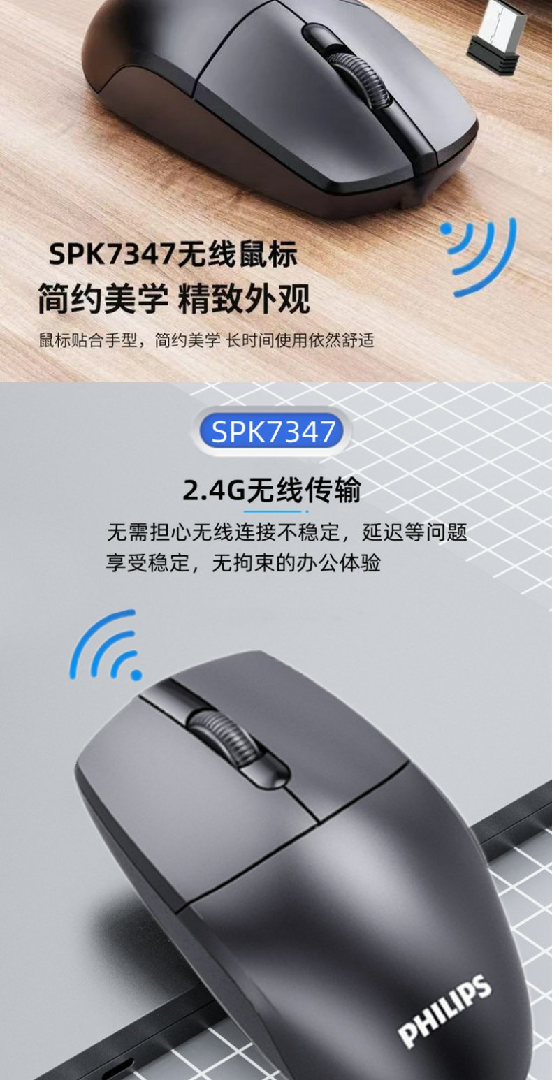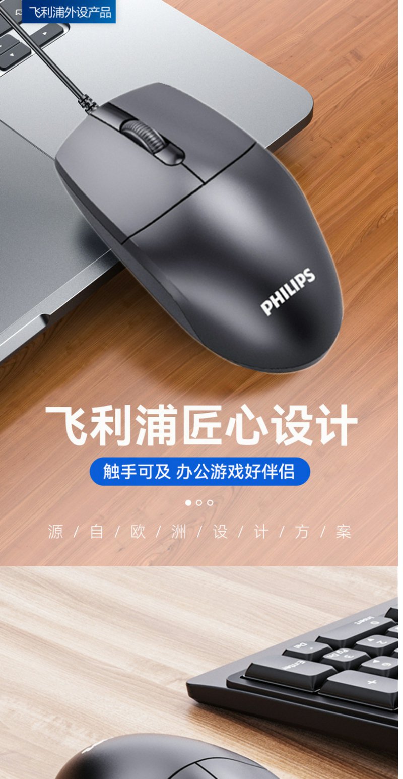 飞利浦SPK7247有线USB鼠标商务电脑台式笔记本2.4G无线鼠标 1.8米*1