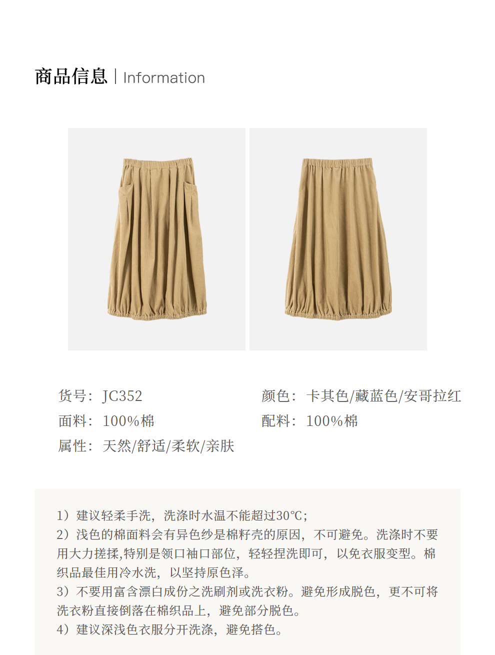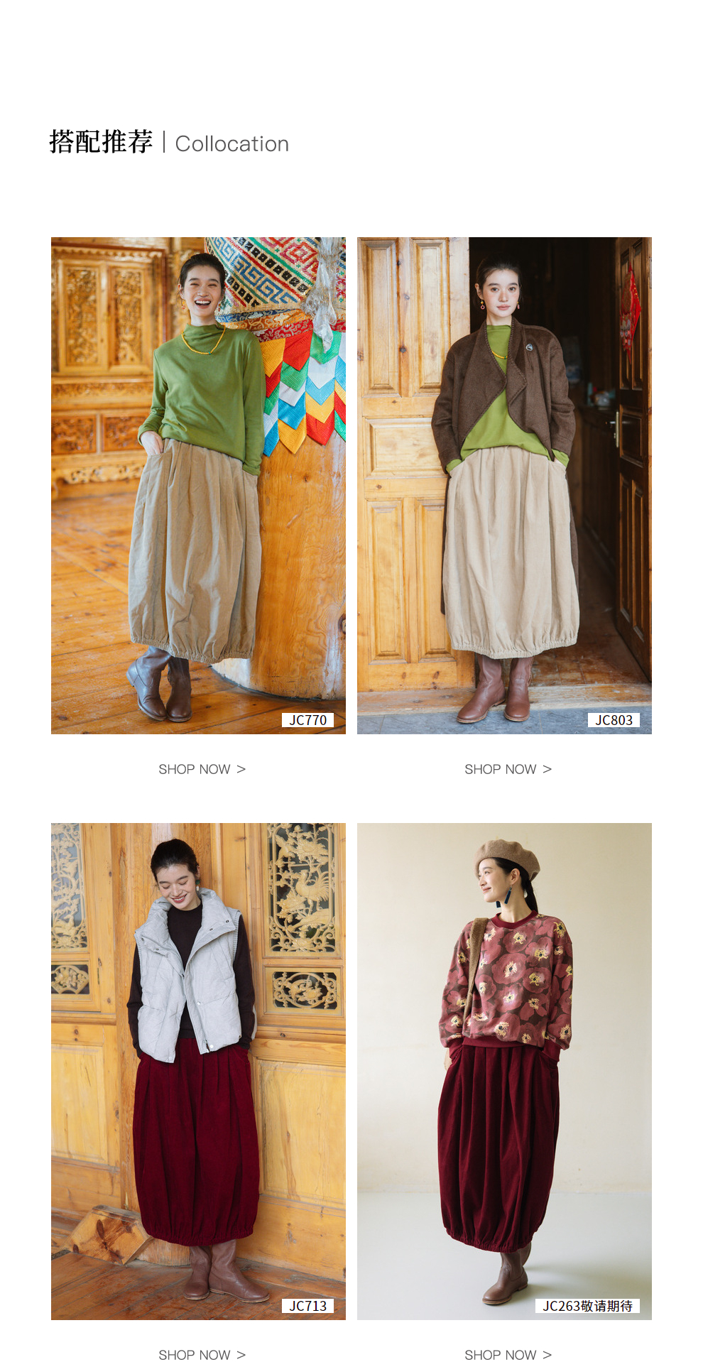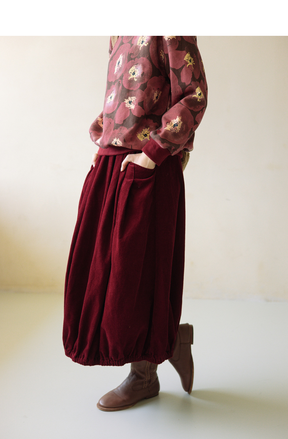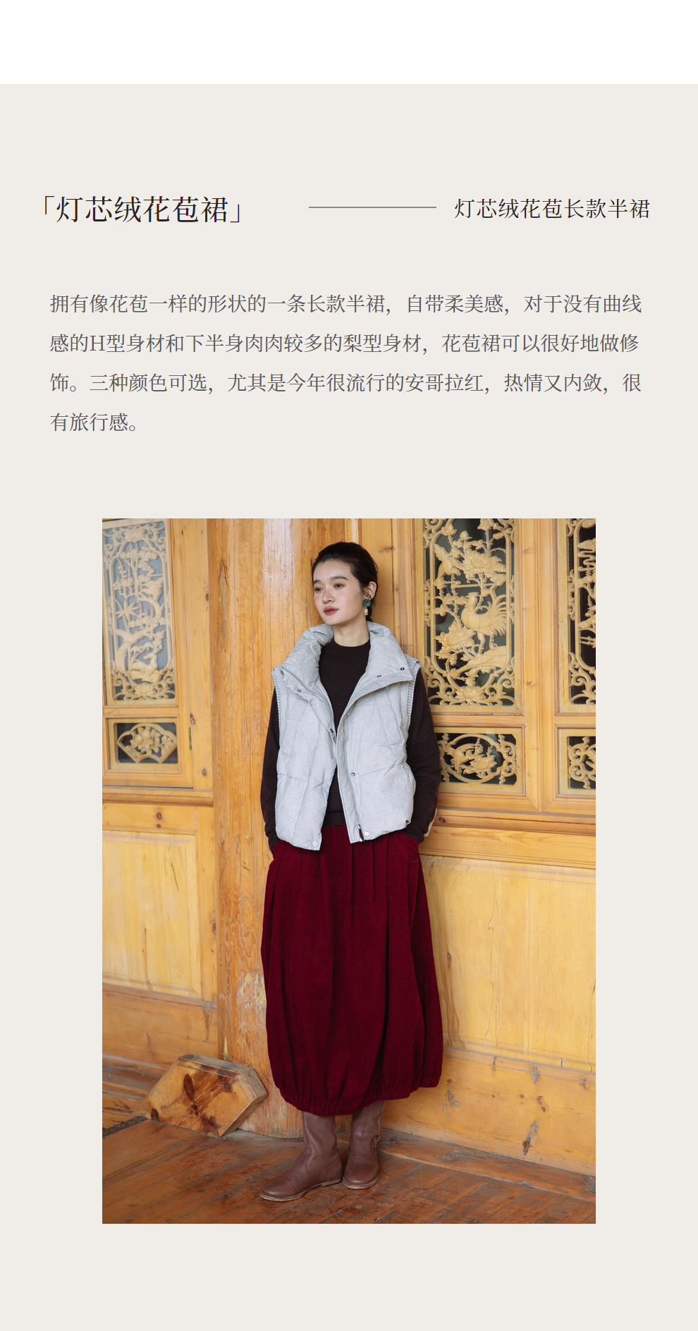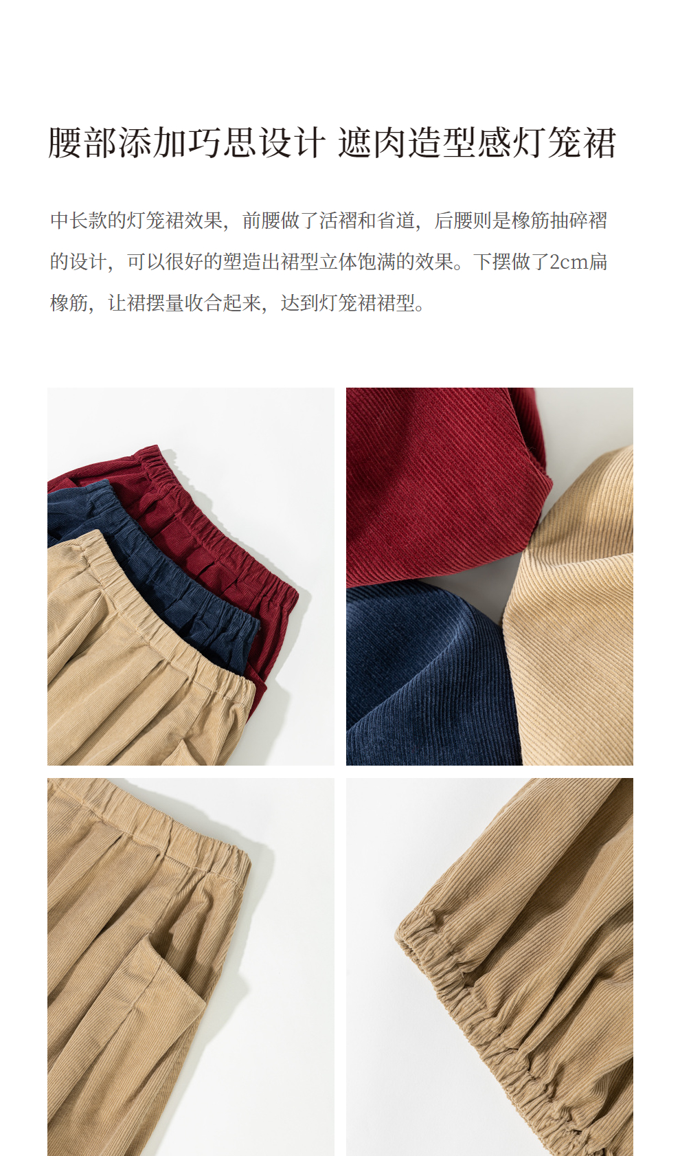 绽放旅行女装352朵/秋冬*加厚灯芯绒花苞中长款灯笼裙半身裙