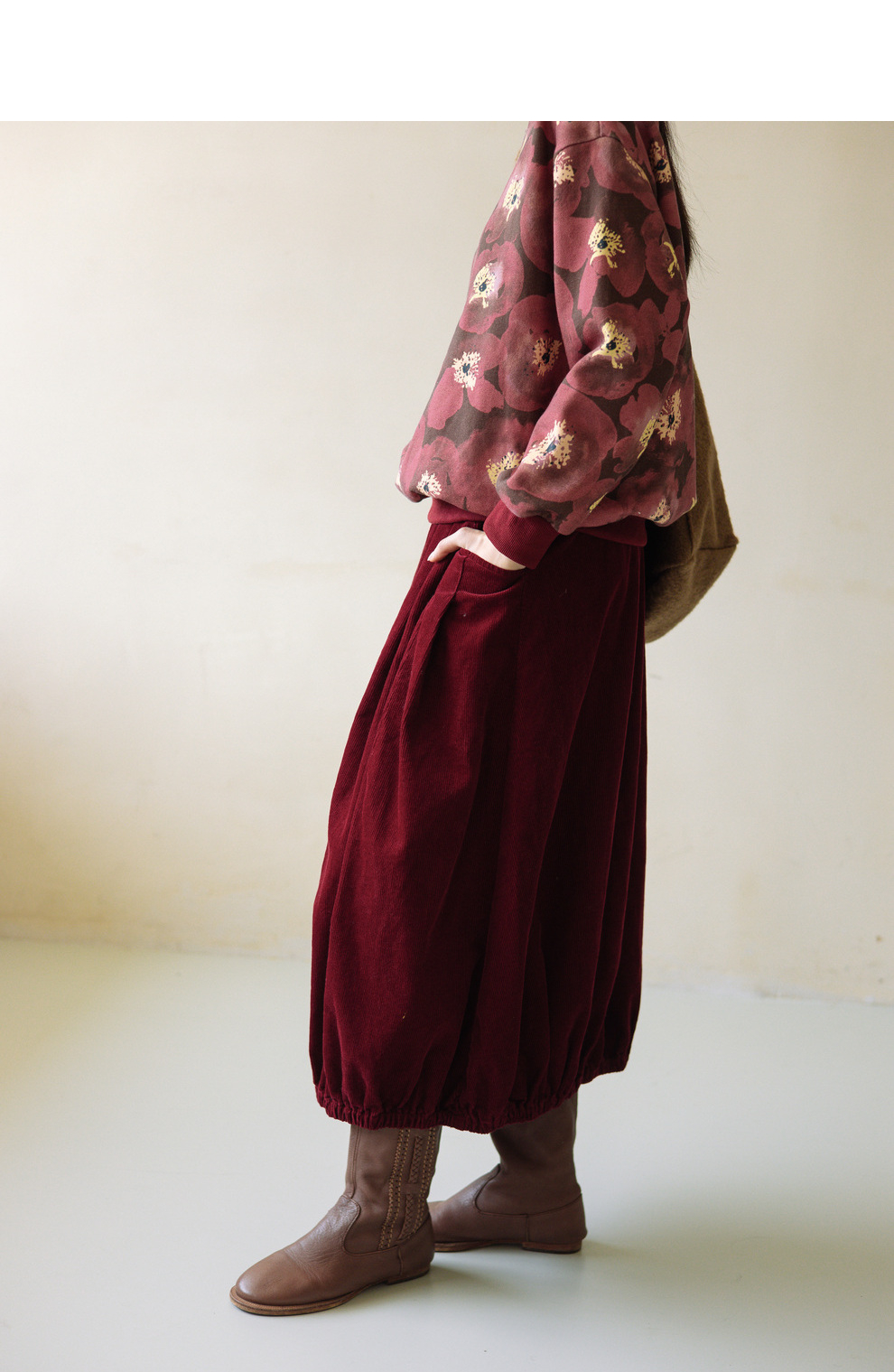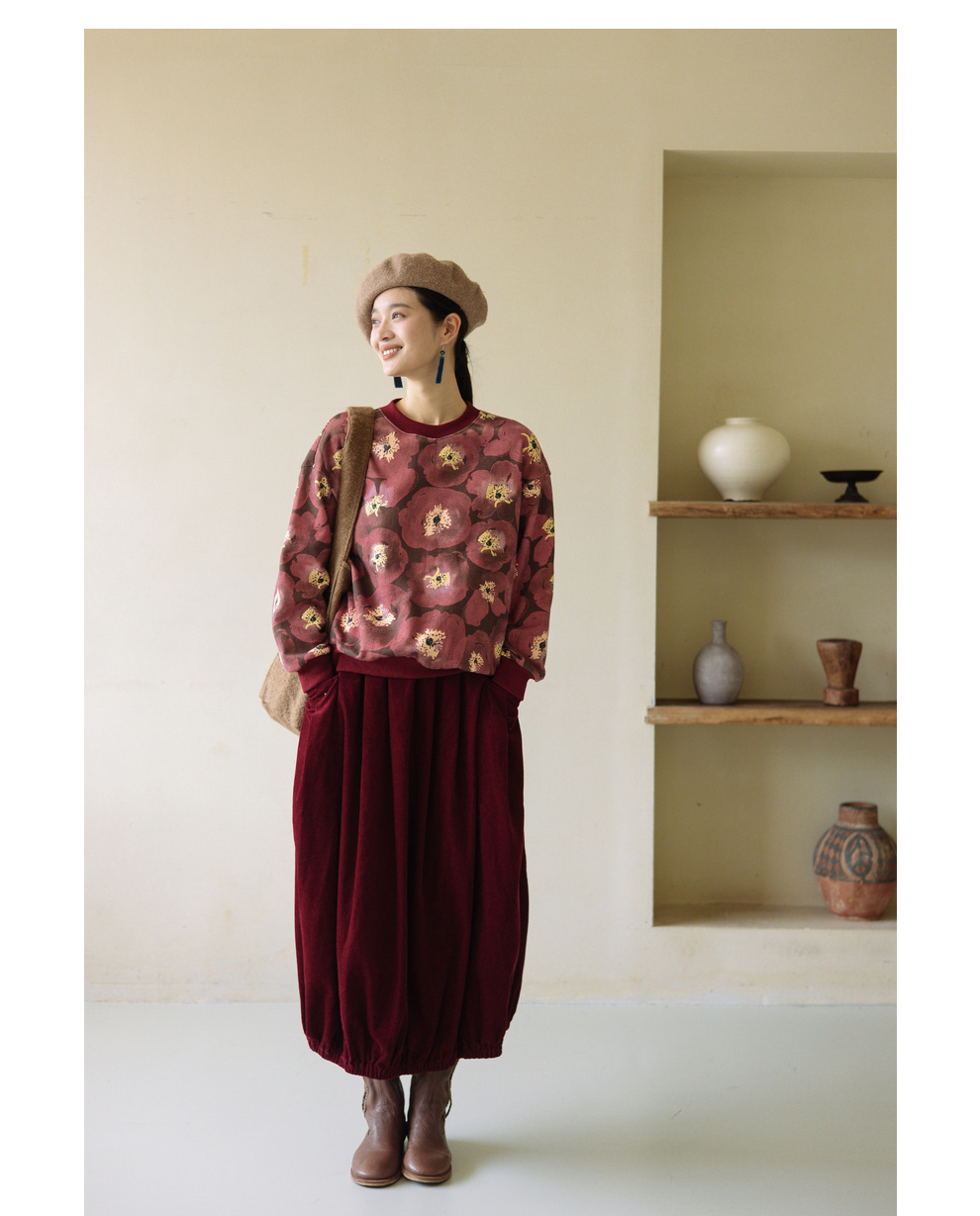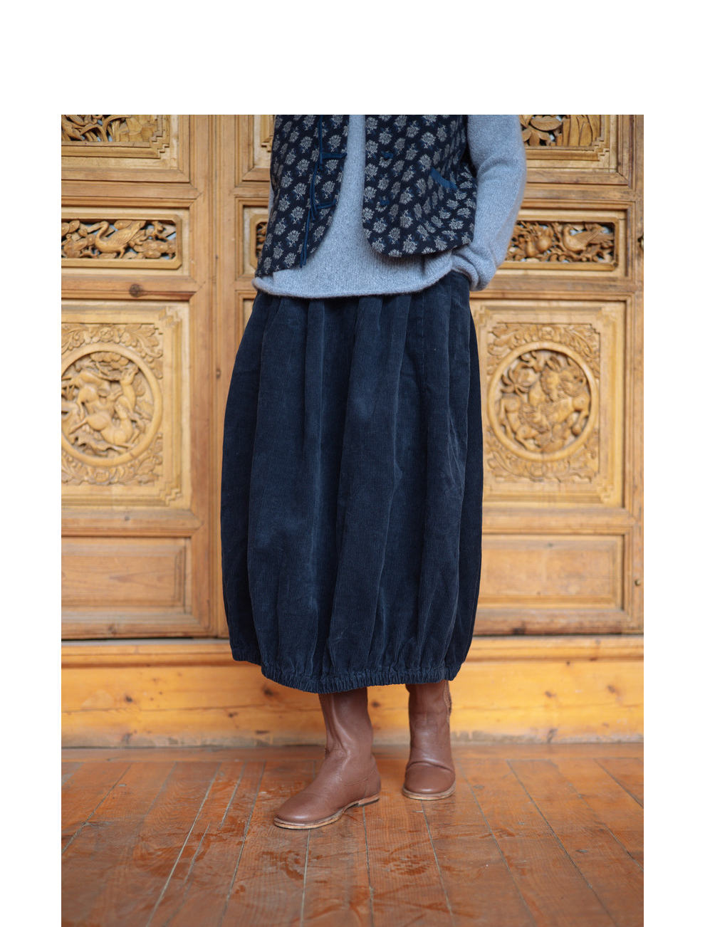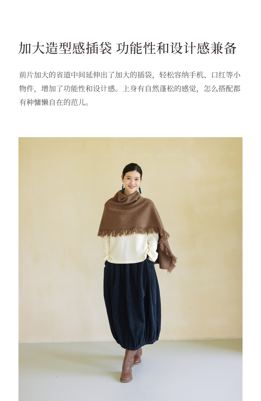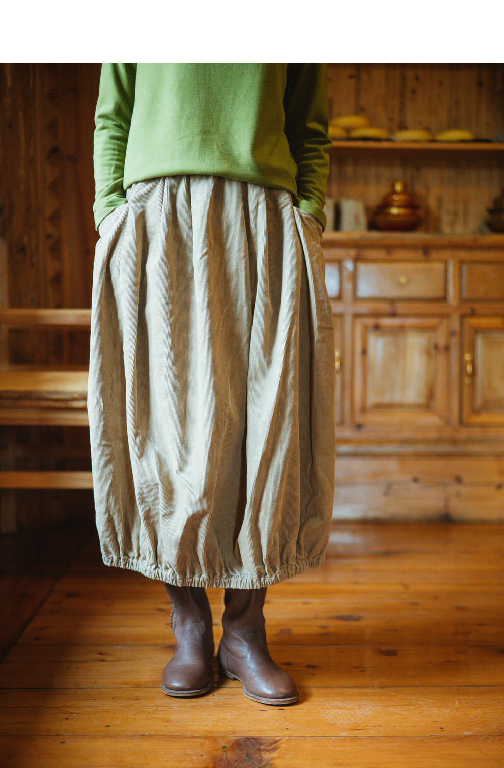 绽放旅行女装352朵/秋冬*加厚灯芯绒花苞中长款灯笼裙半身裙