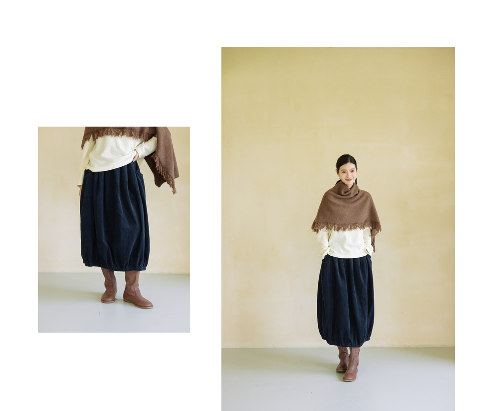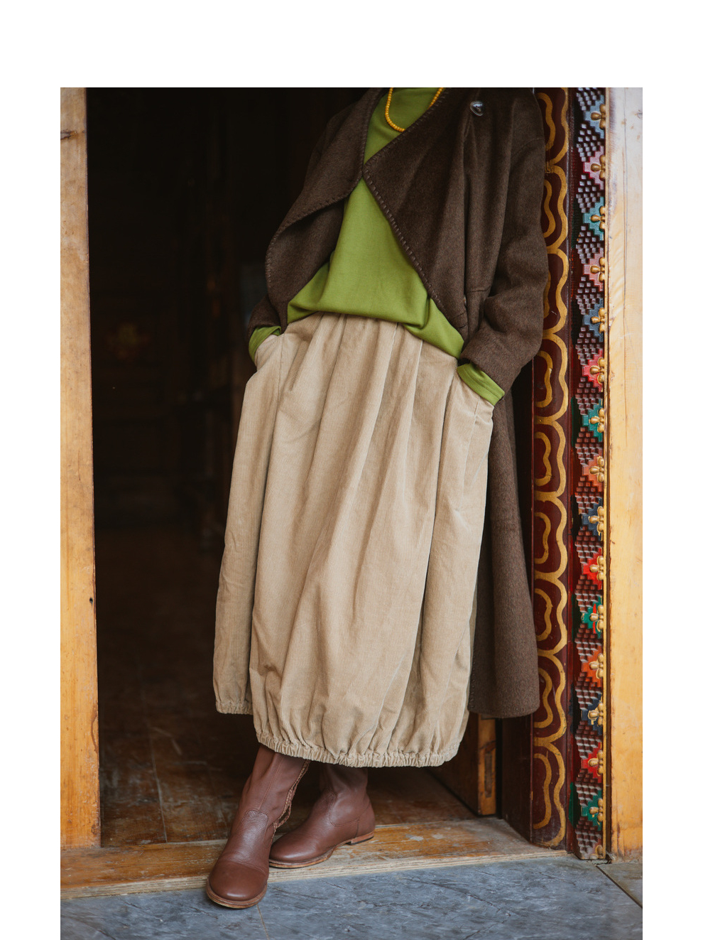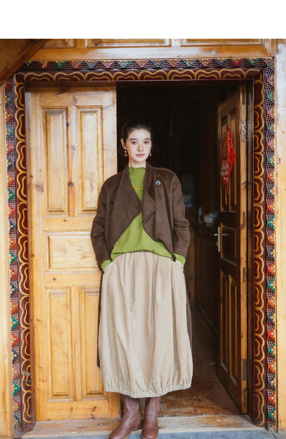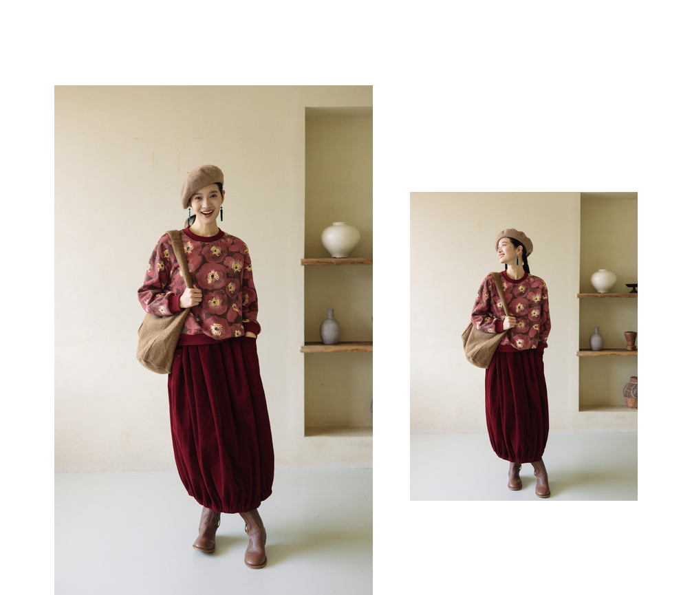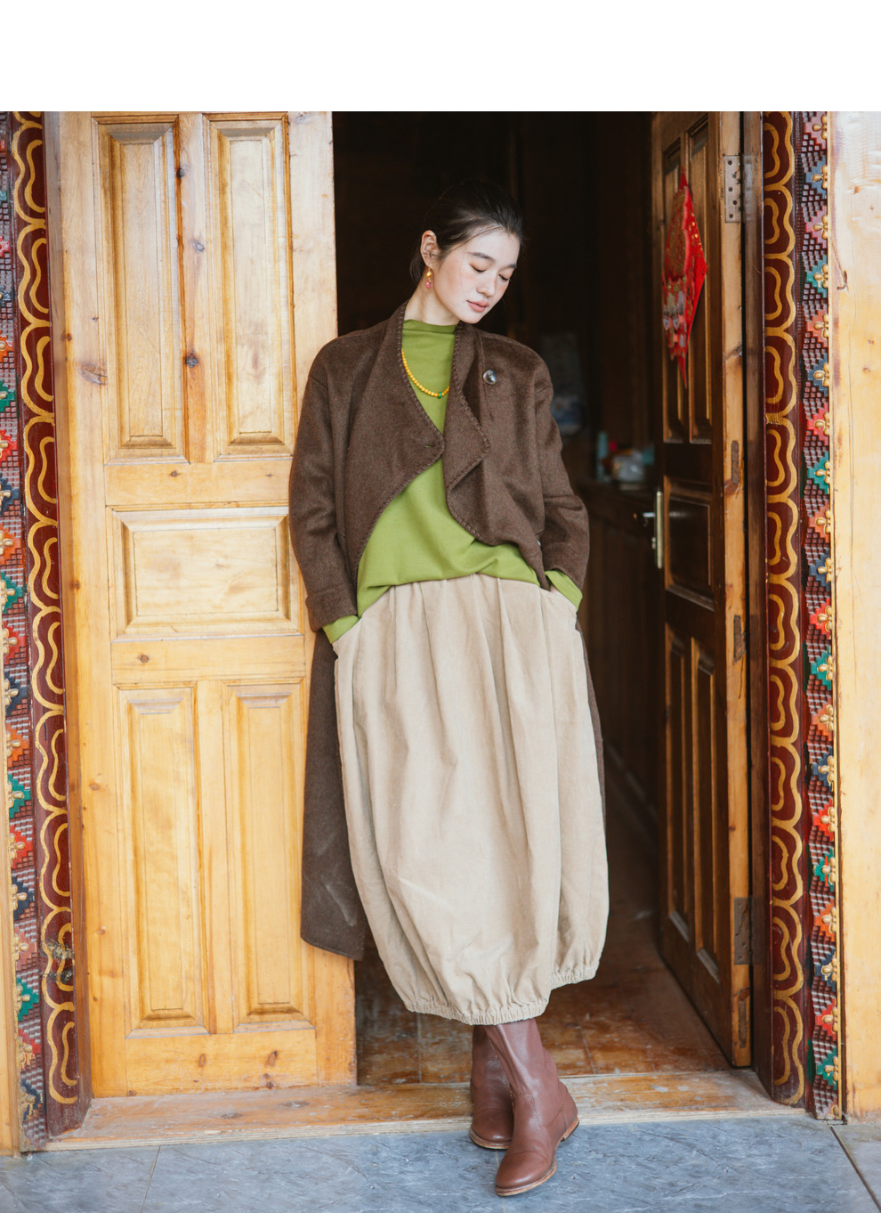 绽放旅行女装352朵/秋冬*加厚灯芯绒花苞中长款灯笼裙半身裙