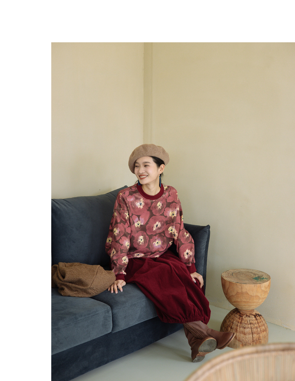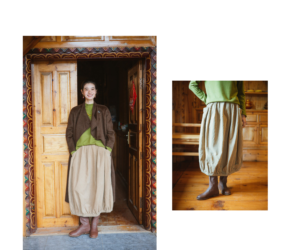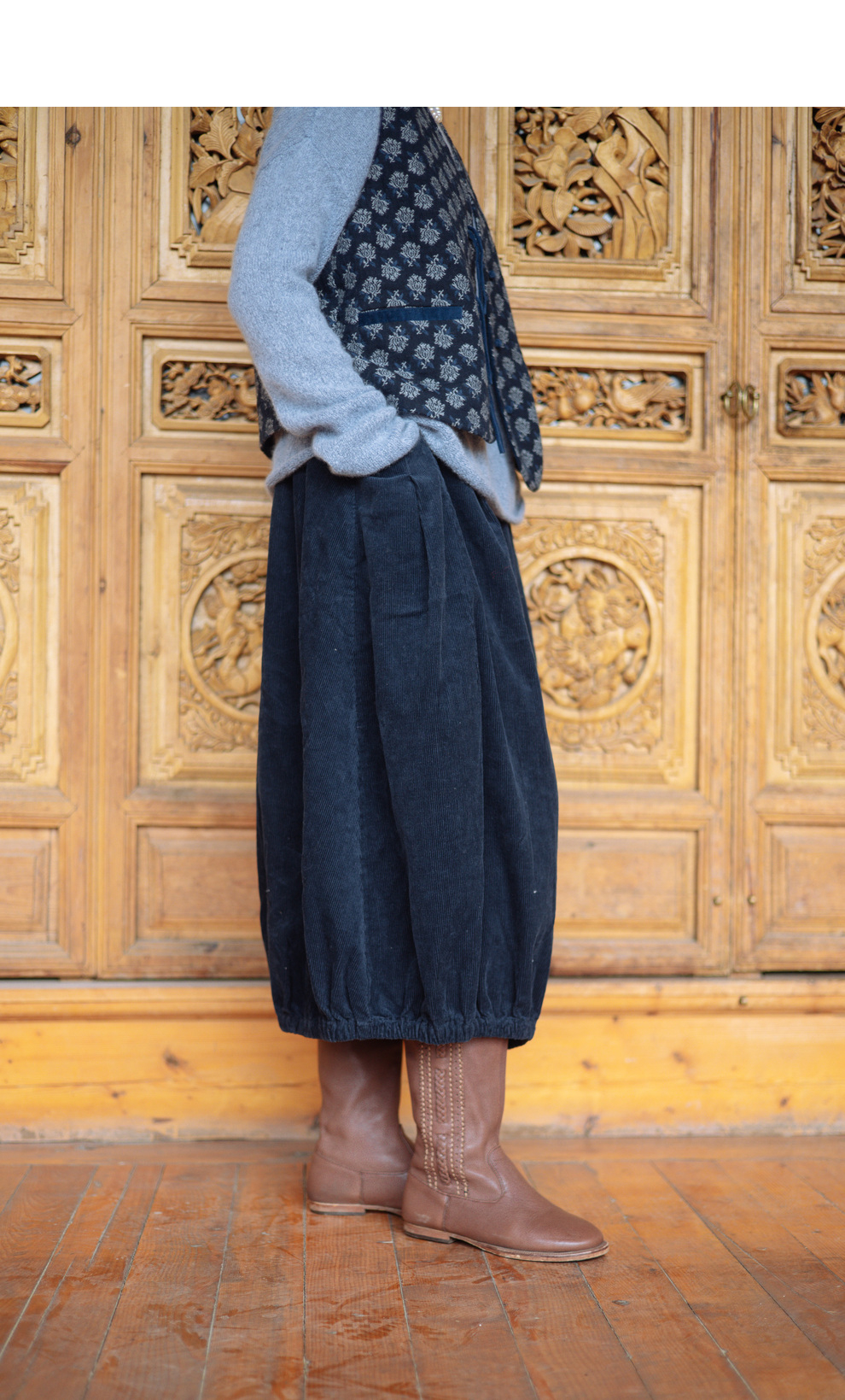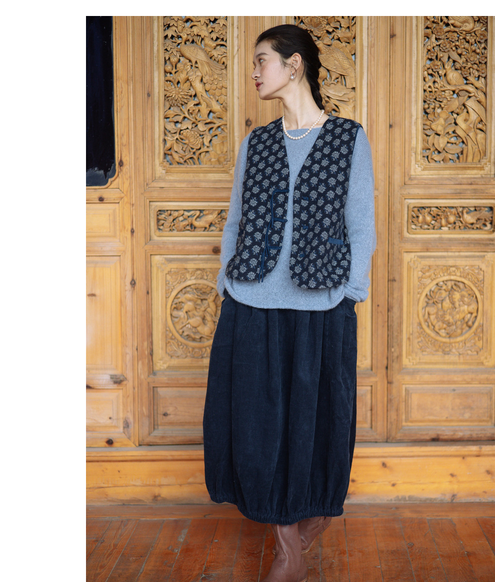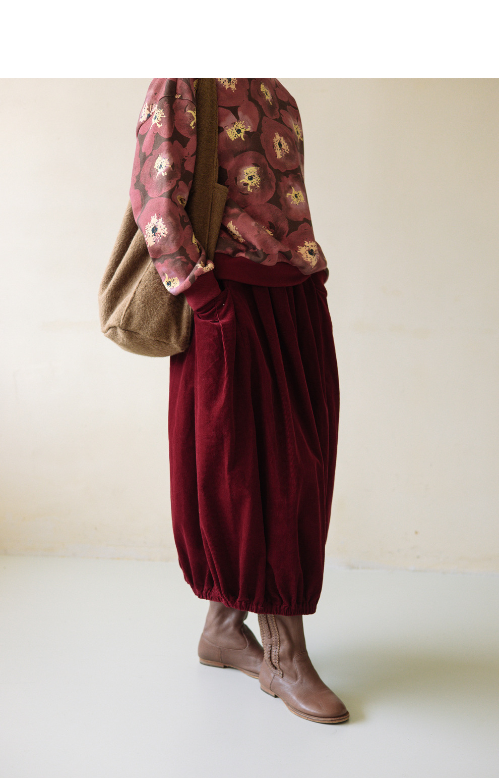 绽放旅行女装352朵/秋冬*加厚灯芯绒花苞中长款灯笼裙半身裙