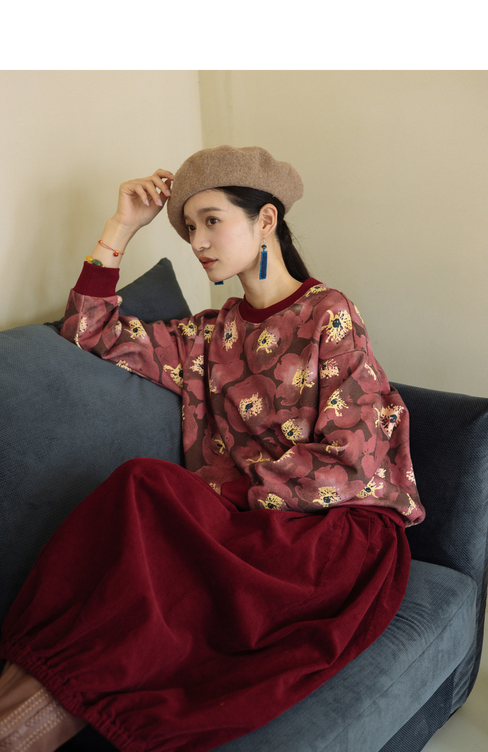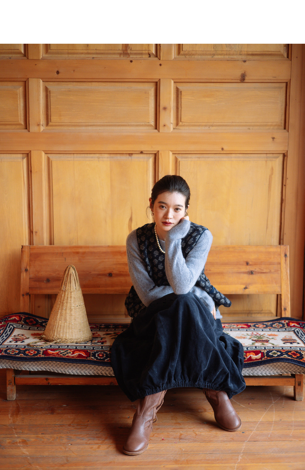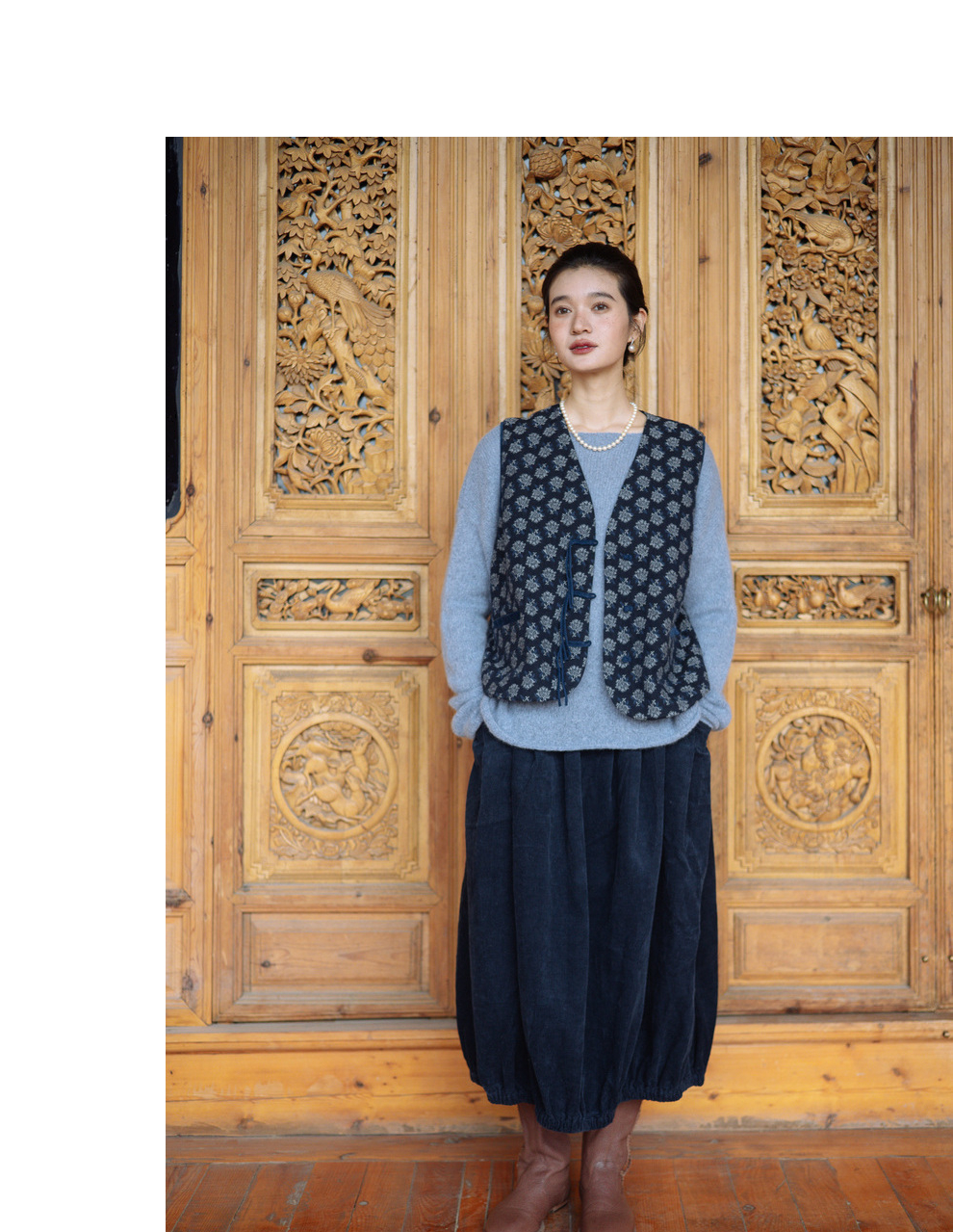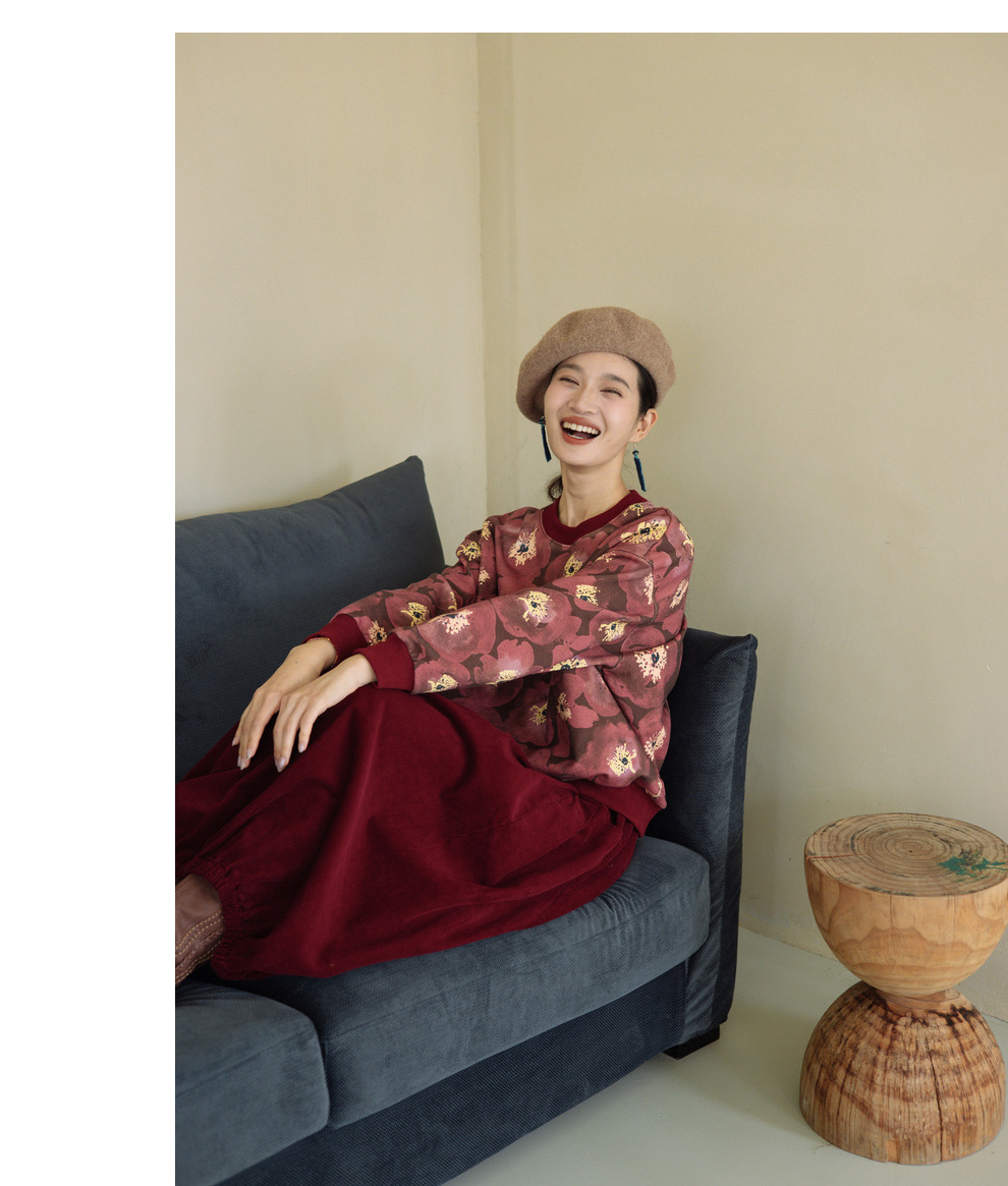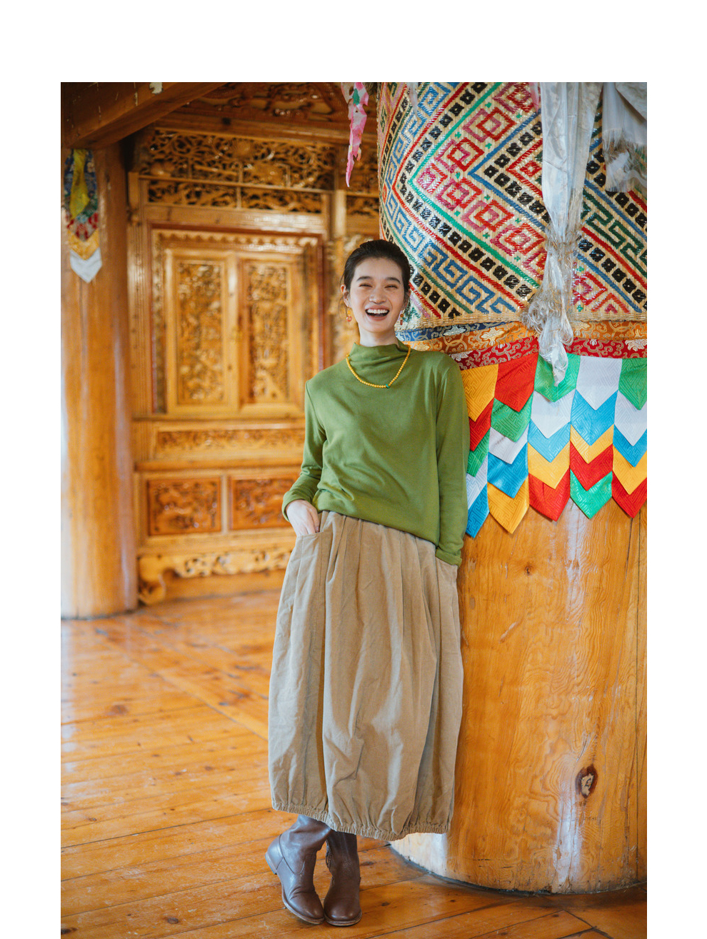 绽放旅行女装352朵/秋冬*加厚灯芯绒花苞中长款灯笼裙半身裙