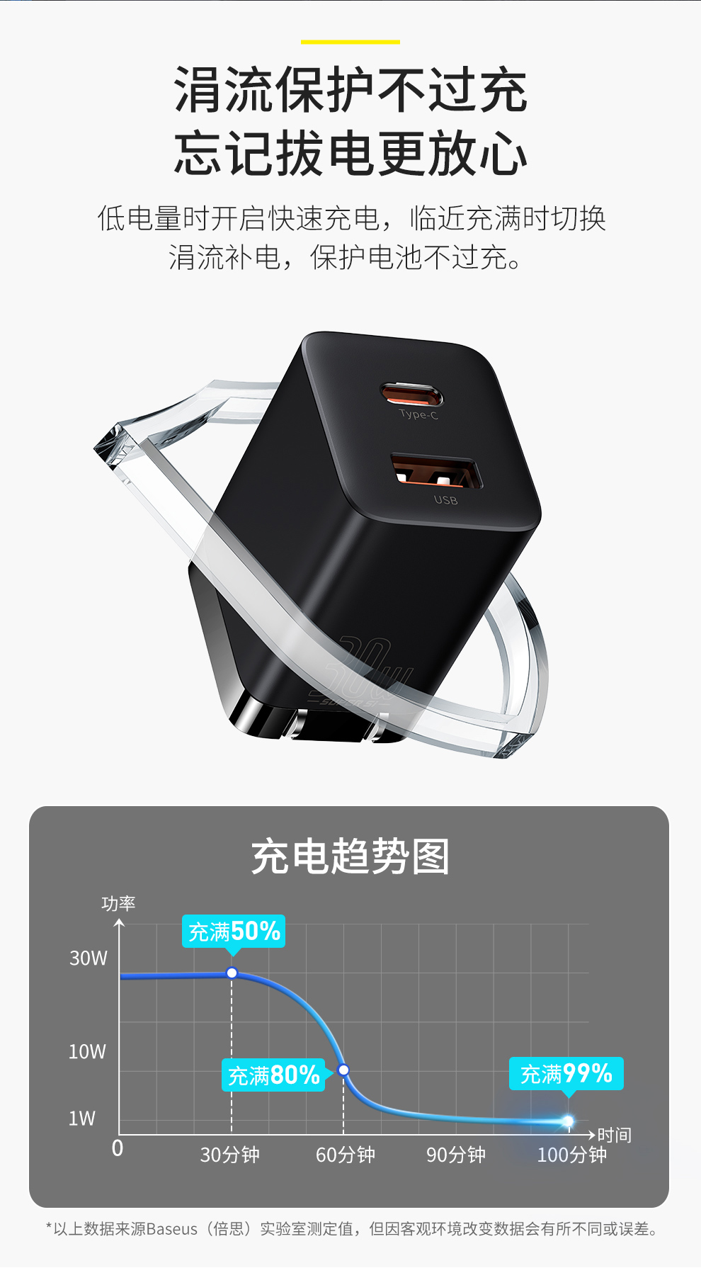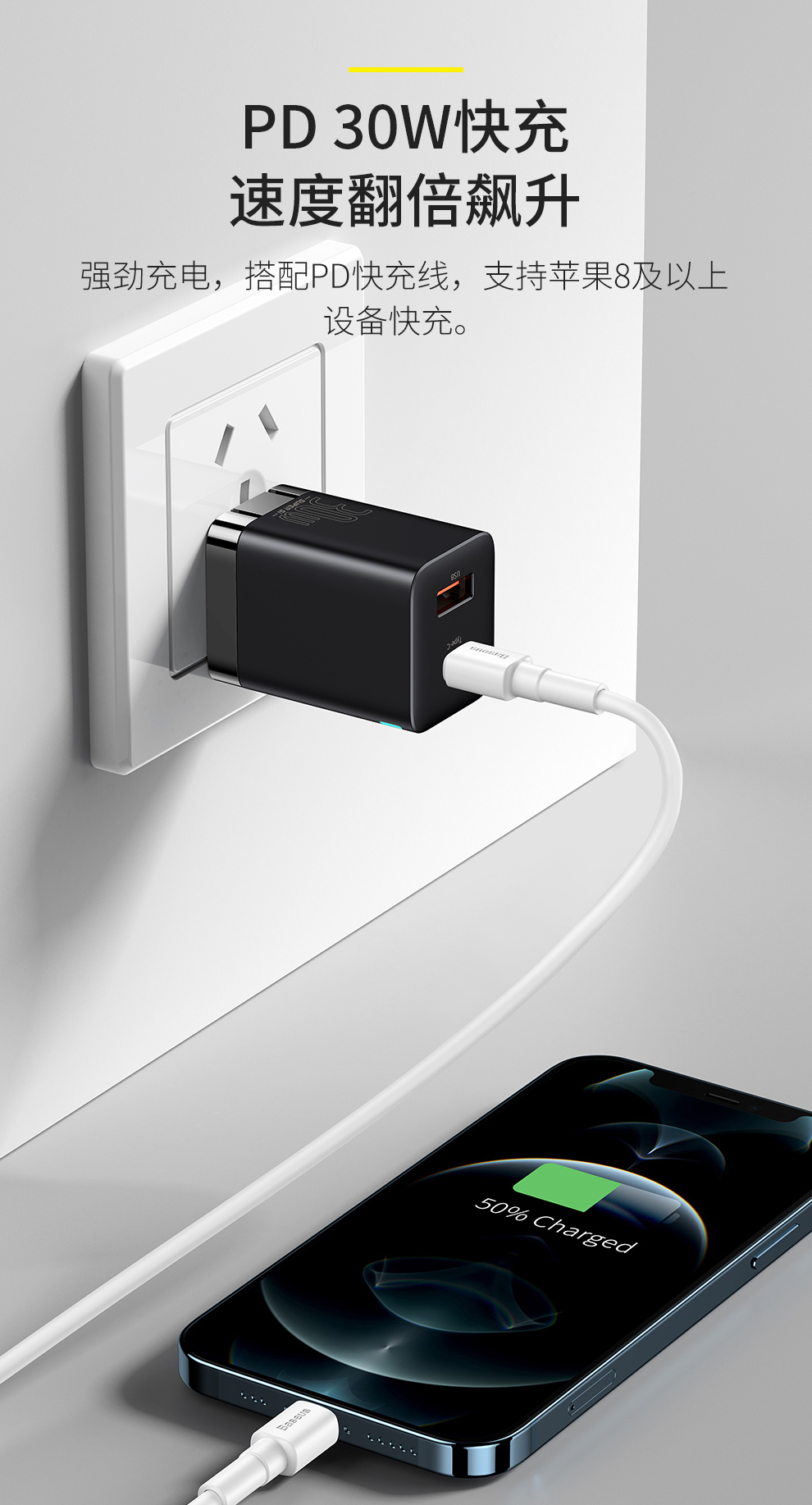 倍思 Super Si Pro超级硅快充充电器C+U 30W