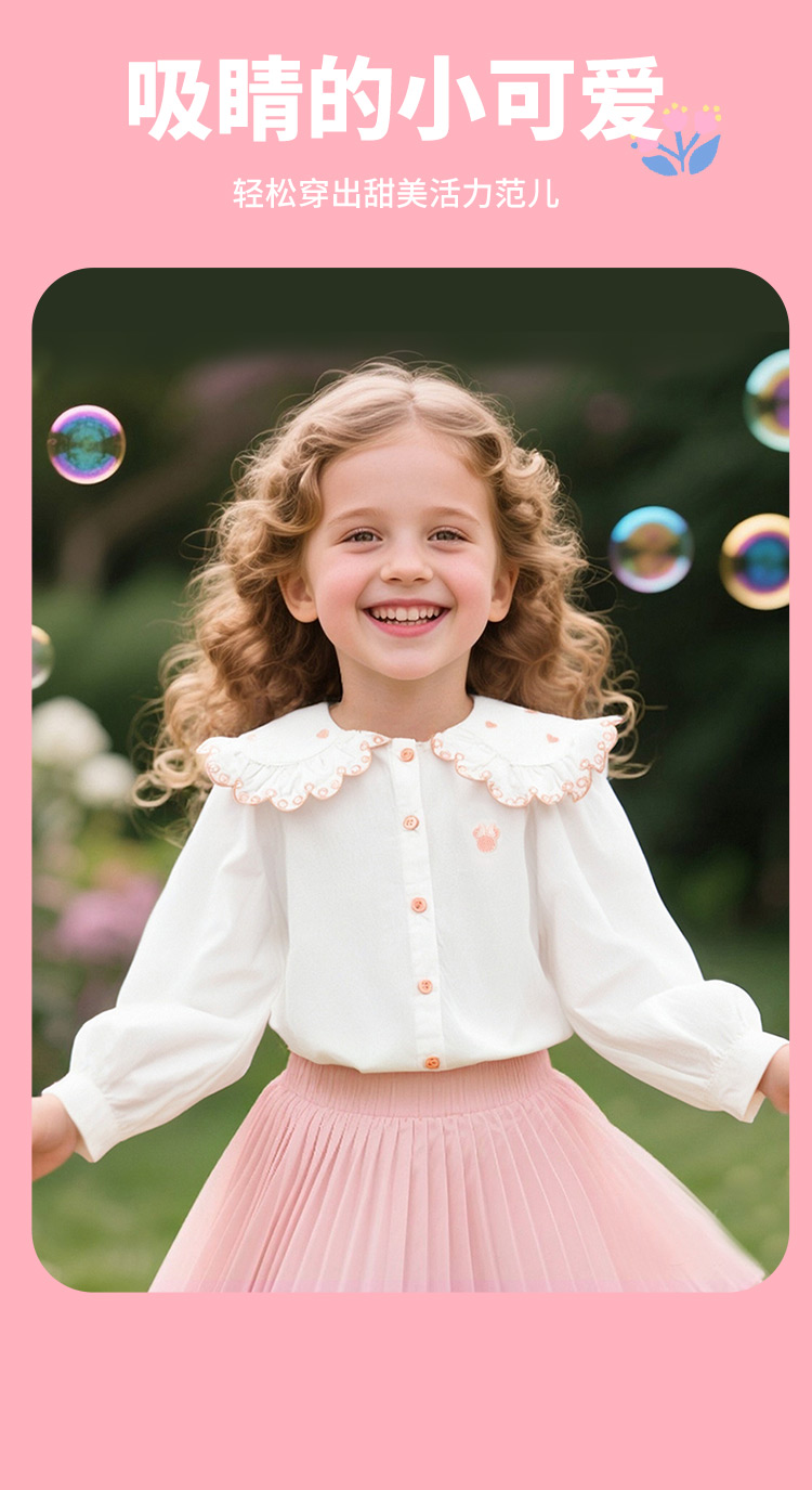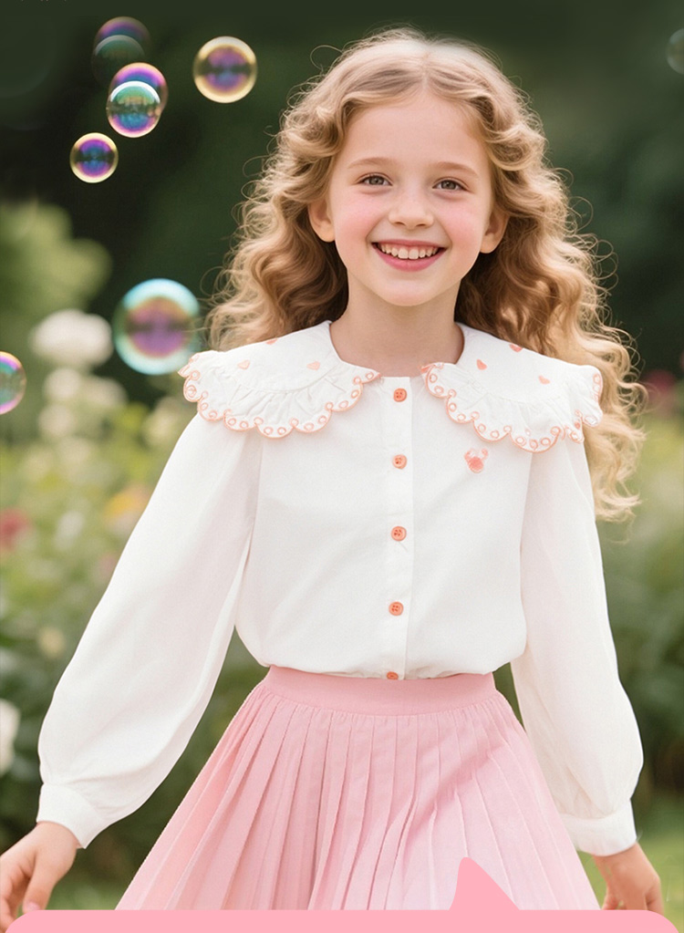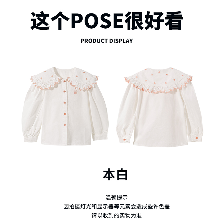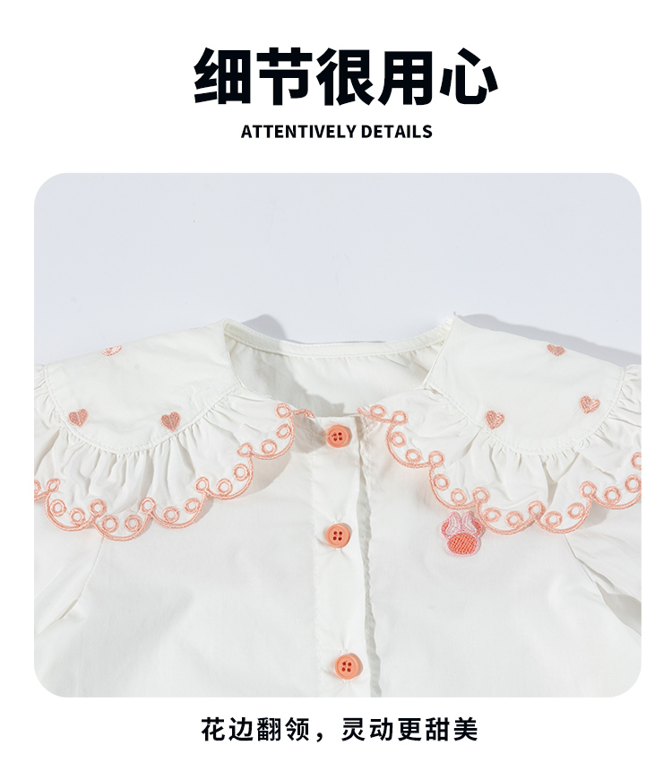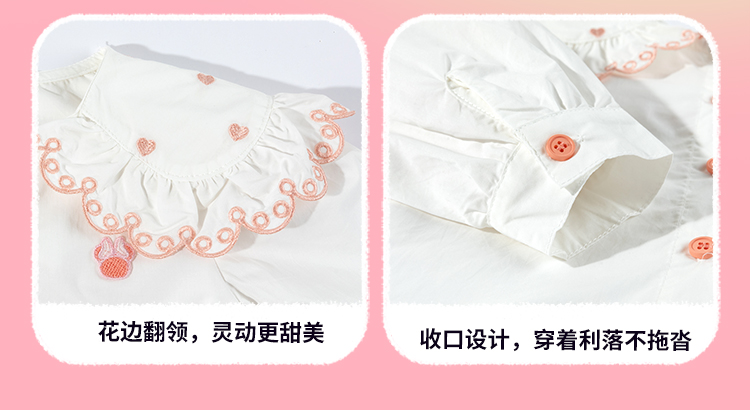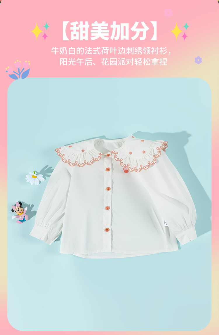 迪士尼25春秋新款女童大翻领衬衫撞色打底上衣百搭女孩衬衫XD3DS093