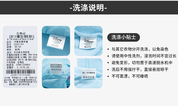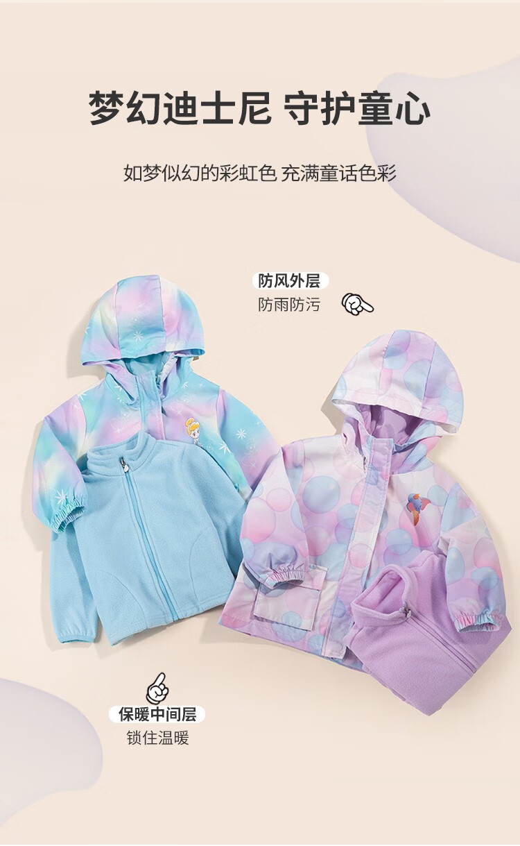 迪士尼童装 秋冬新品儿童防风外套女童冲锋衣保暖上衣