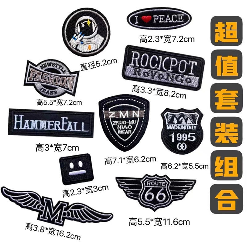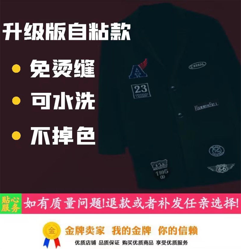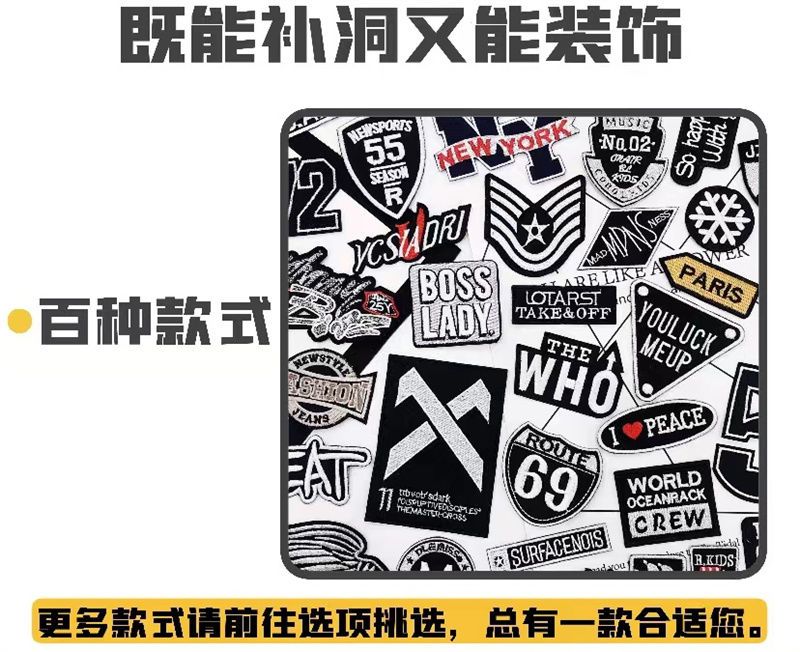 自粘黑色大补贴帽子书包破洞无痕修补装饰补丁贴时尚小号徽章布贴