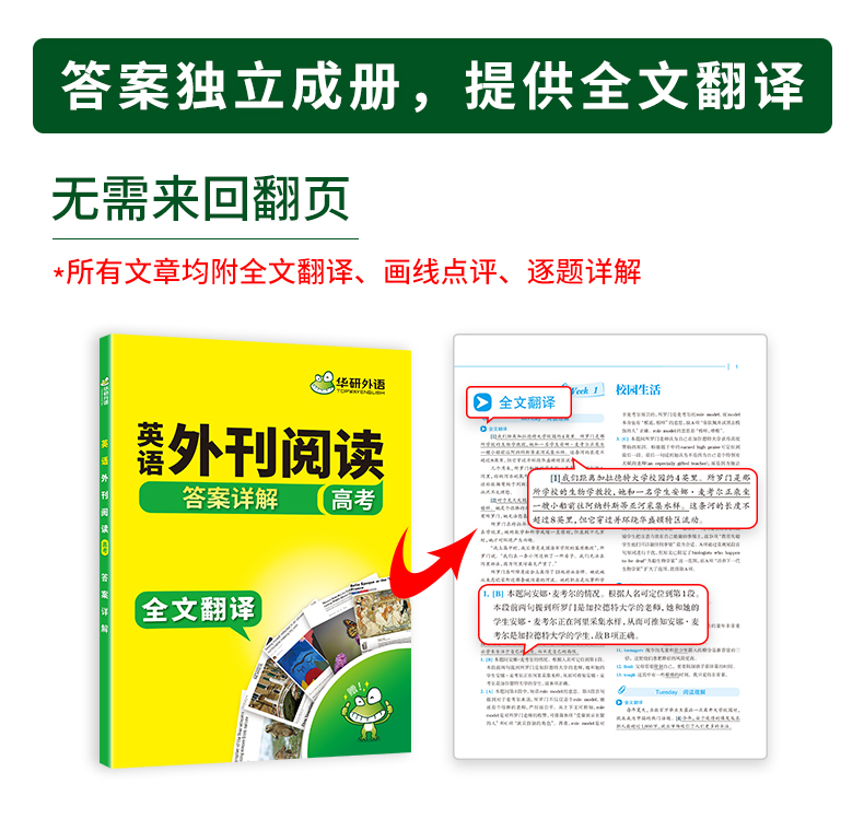4. 所有文章附全文翻译,题目解析详细,解题句画线点评。答案解析分册装订,方便对照研习