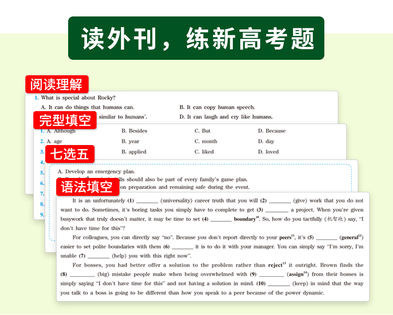2. 原创命题:题型与新高考真题一致,包括阅读理解、完形填空、七选五和语法填空,题目设置符合新高考趋势