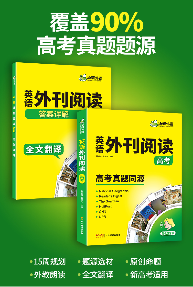 1. 高考真题同源选材:文章选自近年高考真题同源的外刊及网站,如《读者文摘》(Reader’s Digest)、《卫报》(The Guardian)、《国家地理杂志》(National Geographic)、《中国日报》(China Daily)等,语言地道,文章话题、长度、难度与新高考真题一致,适合课外培优强化