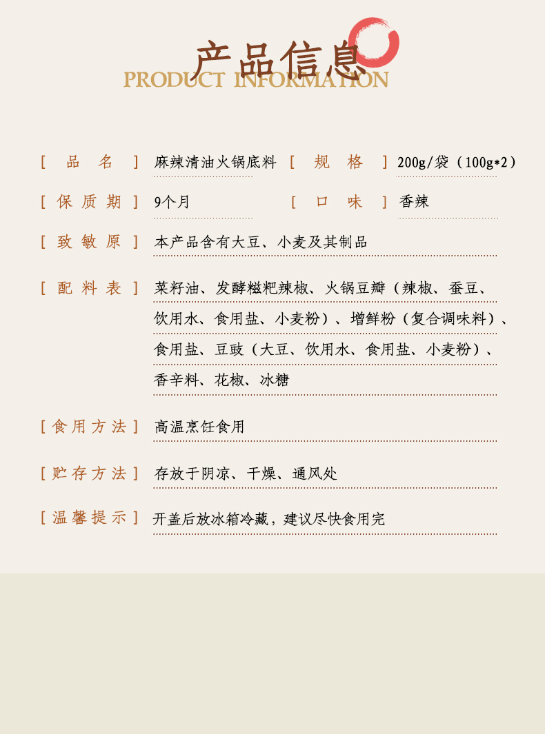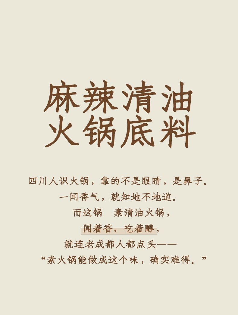 麻辣清油火锅底料 净素配料 地道四川味 鲜香微辣