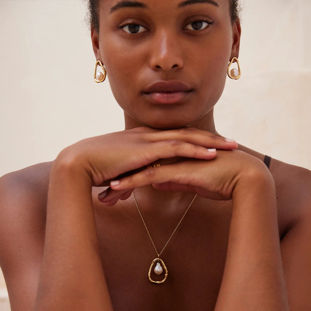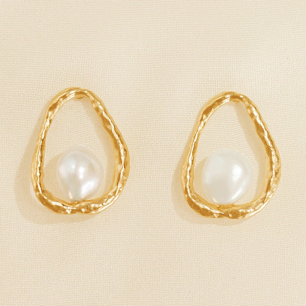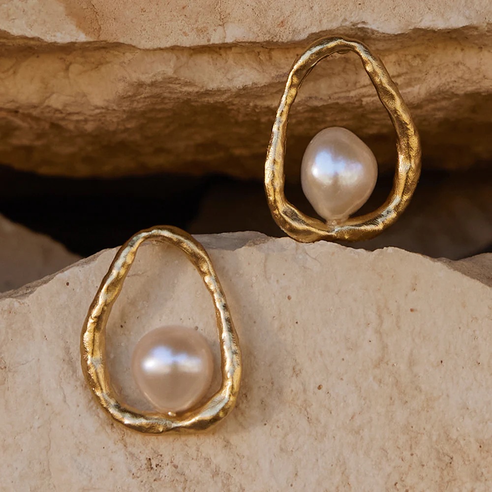 在途4周到|Agapee-OSTUNI-珍珠 24k镀金 耳环[法国设计师]